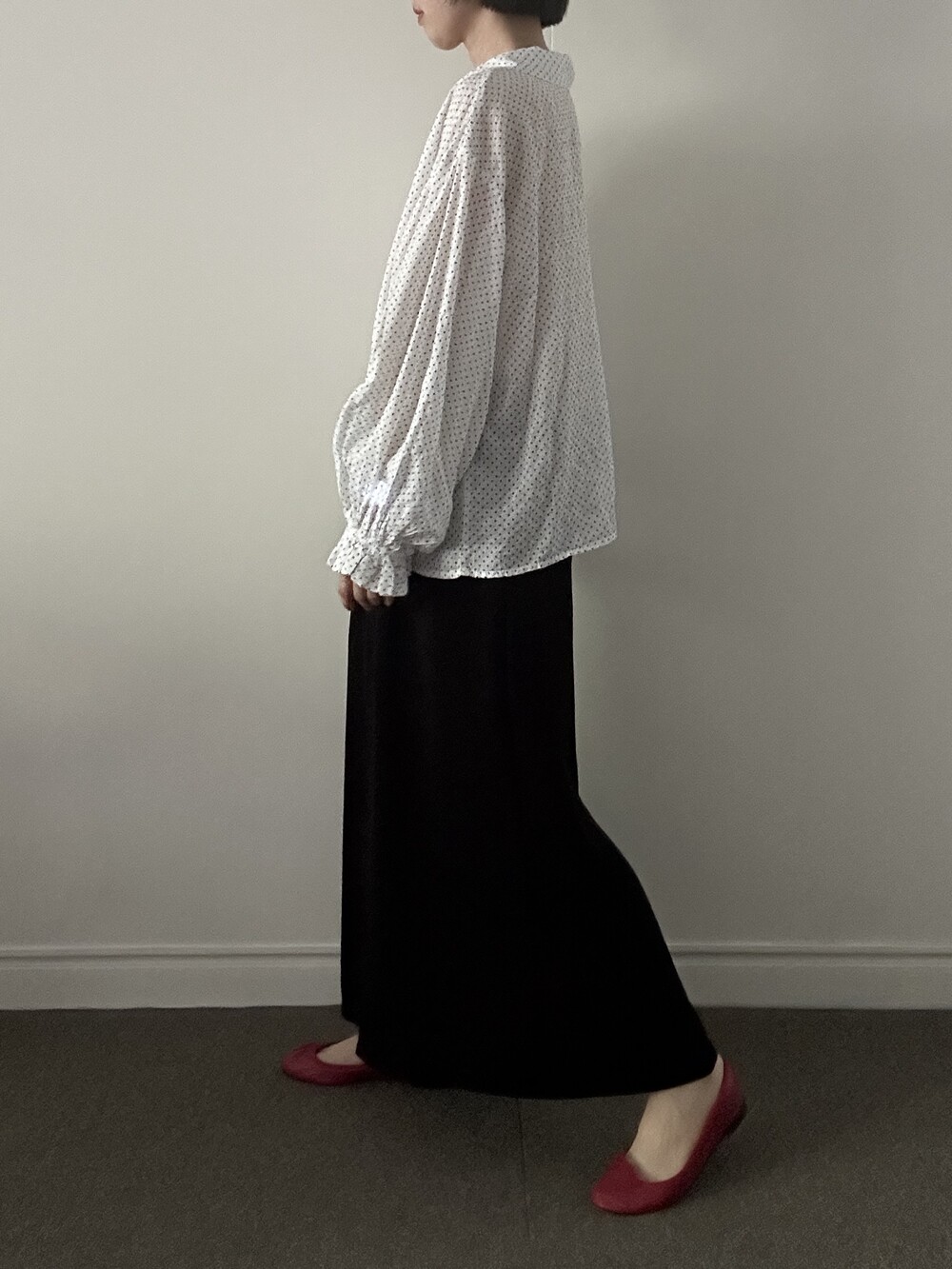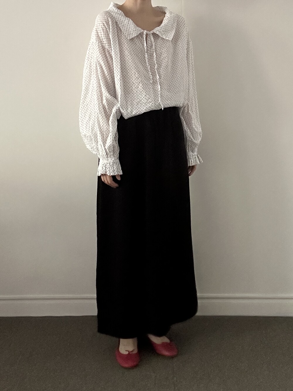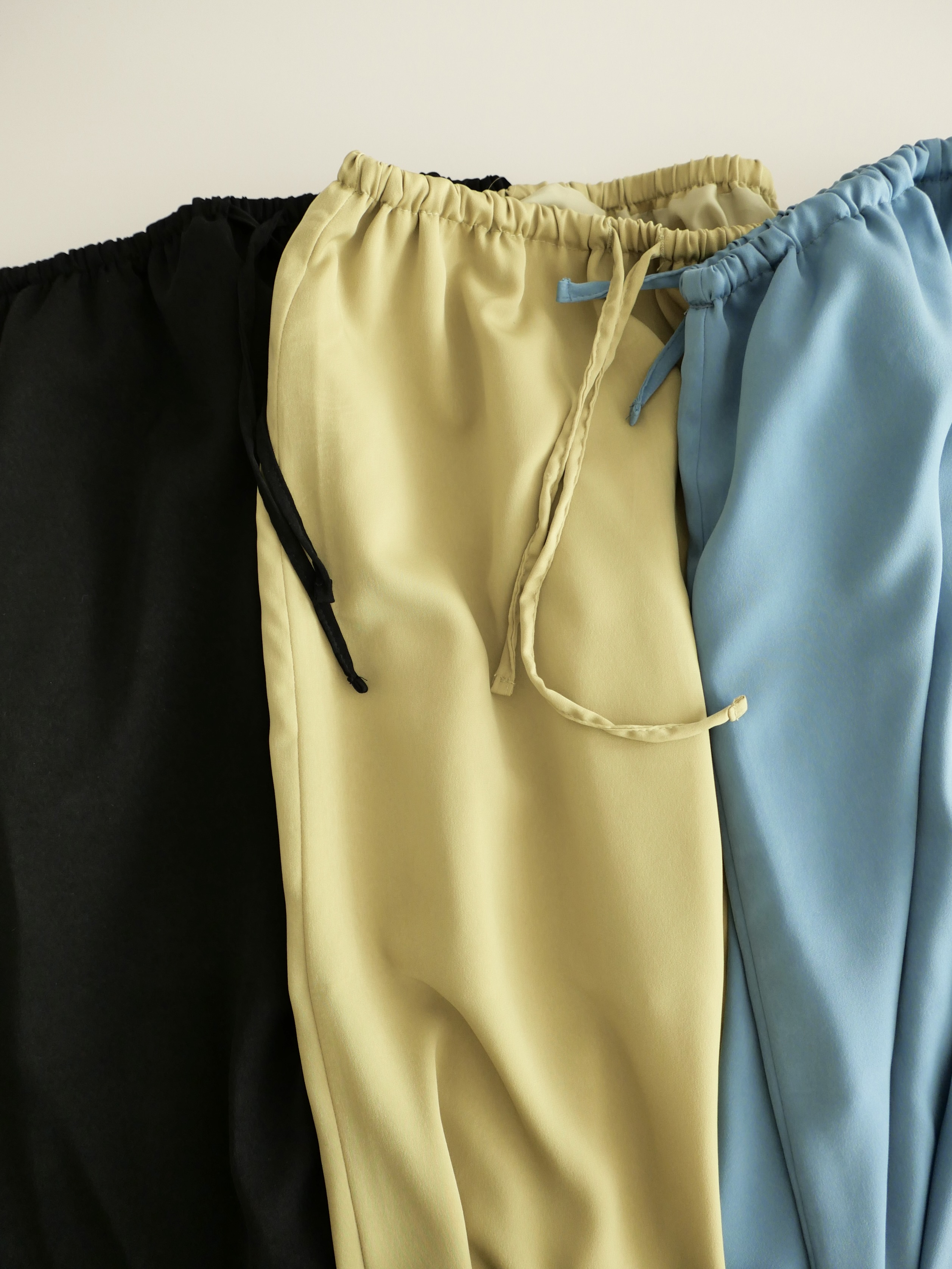 발목 위로 우아하게 떨어지는 롱한 기장감이 다리 라인을 길고 슬림하게 커버해 줍니다. 폴리 소재 특유의 복원력으로 구김 걱정 또한 덜어냈습니다.
