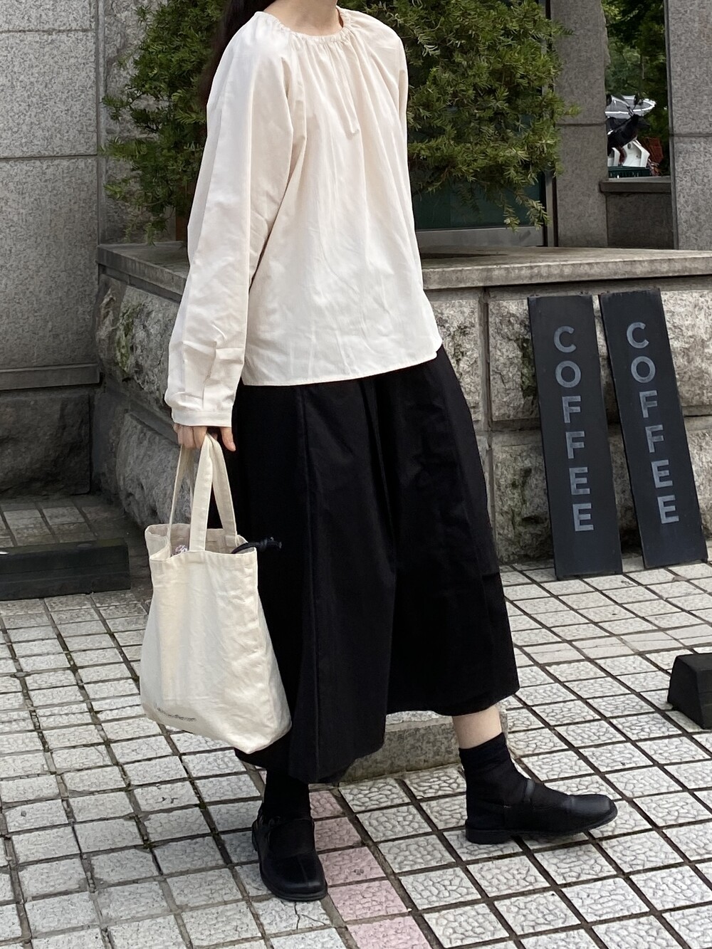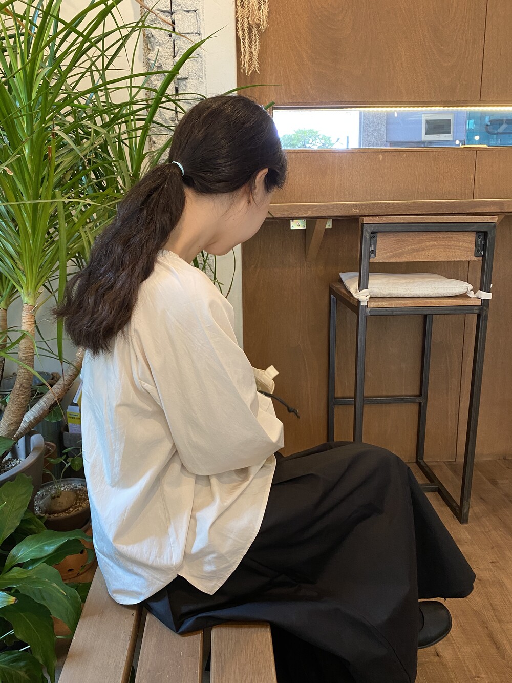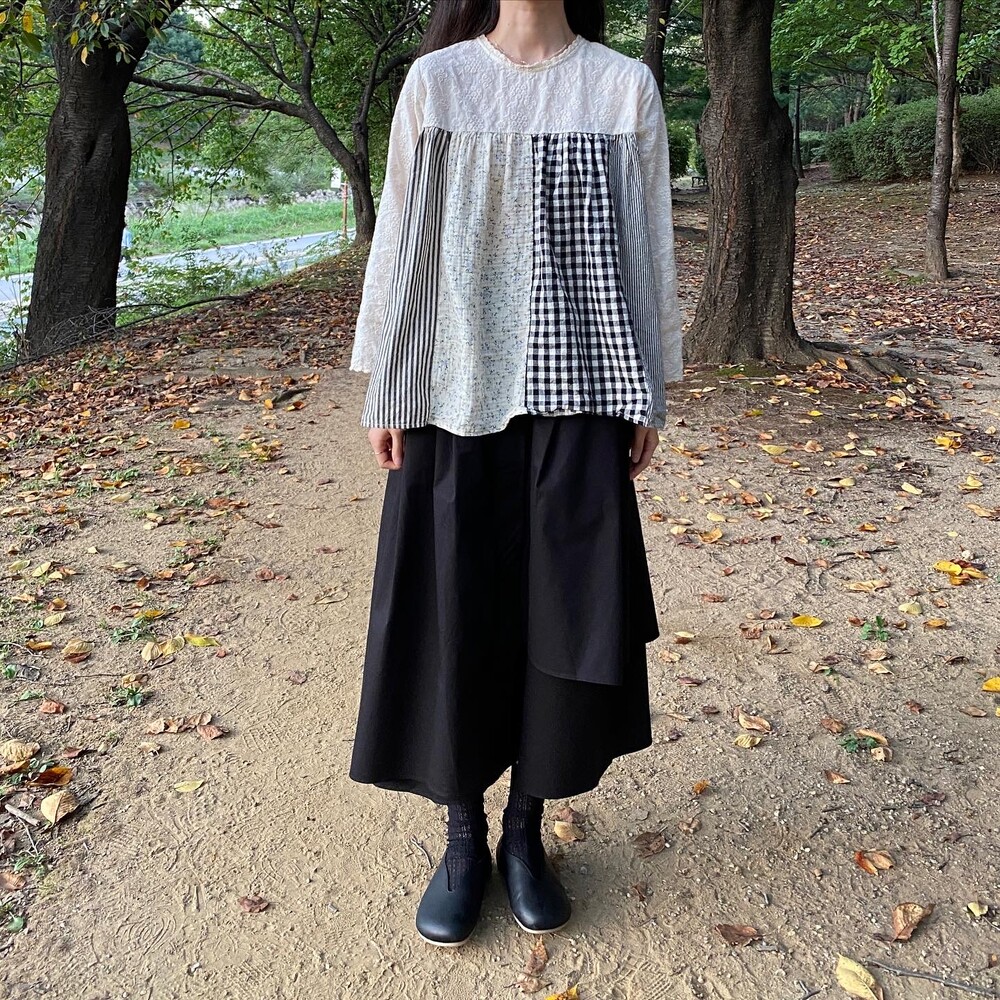 바텀인을 하기 보단 크롭 기장의 상의나 길이감이 있는 블라우스와 매치하기 좋습니다.