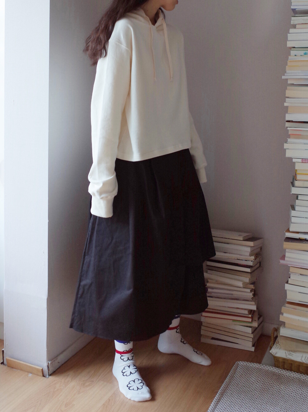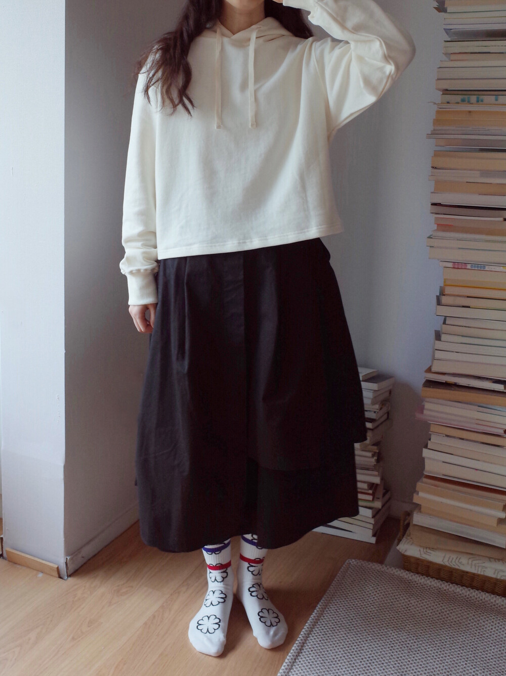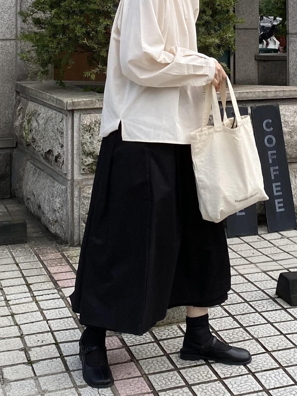 바텀인을 하기 보단 크롭 기장의 상의나 길이감이 있는 블라우스와 매치하기 좋습니다.