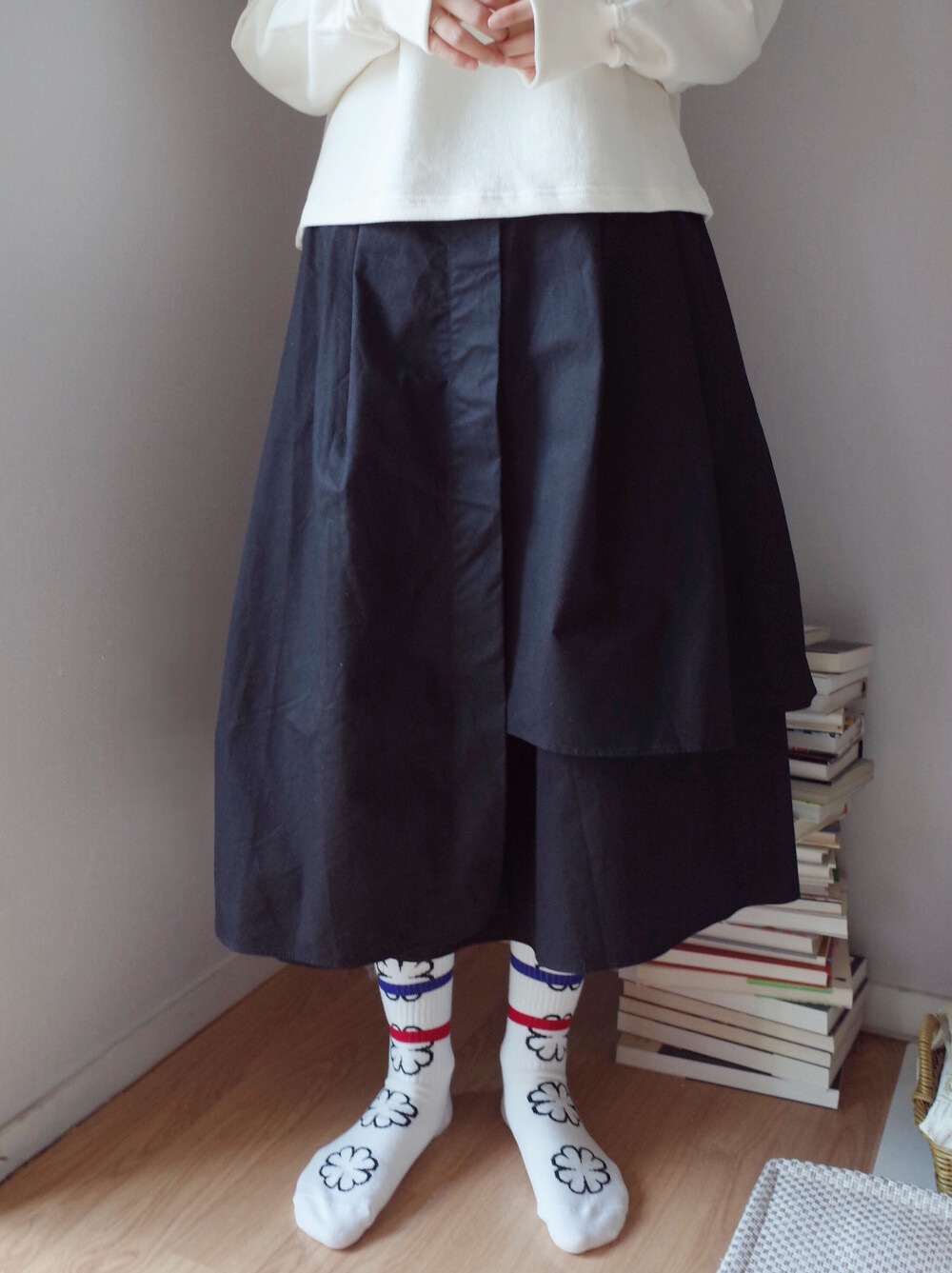 톡톡한 코튼 소재로 제작된 유니크한 스커트입니다. 밀도 높은 코튼 소재에 바이오 워싱 가공 처리로 더욱 내추럴하고 세탁이 편안합니다.