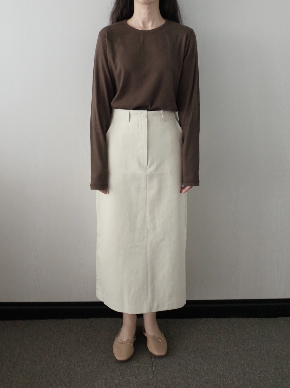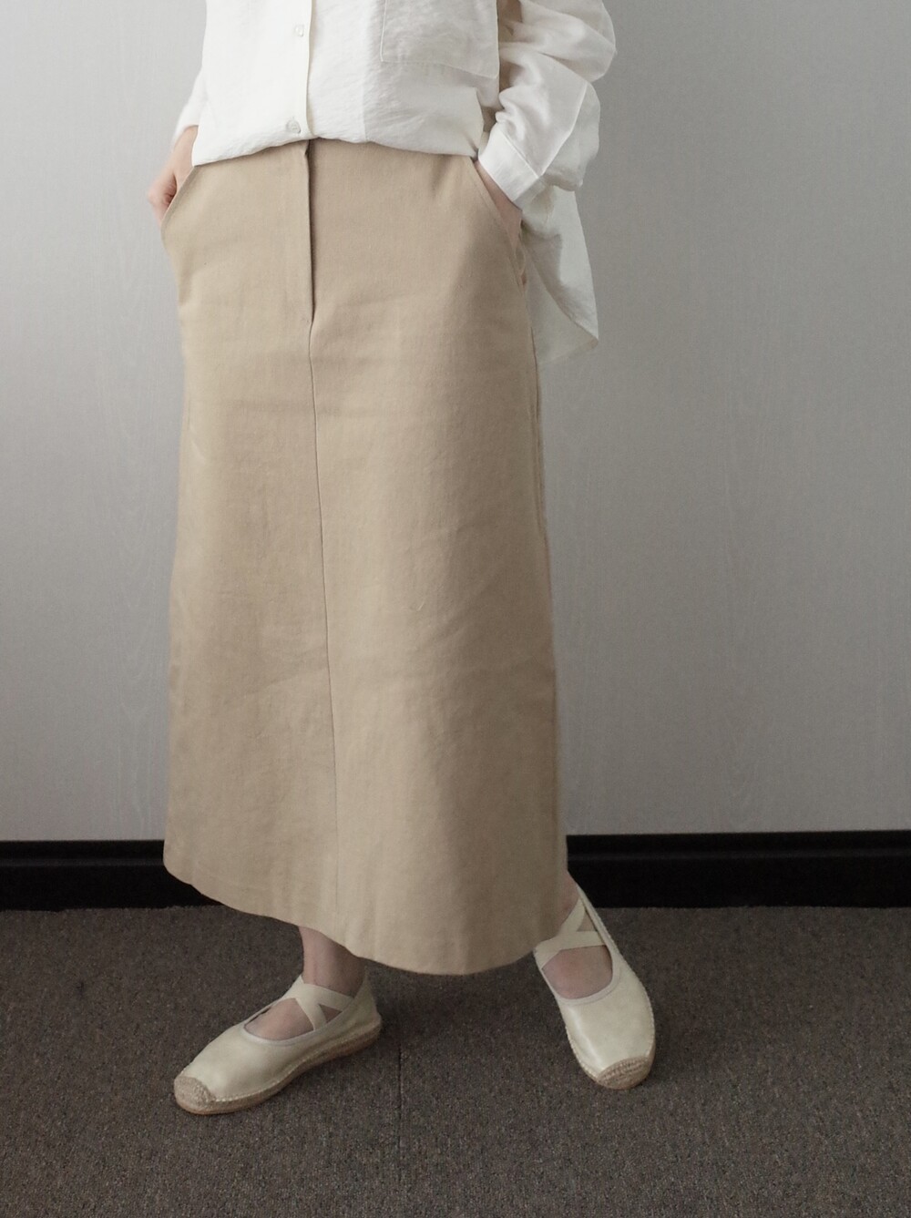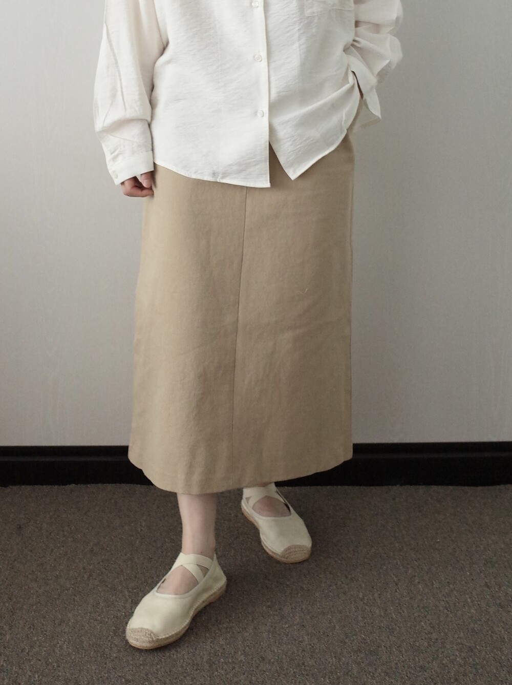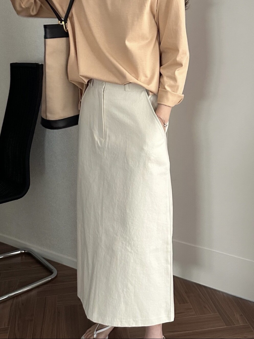 심플하고 베이직한 에이치라인 코튼 스커트입니다.