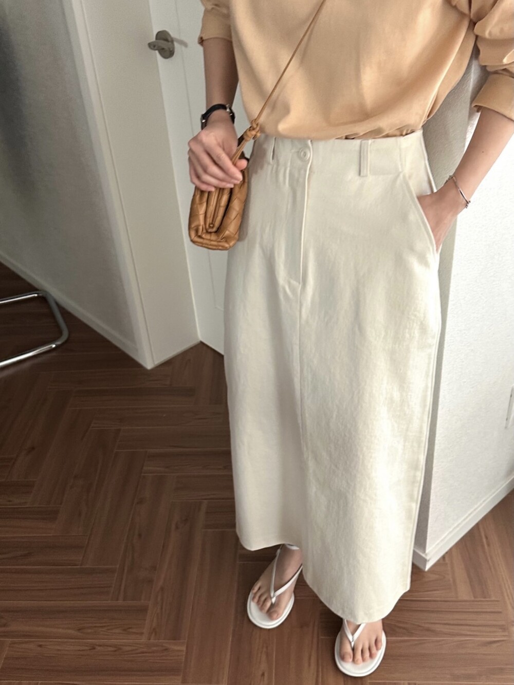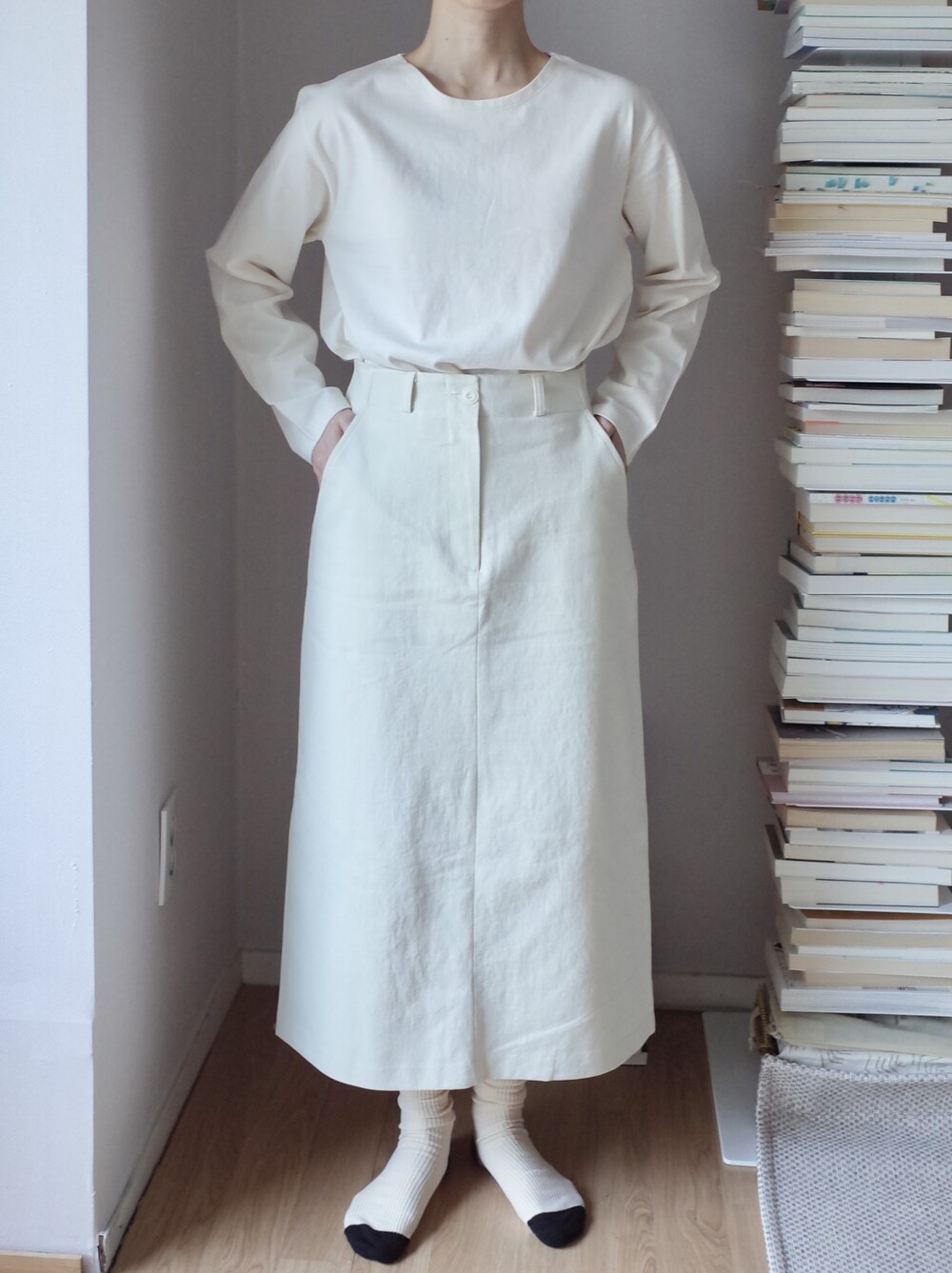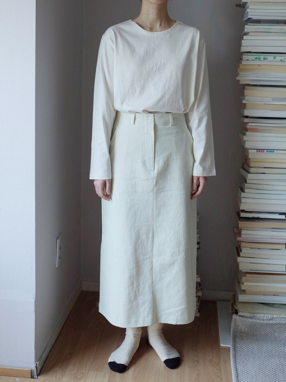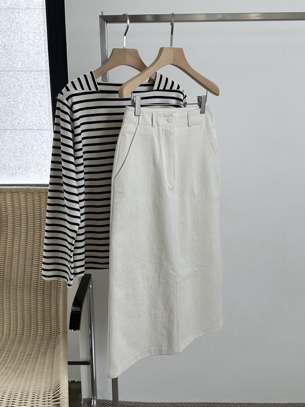 심플하고 베이직한 에이치라인 코튼 스커트입니다.