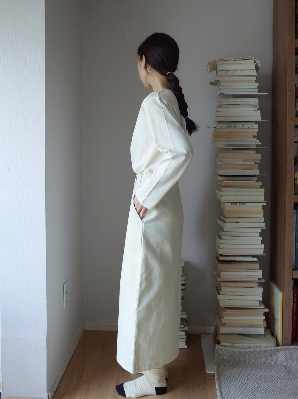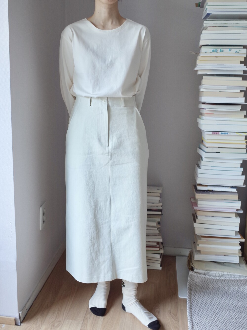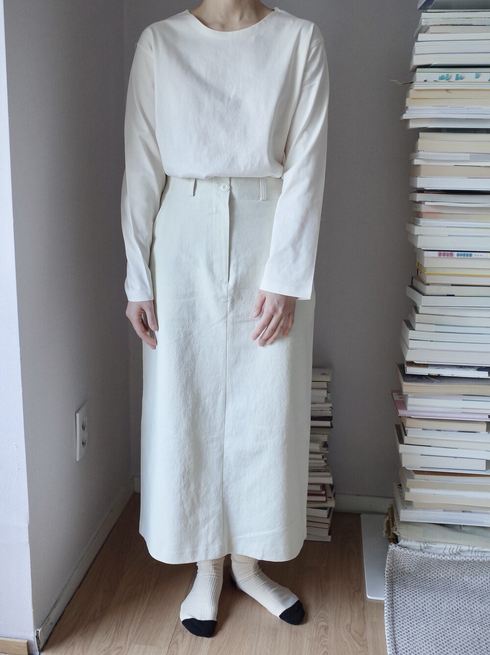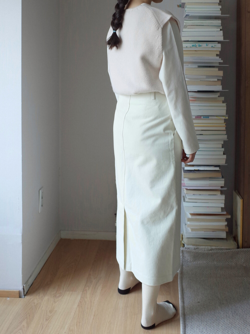 심플하고 베이직한 에이치라인 코튼 스커트입니다.