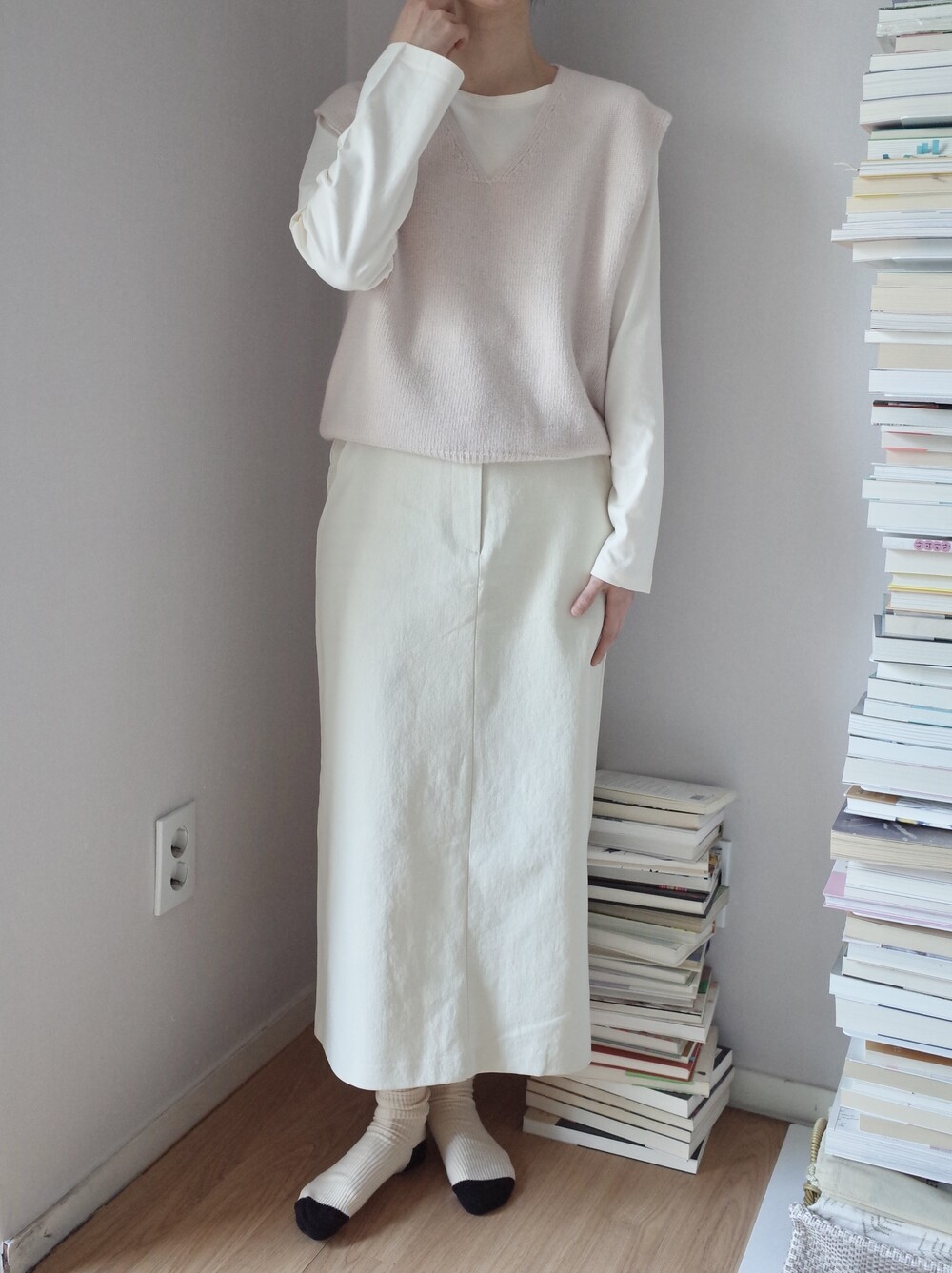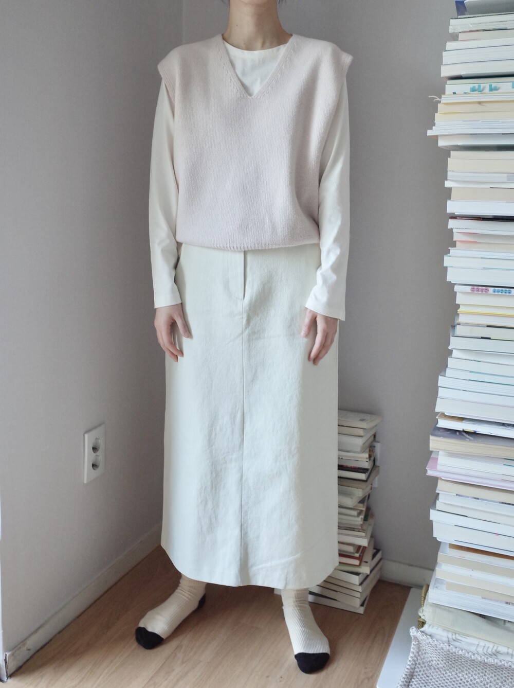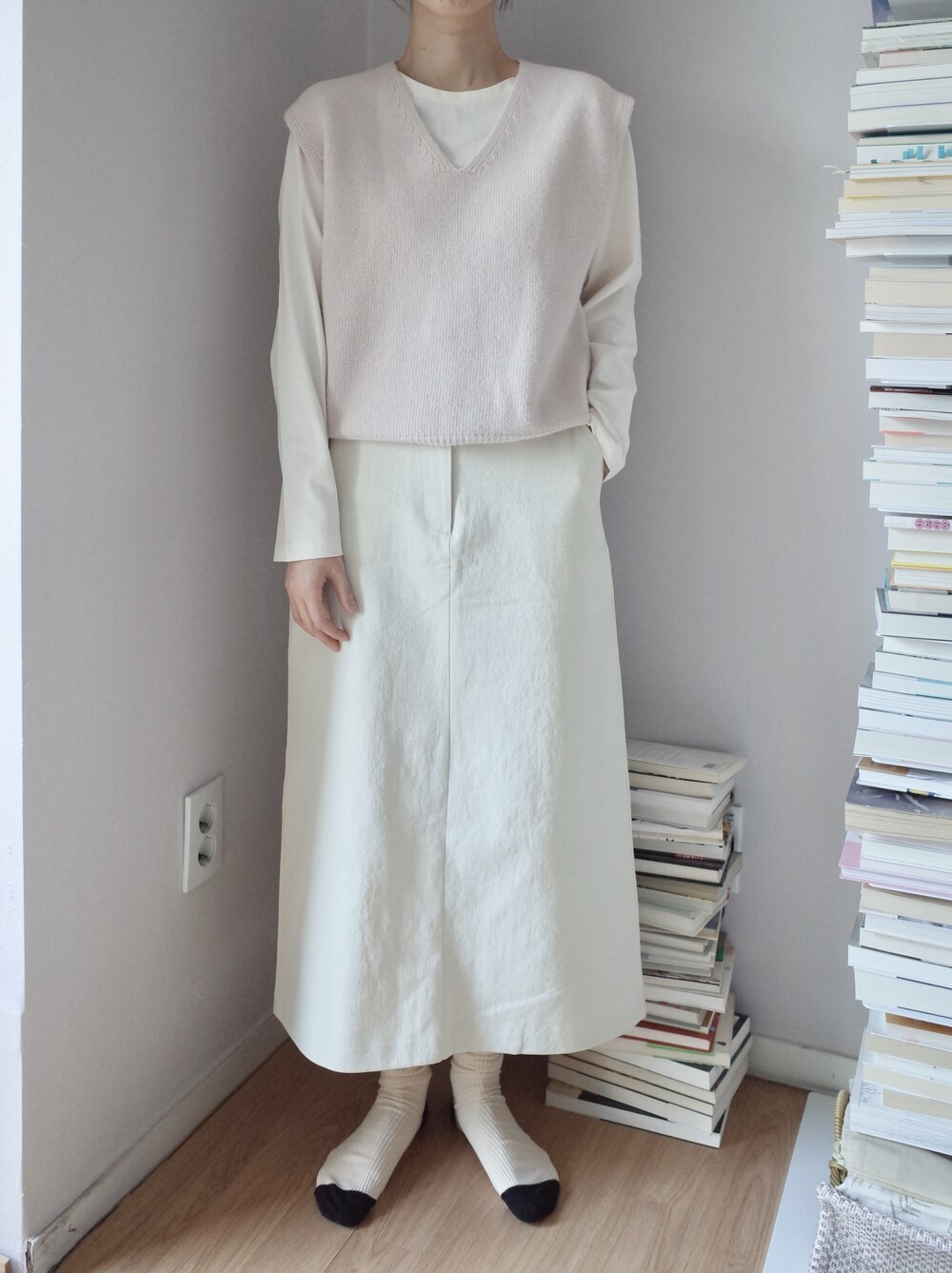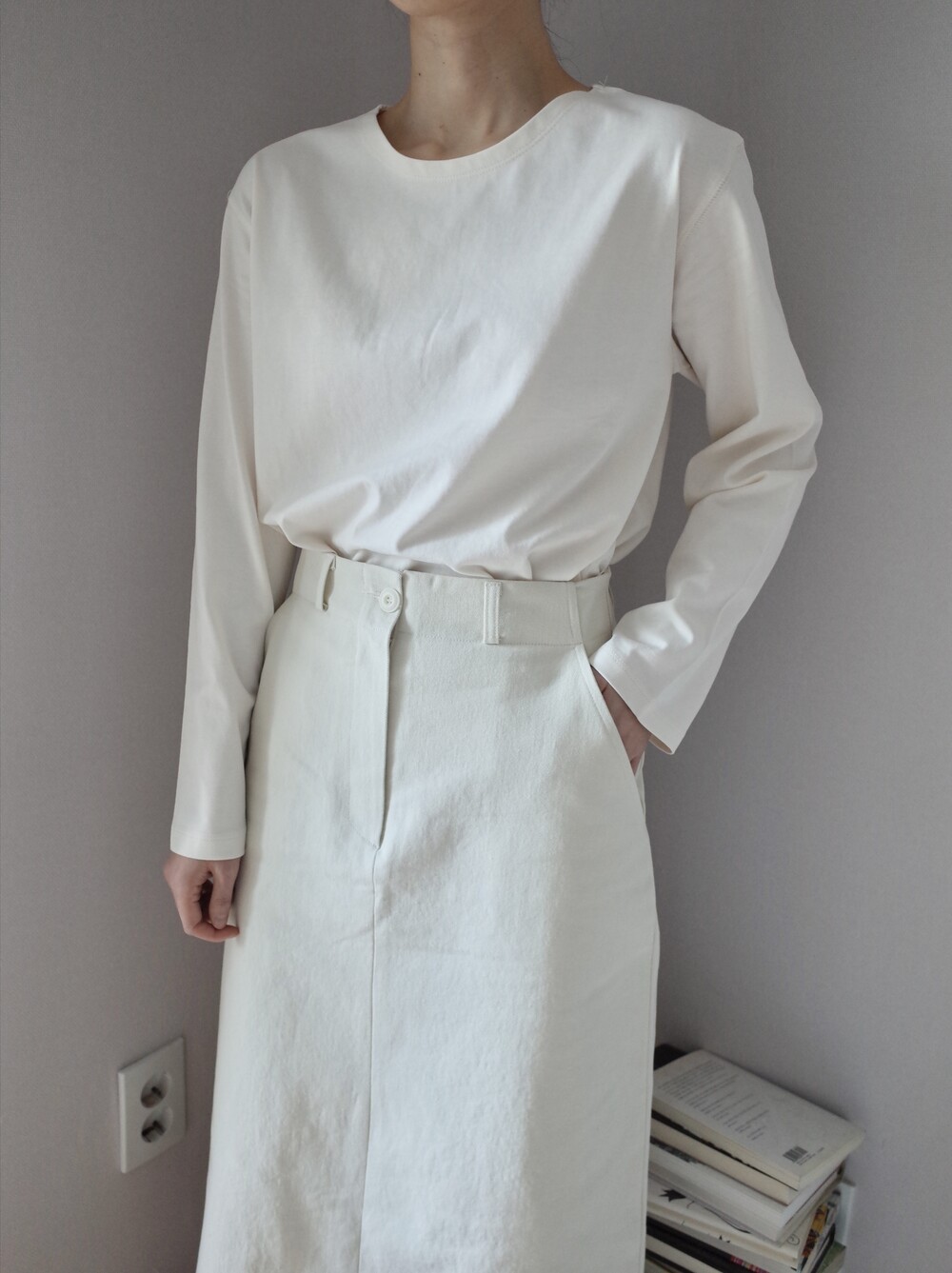 심플하고 베이직한 에이치라인 코튼 스커트입니다.