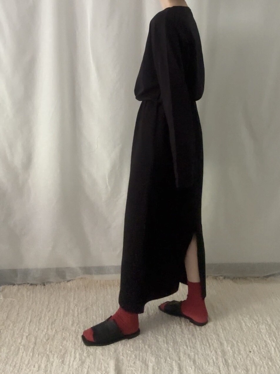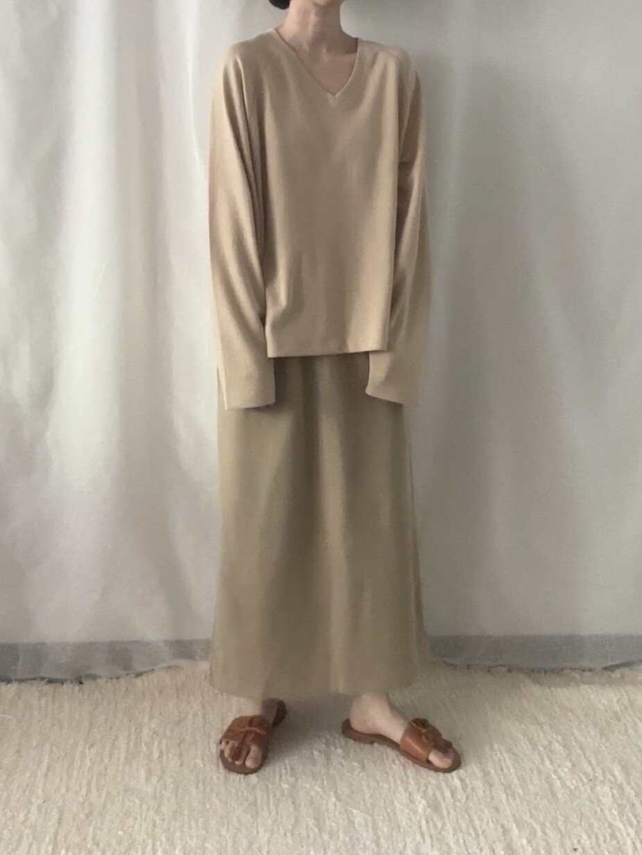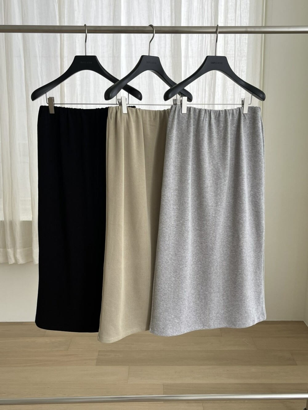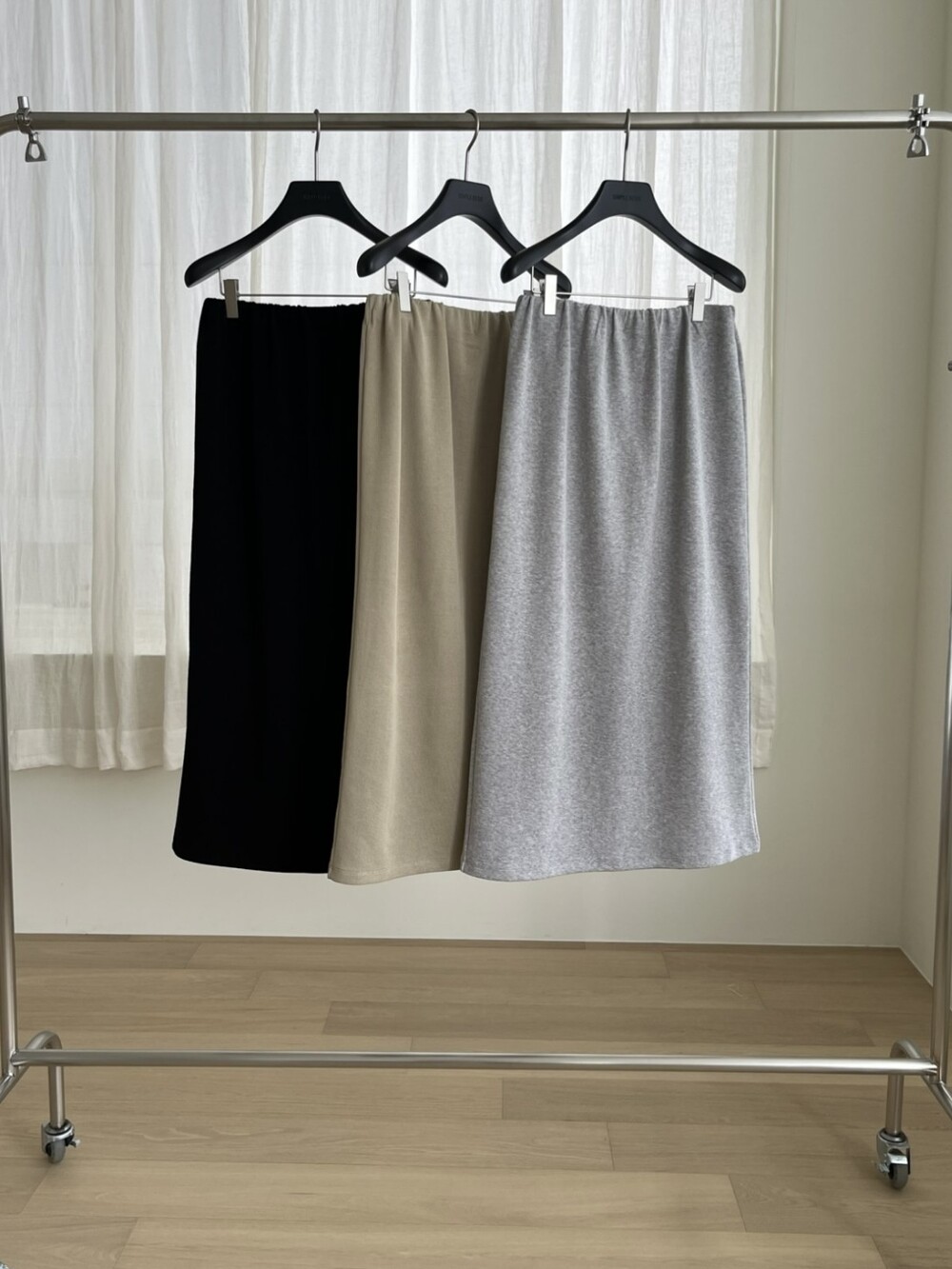편안하면서도 세련된 무드를 느낄 수 있는 스커트입니다. 과하지 않은 H라인으로 슬림 해 보이며 뒤트임이 있어 불편함이 없습니다. 코튼과 폴리 혼방의 골지 조직이 니트 느낌이 나 멋스러우며 스판이 들어가 신축성이 좋아 착용감이 정말 편안합니다. 밴딩이 안쪽에 들어가 있으며 전체적으로 군더더기 없이 심플합니다. 가격대도 부담 없으면서 활용도는 높은 아이템으로 꼭 추천합니다!