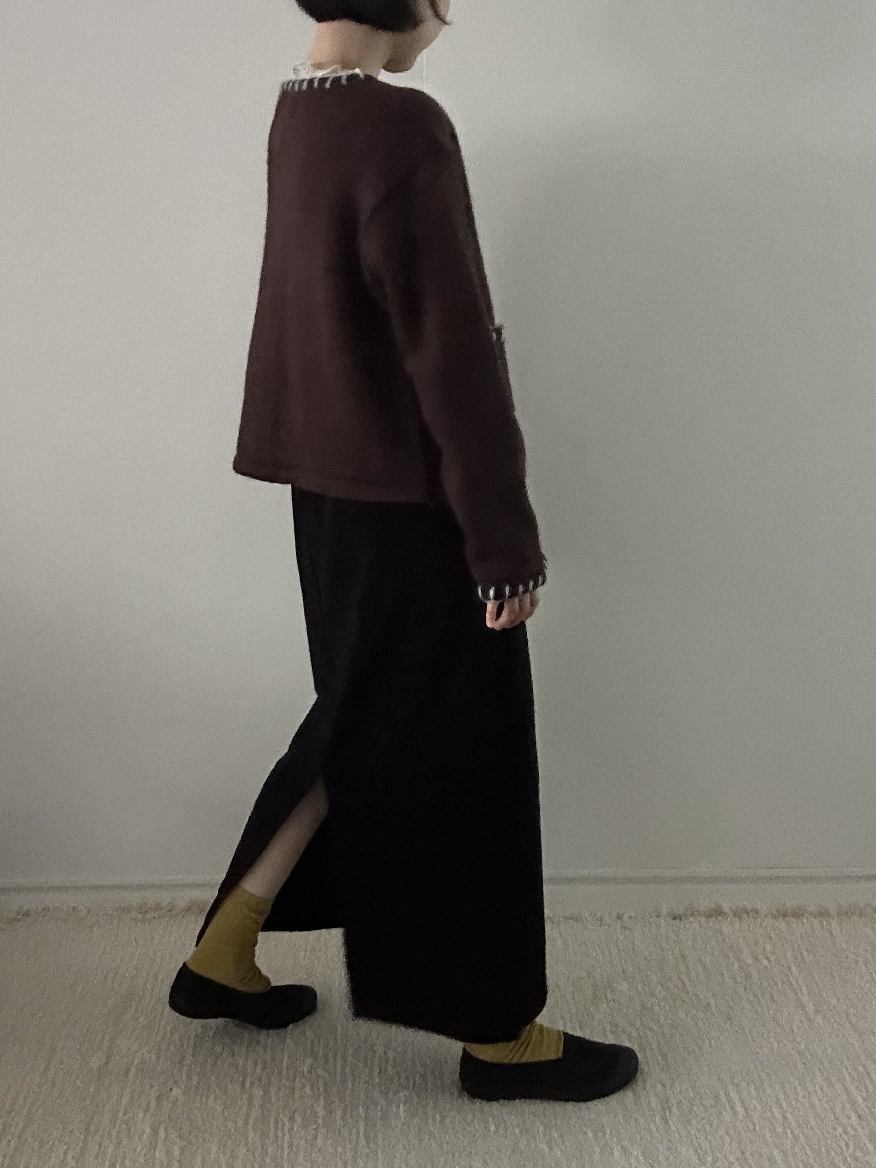 자연스럽게 떨어지는 스트레이트 실루엣이 단정하면서도 여유 있는 인상을 줍니다.