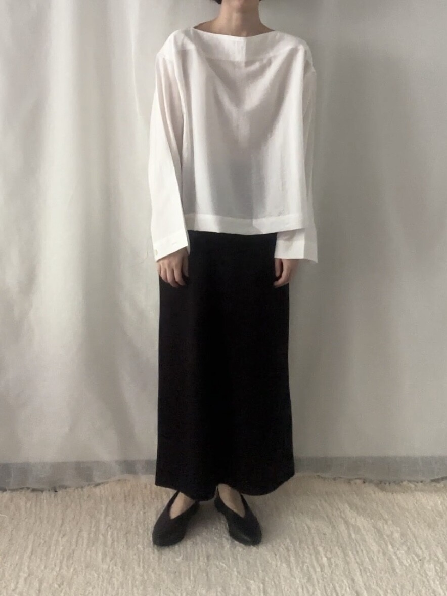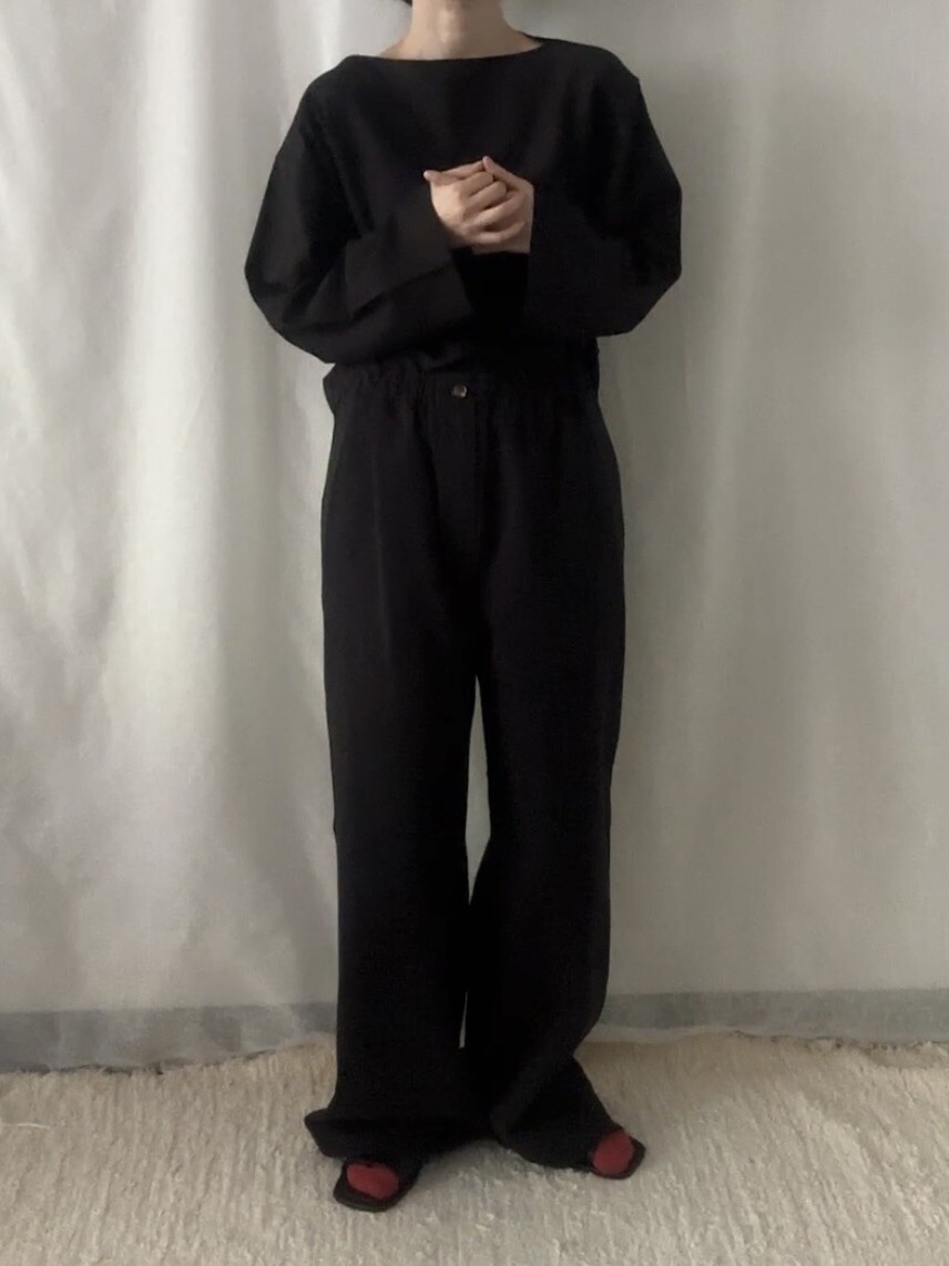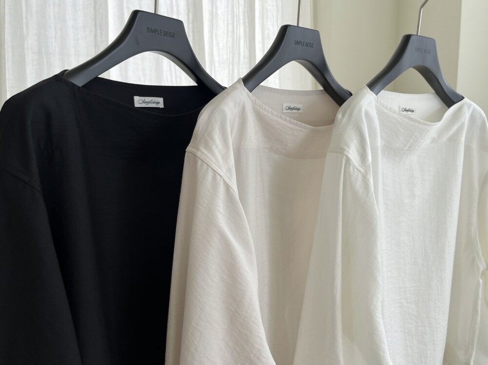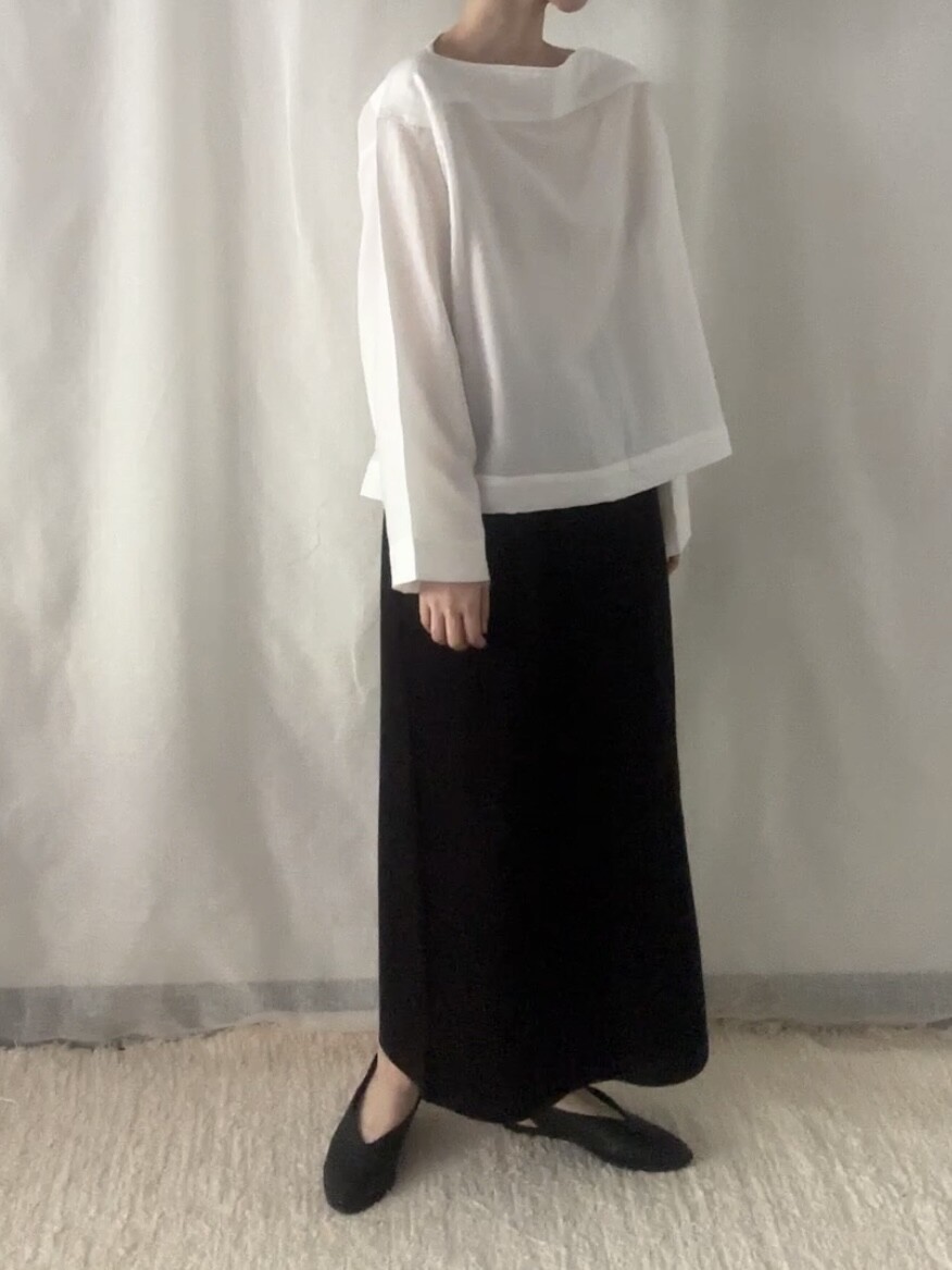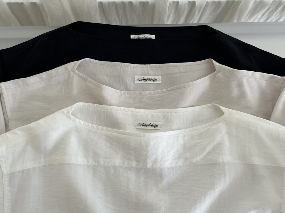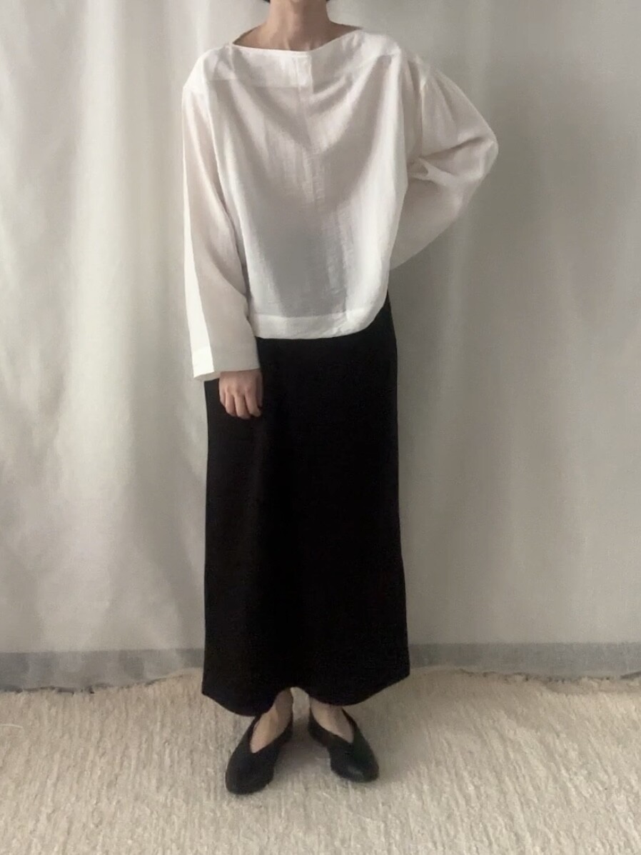 보트넥 디자인이 멋스럽고 고급스러운 블라우스입니다. 텐셀, 레이온 혼방의 얇고 쉬어한 소재가 시원해 보이고 넥 라인이 자연스럽게 드레이핑 되어 유니크합니다. 전체적으로 여유 있는 사이즈에 길이감도 적당해 하의에 넣거나 넣지 않아도 어색함이 없습니다.