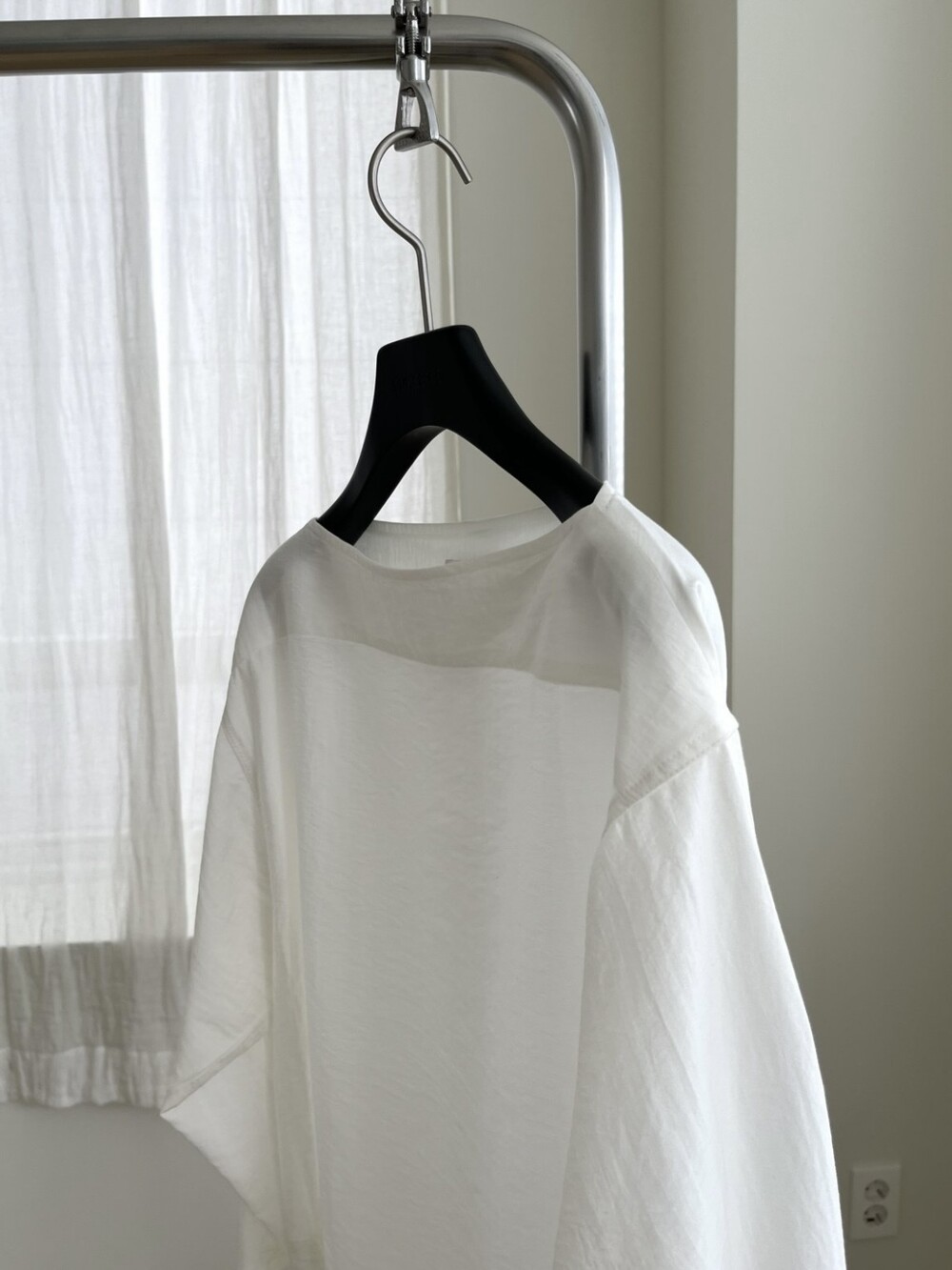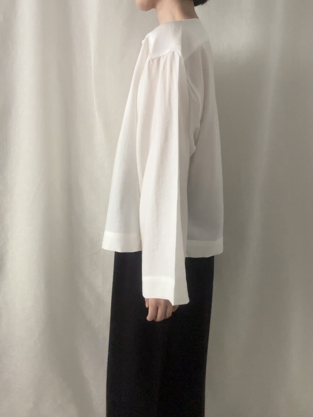 쉬어한 소재감이 고급스러우며 어떤 하의와 매치하느냐에 따라 오피스룩부터 데일리룩까지 다양한 연출이 가능합니다. 소매 끝에는 버튼이 있어 폭 조절이 가능하며 포인트가 되어줍니다. 여성스러우면서 미니멀한 무드로 하나쯤 있으면 활용도가 높은 블라우스입니다.