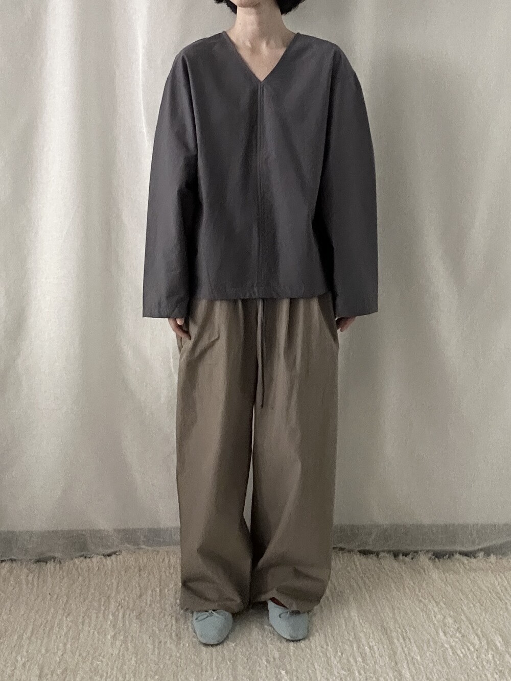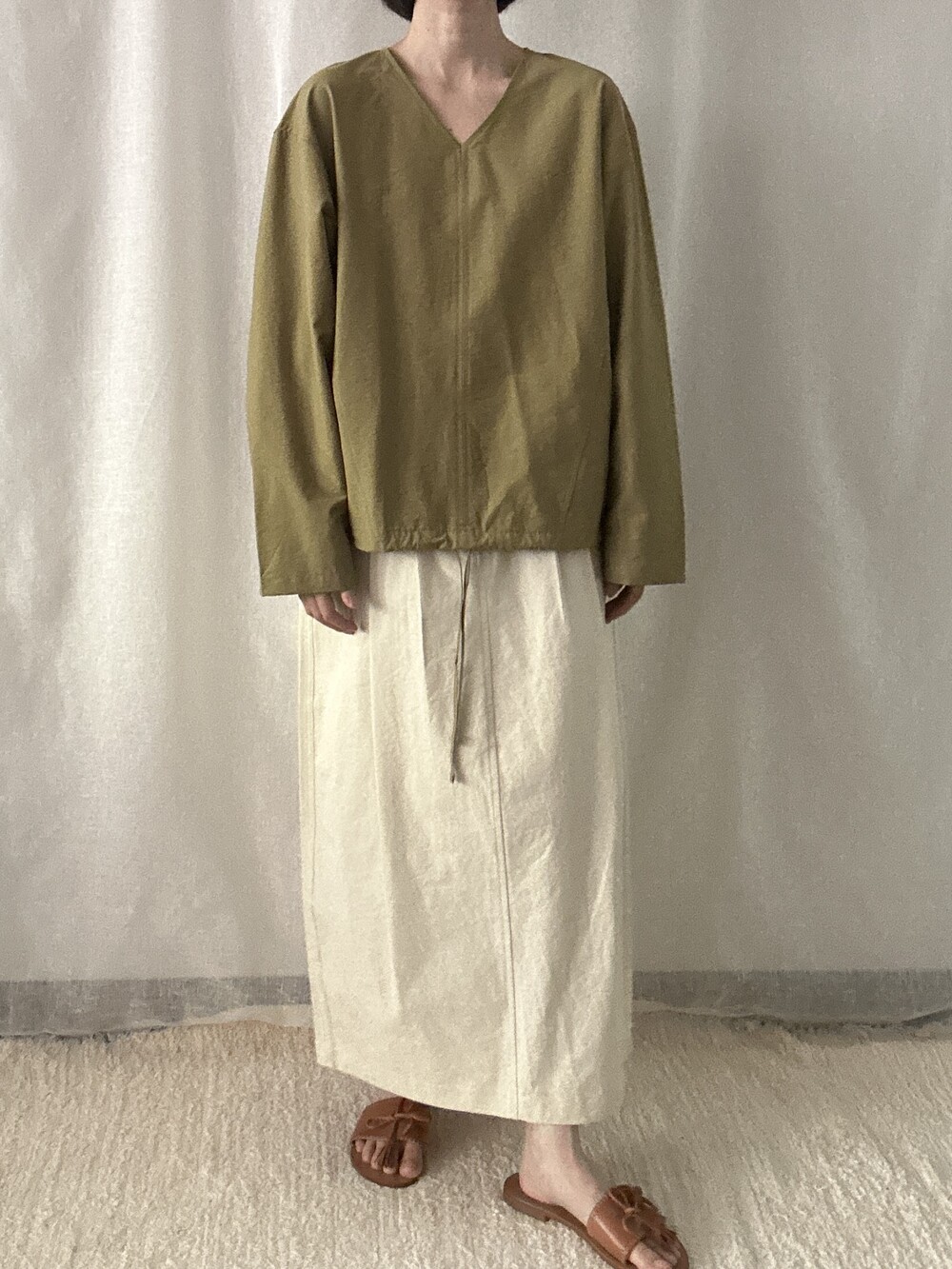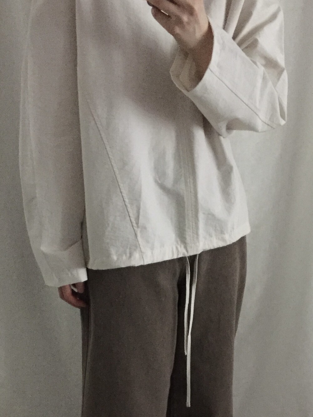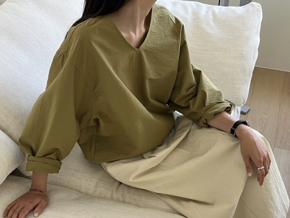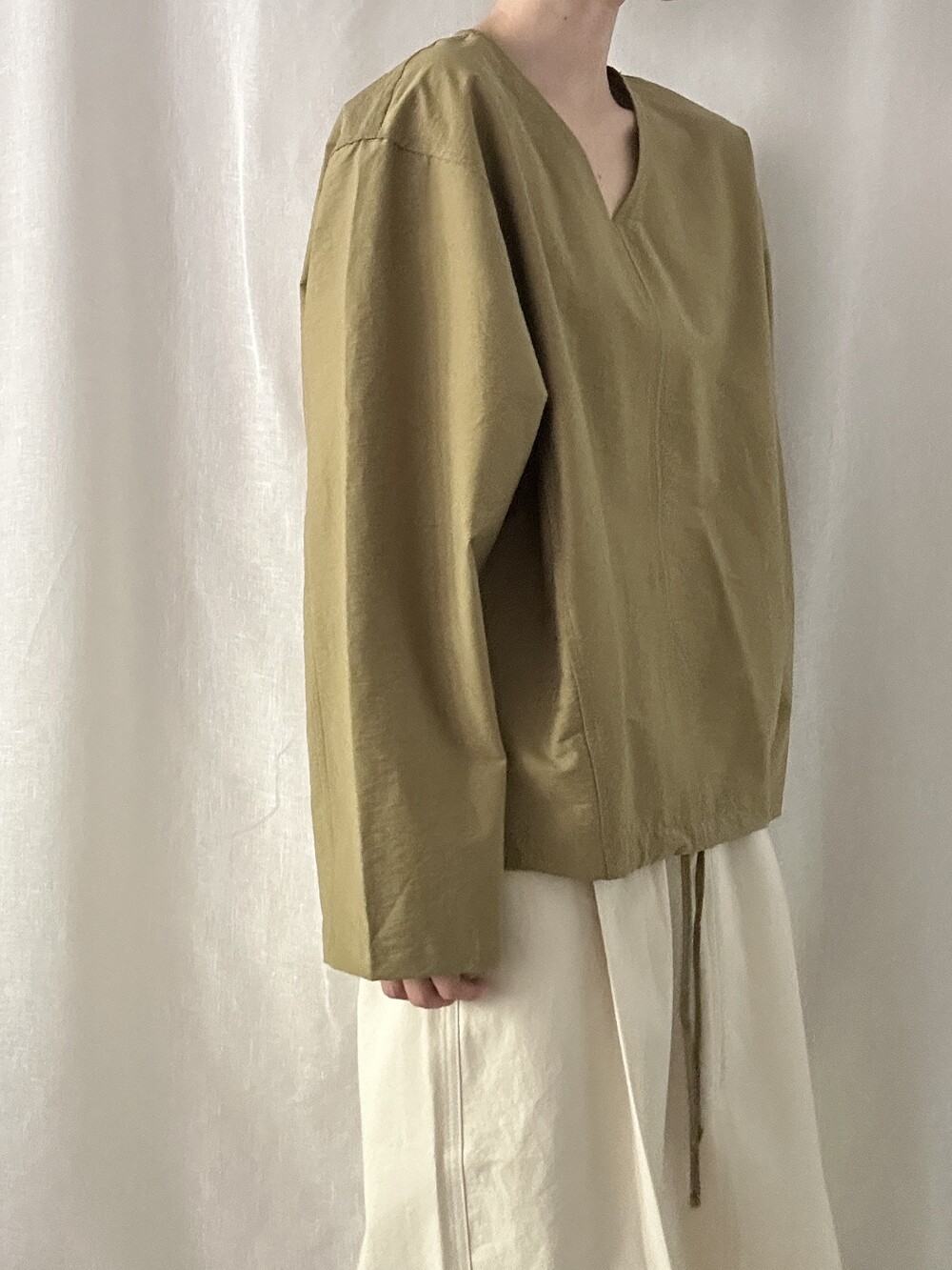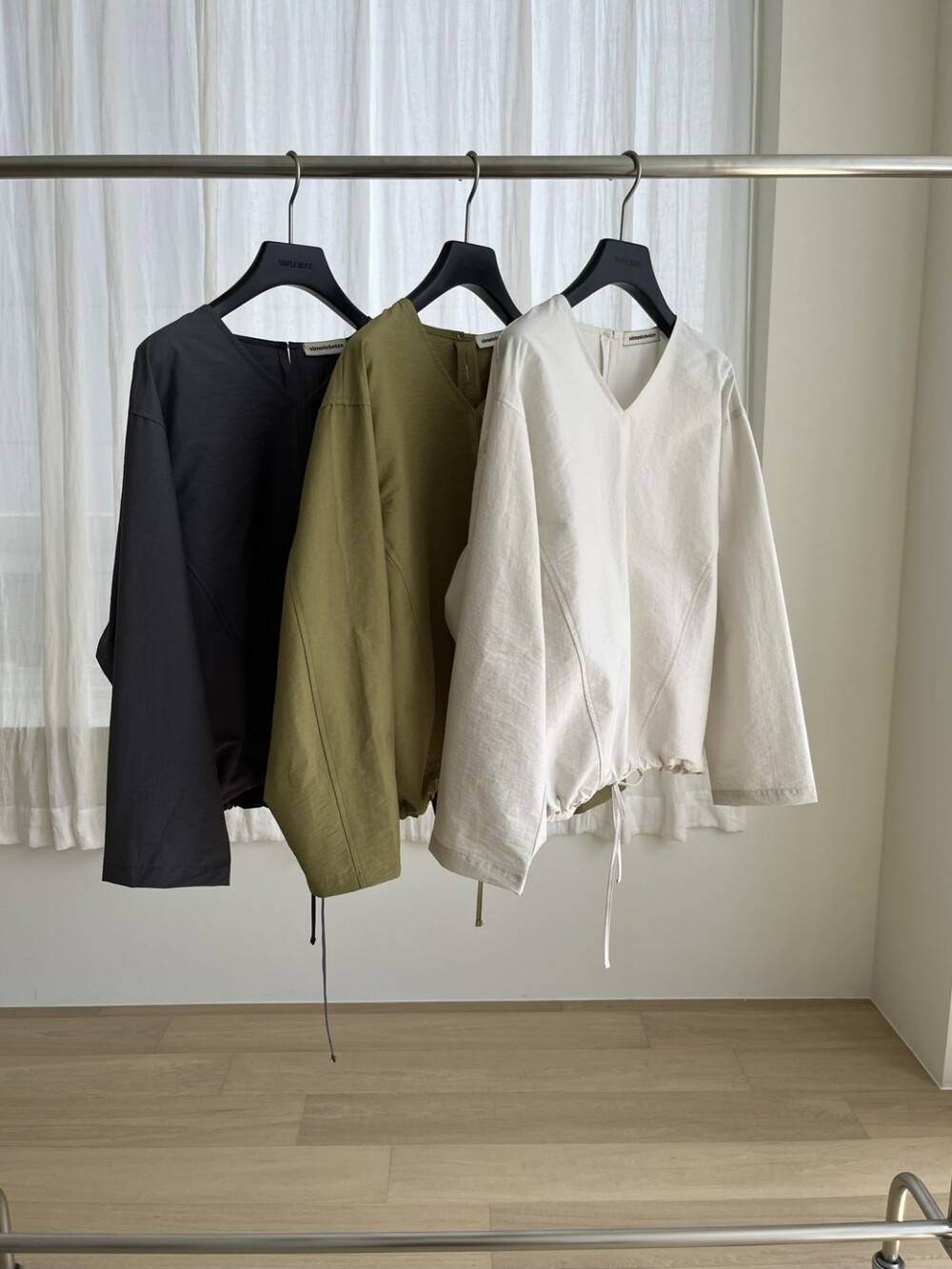 부드러운 코튼과 나일론 혼용 소재로 편안하게 착용할 수 있는 간절기 블라우스입니다. 브이넥과 밑단 스트링 디테일로 원하는 실루엣을 자유롭게 조절할 수 있어, 자연스러운 주름과 흐름이 만들어내는 여유로운 무드가 매력적입니다. 옷 전체를 여러 개의 패널로 절개해 봉제해 입체감을 주면서 단조롭지 않은 포인트를 더해줍니다. 올리브, 크림, 차콜 세 가지 컬러는 하나의 컬러로 단정할 수 없는 묘한 컬러들로 심플하면서도 감각적인 데일리 스타일을 완성할 수 있습니다. 날씨가 쌀쌀해지면 이너로 폴라티를 레이어드해서 착용해도 좋습니다! 심플하면서도 멋스럽게 매치해 보세요:)
