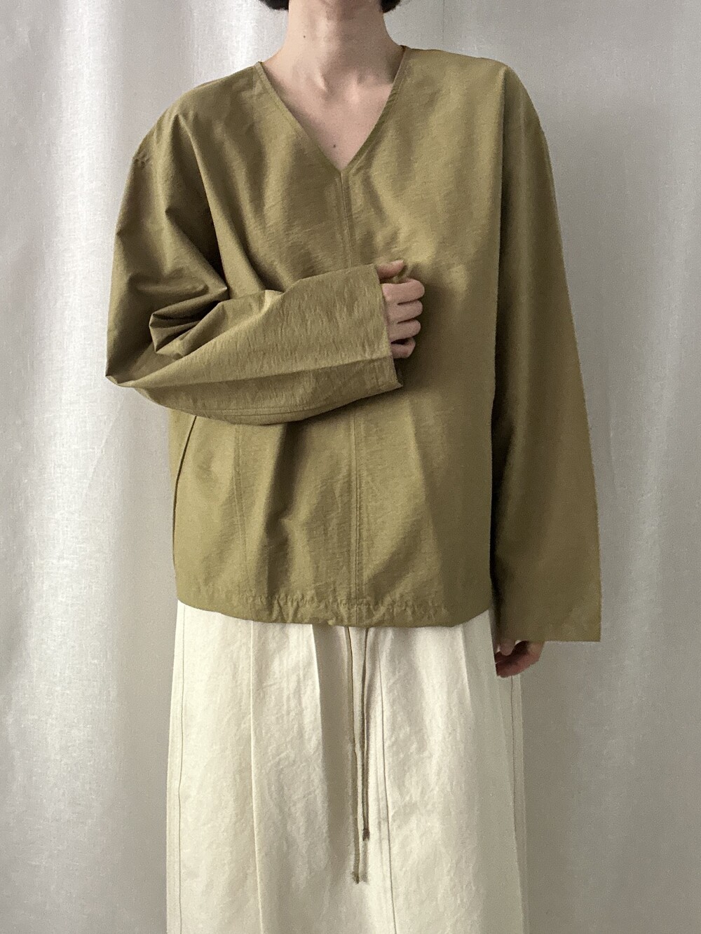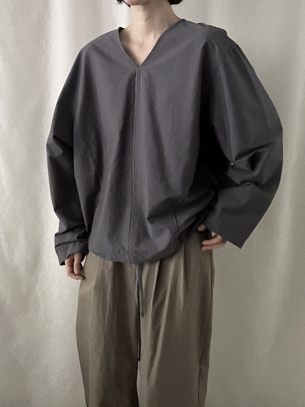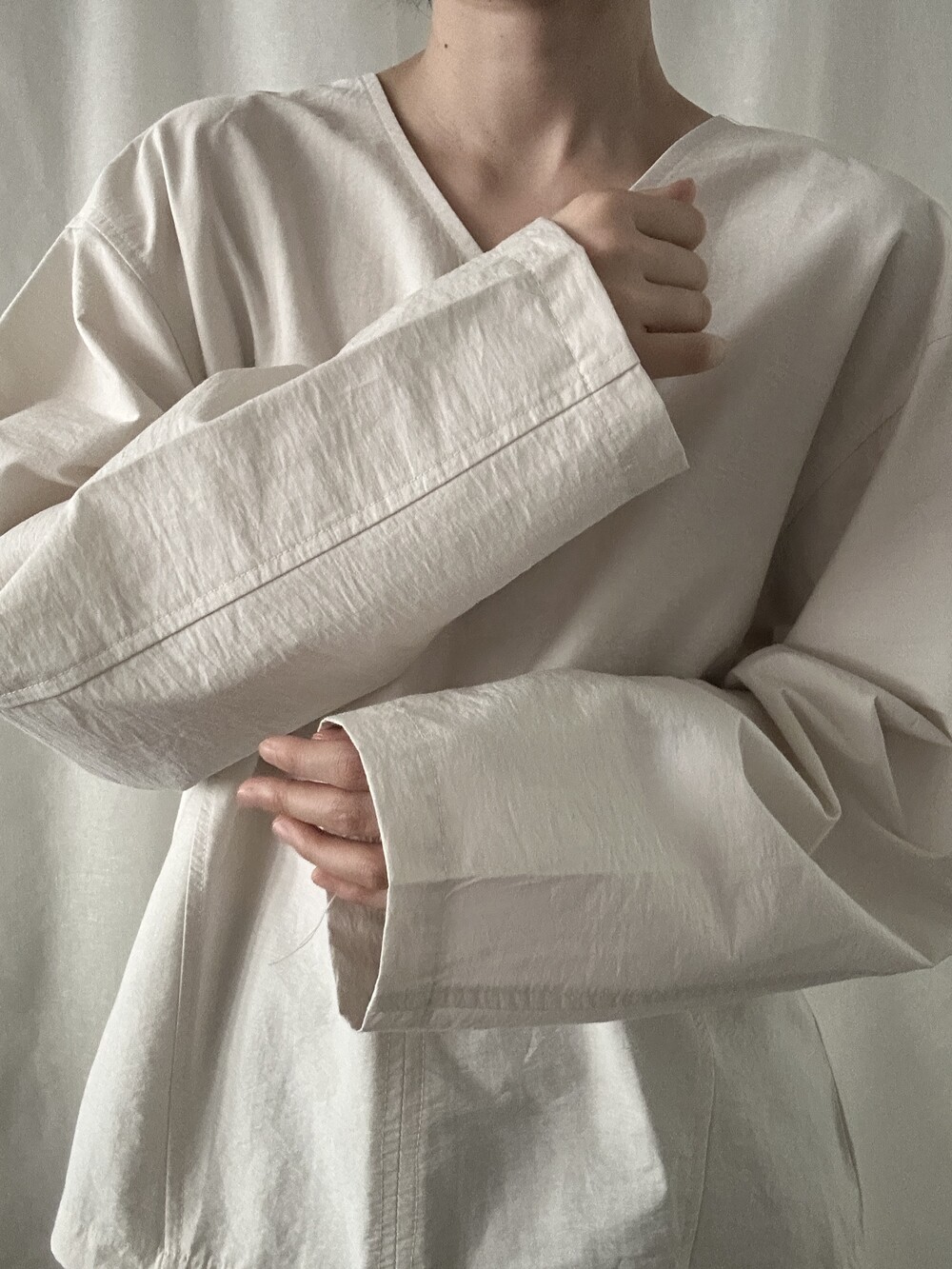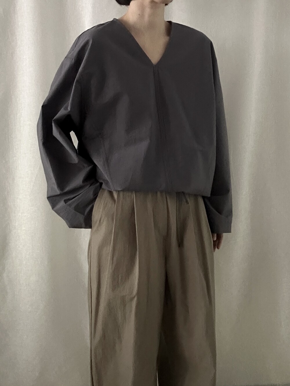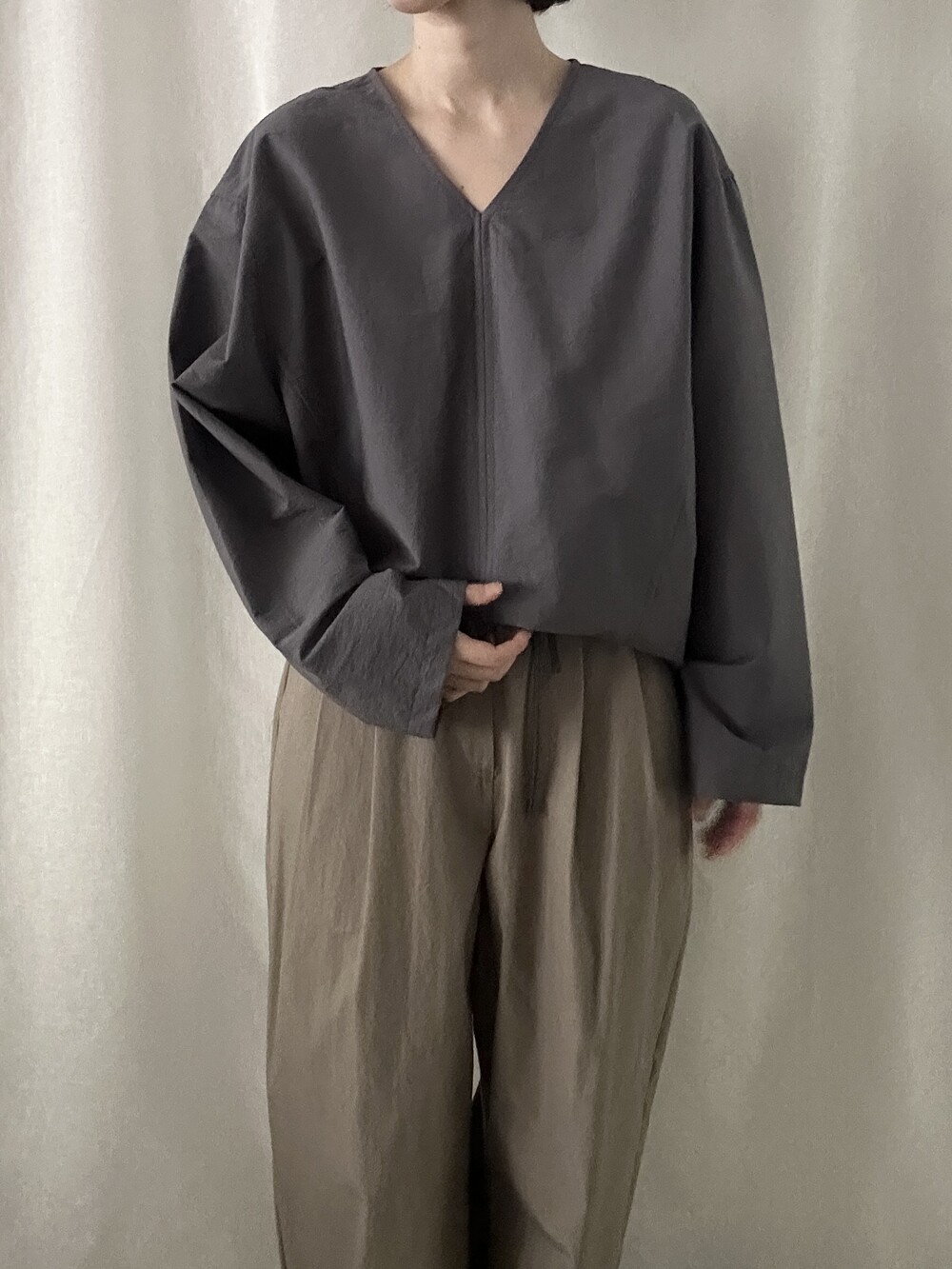 부드러운 코튼과 나일론 혼용 소재로 편안하게 착용할 수 있는 간절기 블라우스입니다. 브이넥과 밑단 스트링 디테일로 원하는 실루엣을 자유롭게 조절할 수 있어, 자연스러운 주름과 흐름이 만들어내는 여유로운 무드가 매력적입니다. 옷 전체를 여러 개의 패널로 절개해 봉제해 입체감을 주면서 단조롭지 않은 포인트를 더해줍니다. 올리브, 크림, 차콜 세 가지 컬러는 하나의 컬러로 단정할 수 없는 묘한 컬러들로 심플하면서도 감각적인 데일리 스타일을 완성할 수 있습니다. 날씨가 쌀쌀해지면 이너로 폴라티를 레이어드해서 착용해도 좋습니다! 심플하면서도 멋스럽게 매치해 보세요:)