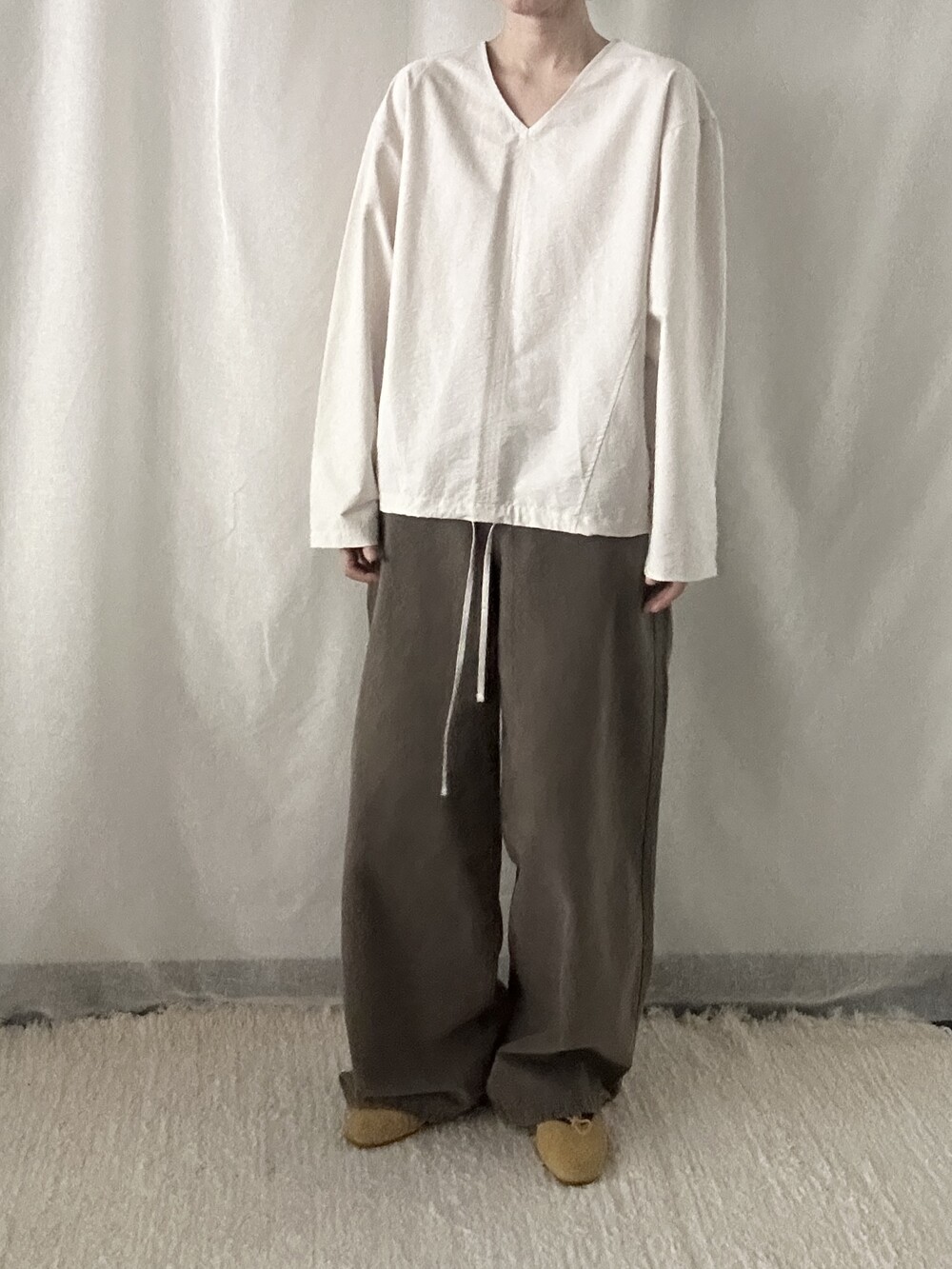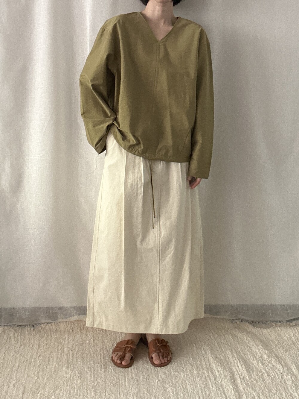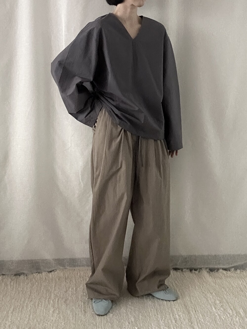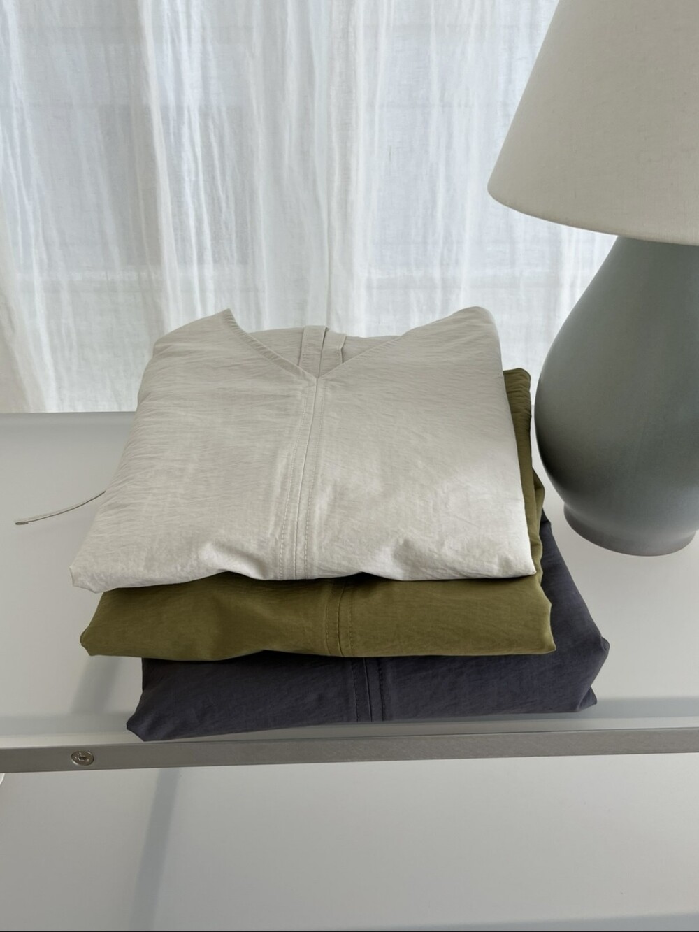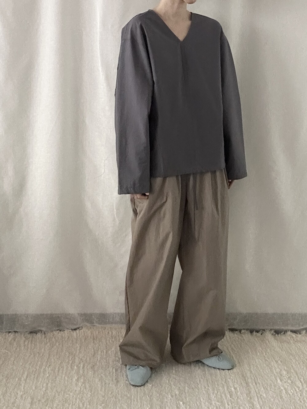 부드러운 코튼과 나일론 혼용 소재로 편안하게 착용할 수 있는 간절기 블라우스입니다. 브이넥과 밑단 스트링 디테일로 원하는 실루엣을 자유롭게 조절할 수 있어, 자연스러운 주름과 흐름이 만들어내는 여유로운 무드가 매력적입니다. 옷 전체를 여러 개의 패널로 절개해 봉제해 입체감을 주면서 단조롭지 않은 포인트를 더해줍니다. 올리브, 크림, 차콜 세 가지 컬러는 하나의 컬러로 단정할 수 없는 묘한 컬러들로 심플하면서도 감각적인 데일리 스타일을 완성할 수 있습니다. 날씨가 쌀쌀해지면 이너로 폴라티를 레이어드해서 착용해도 좋습니다! 심플하면서도 멋스럽게 매치해 보세요:)