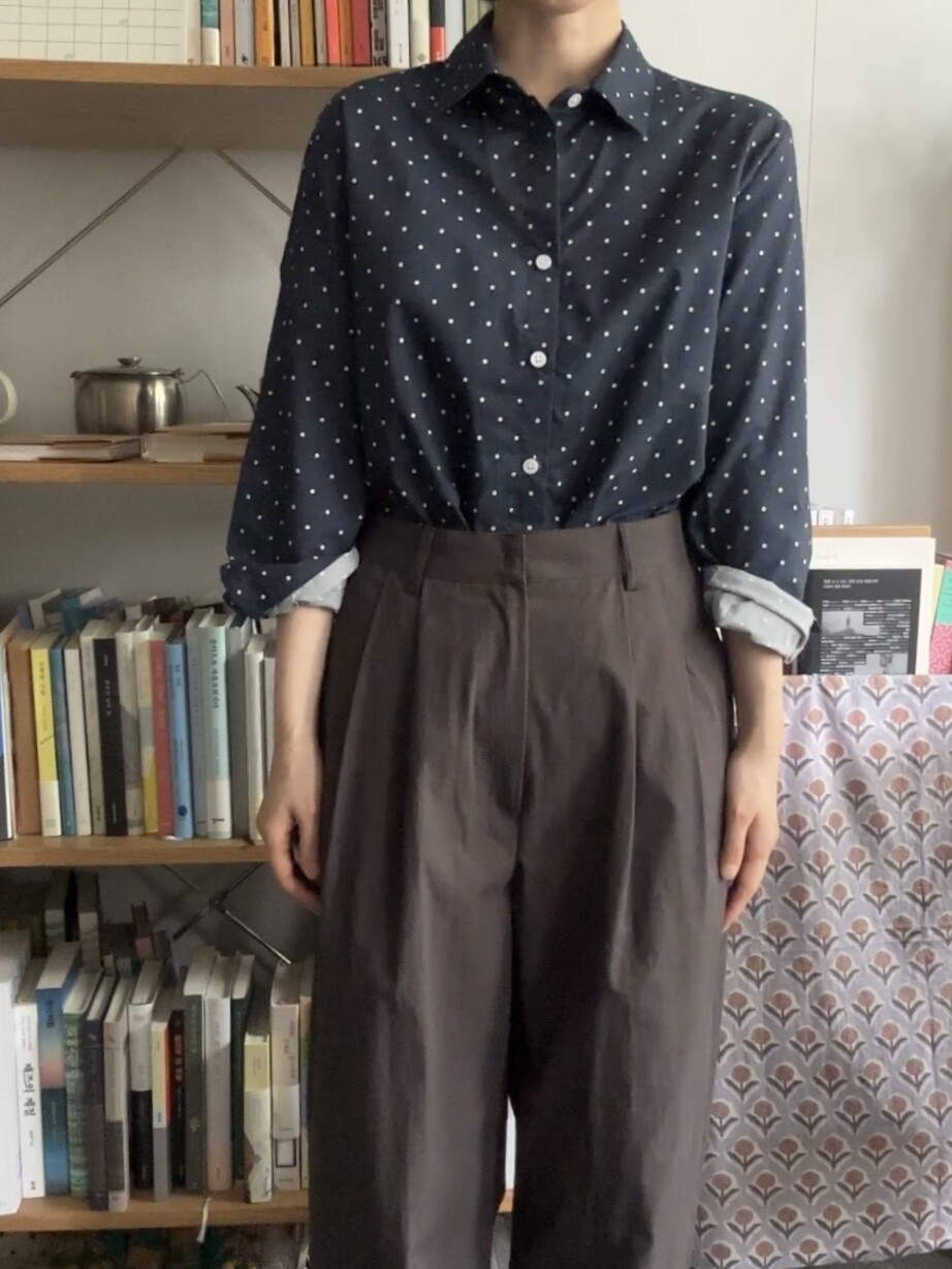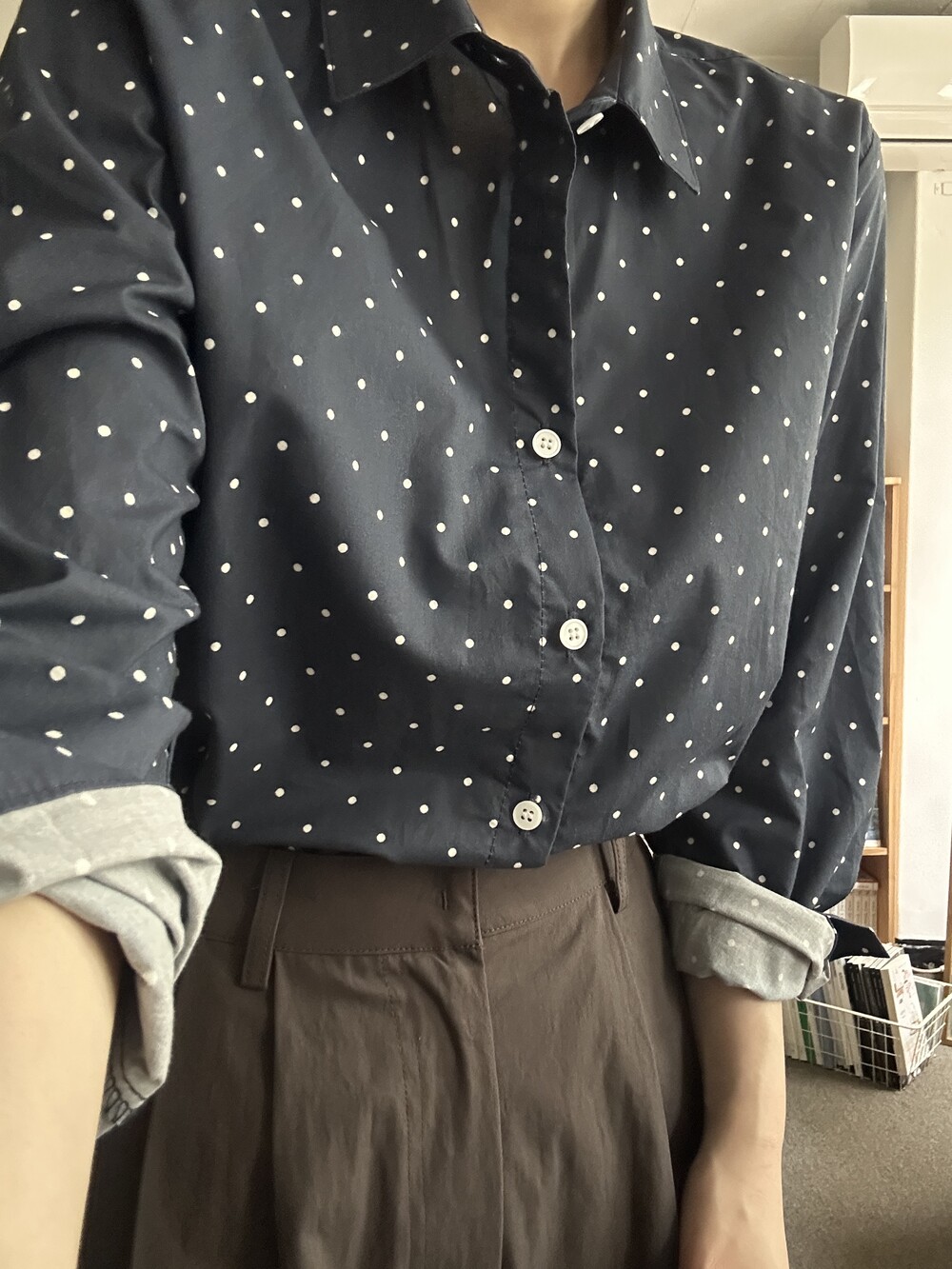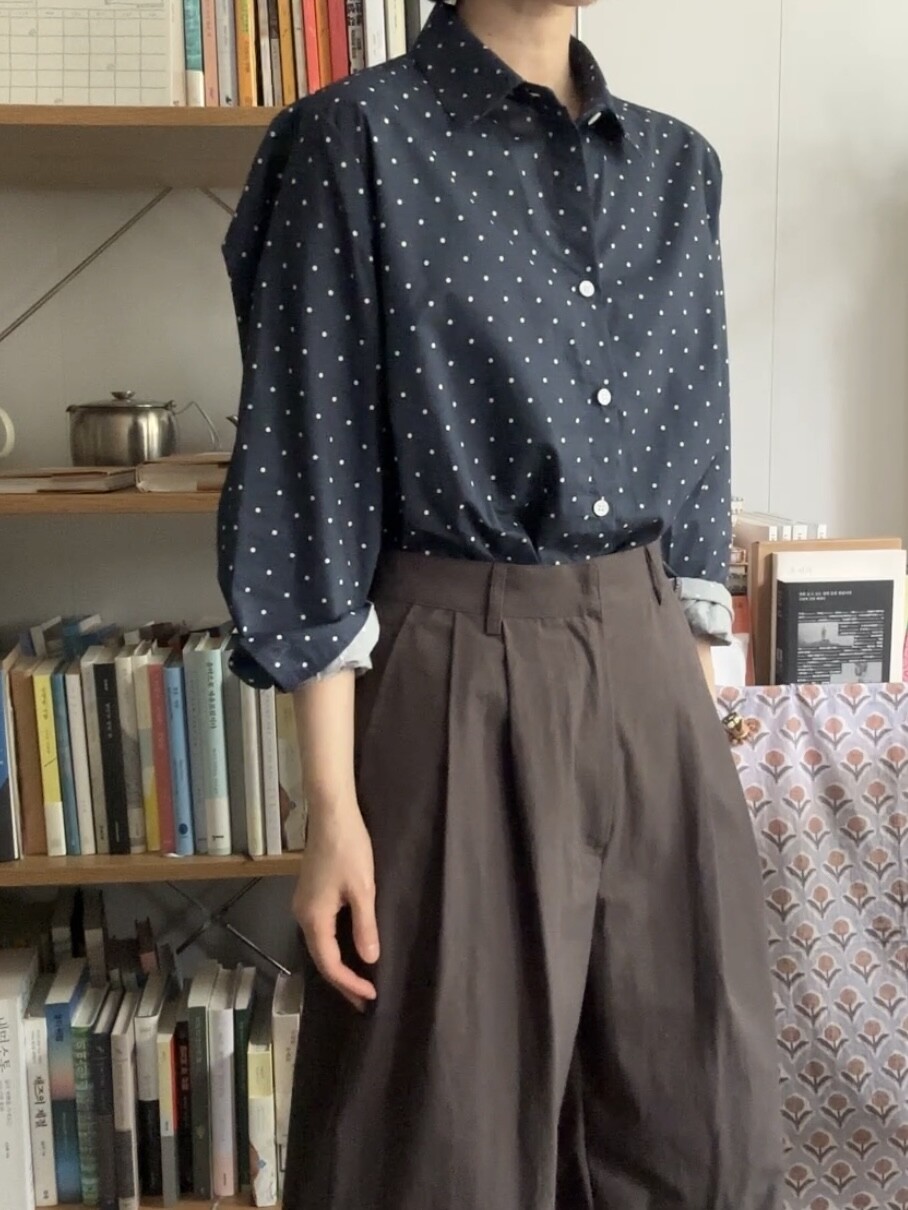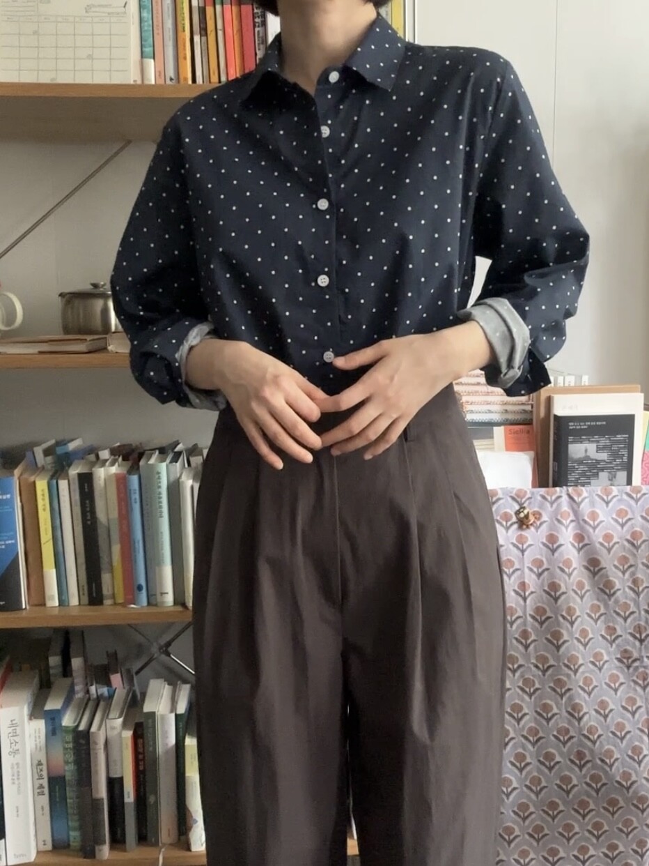잔잔한 도트 패턴이 클래식하면서도 경쾌한 분위기를 더해주고, 탄탄한 코튼 100% 원단은 깔끔한 실루엣을 유지해 줍니다.