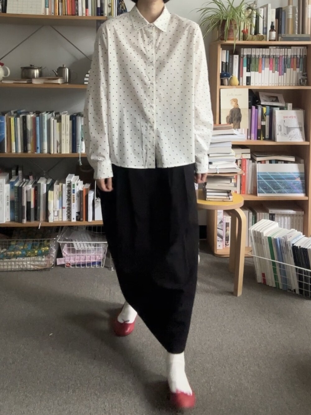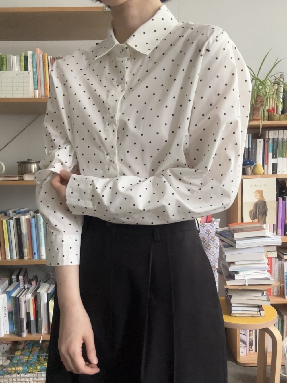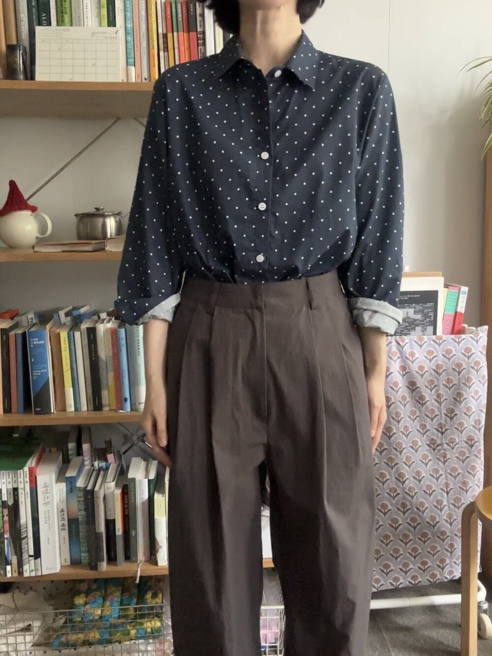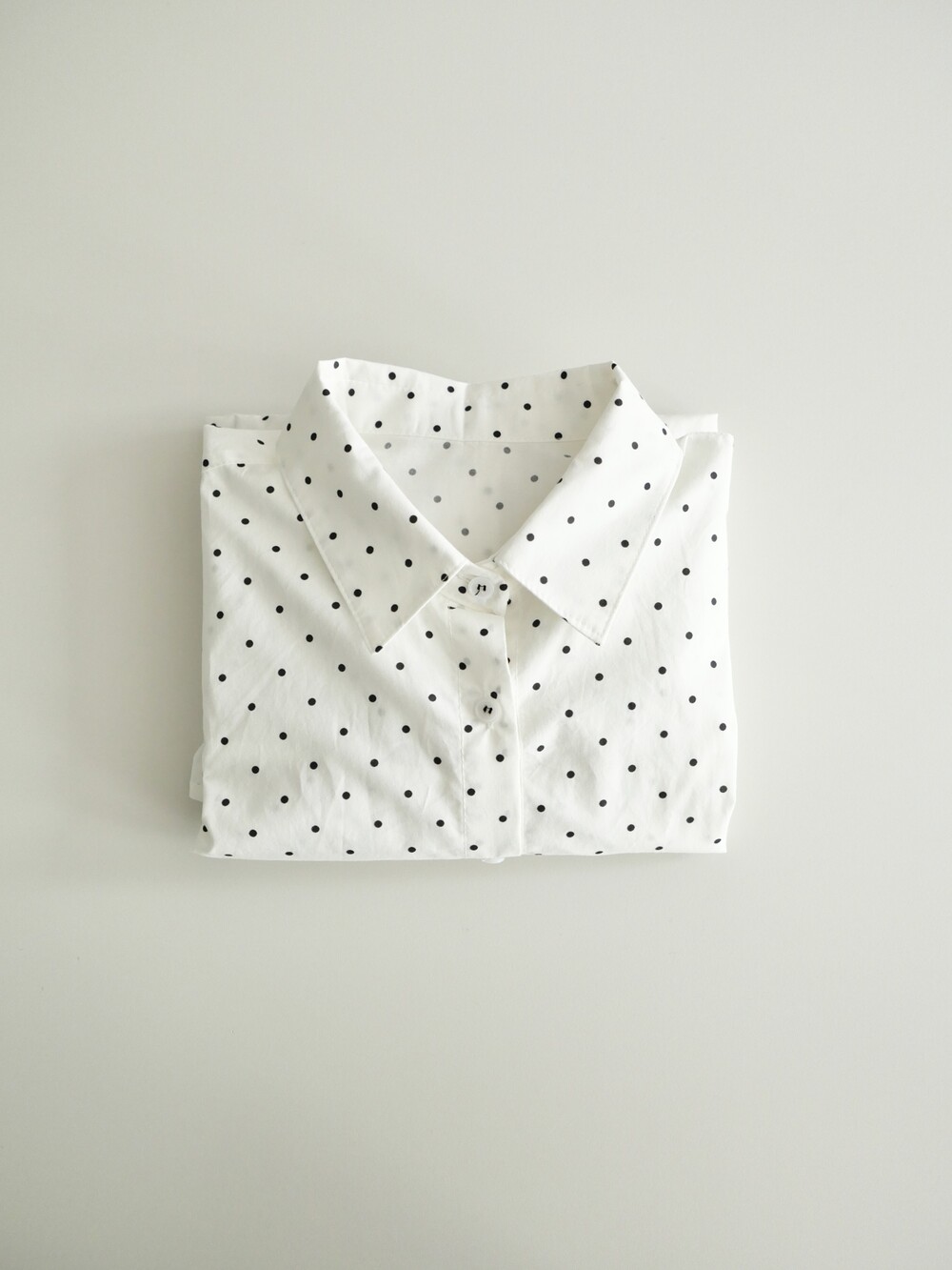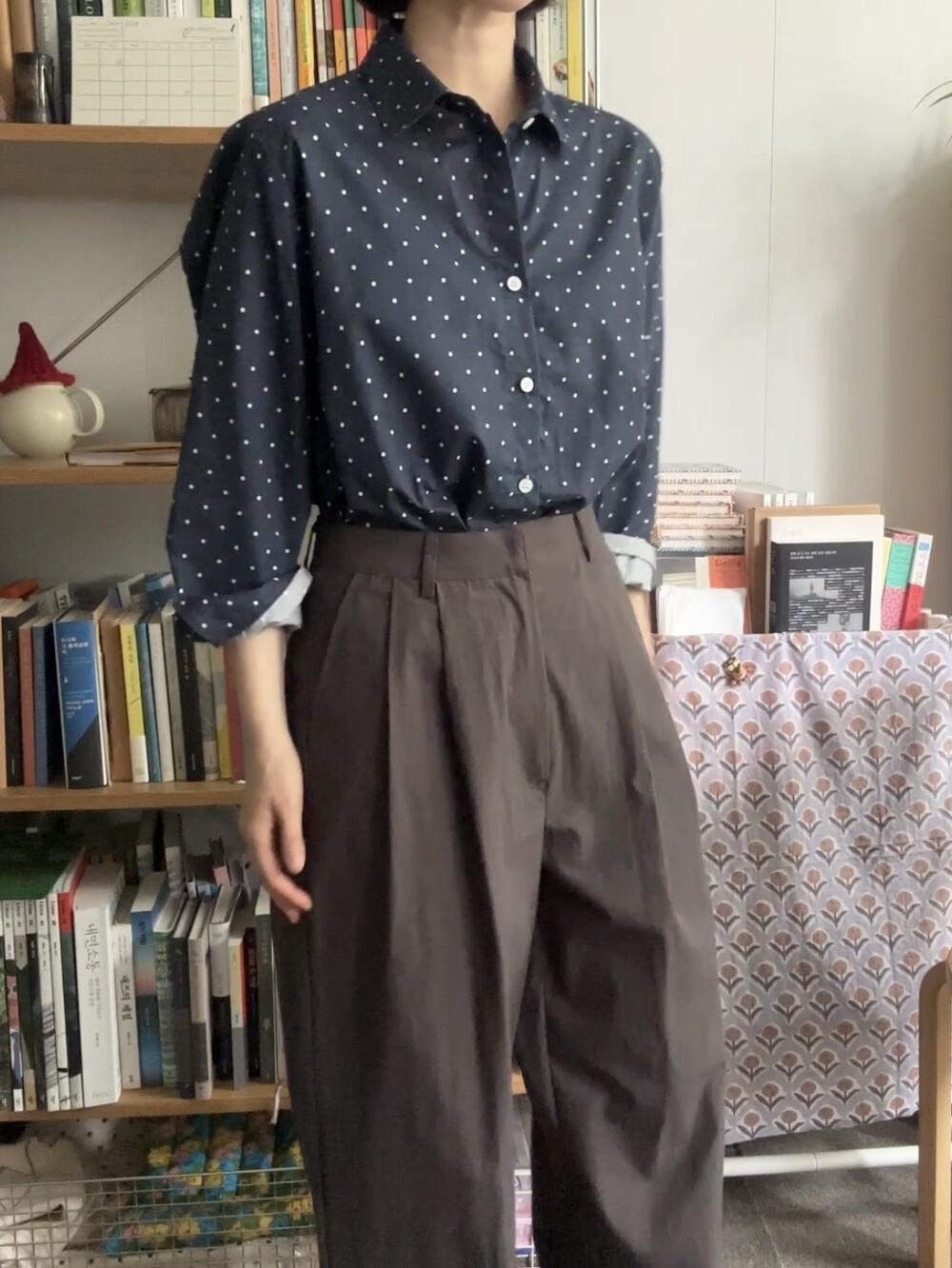 잔잔한 도트 패턴이 클래식하면서도 경쾌한 분위기를 더해주고, 탄탄한 코튼 100% 원단은 깔끔한 실루엣을 유지해 줍니다.