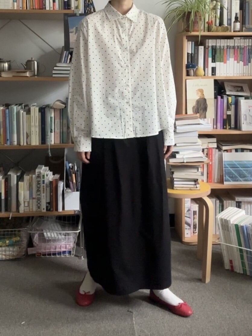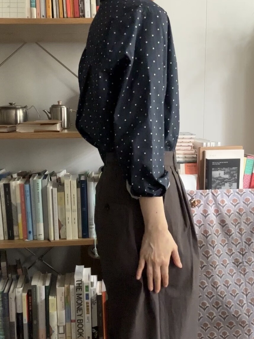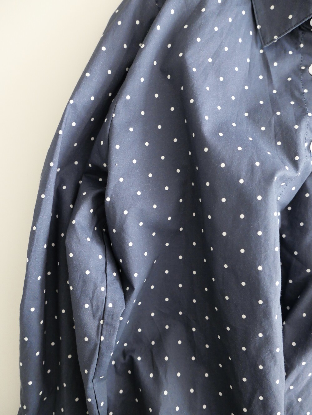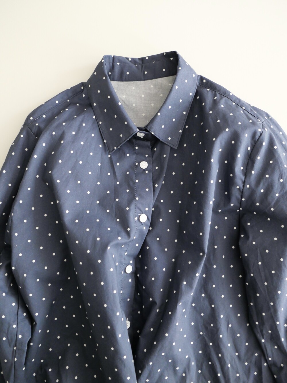 잔잔한 도트 패턴이 클래식하면서도 경쾌한 분위기를 더해주고, 탄탄한 코튼 100% 원단은 깔끔한 실루엣을 유지해 줍니다.
