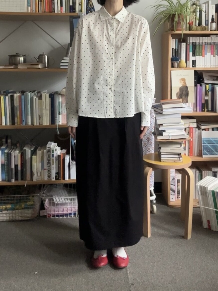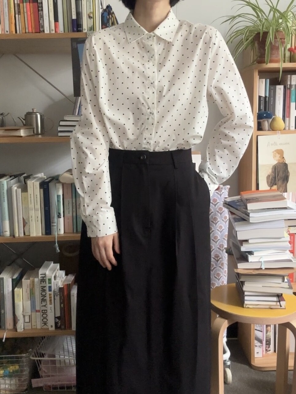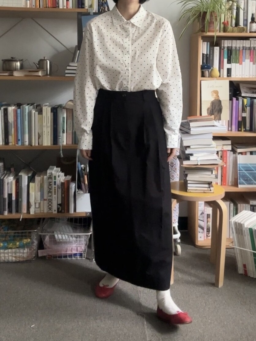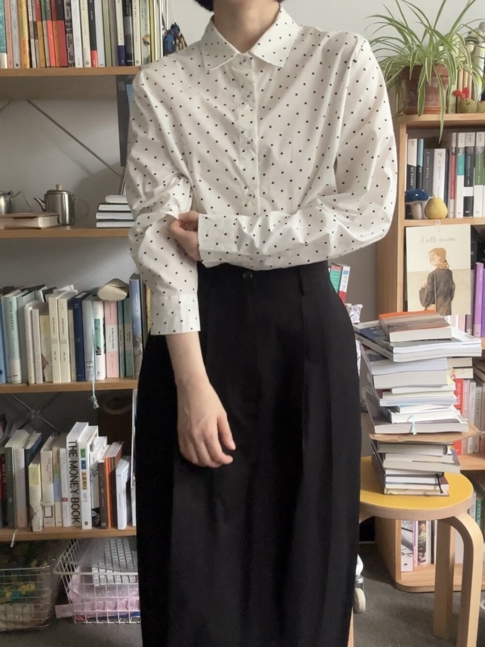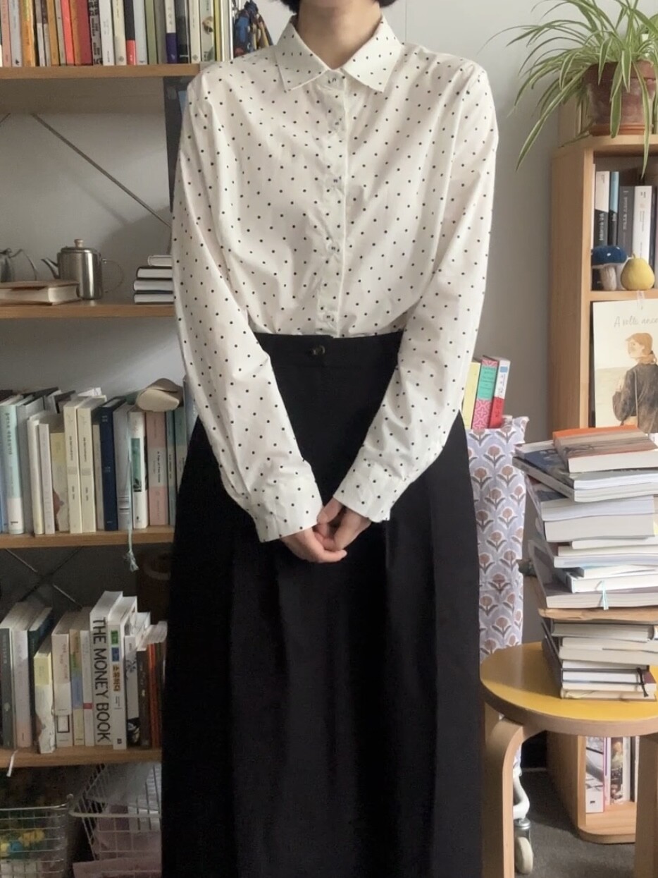 잔잔한 도트 패턴이 클래식하면서도 경쾌한 분위기를 더해주고, 탄탄한 코튼 100% 원단은 깔끔한 실루엣을 유지해 줍니다.