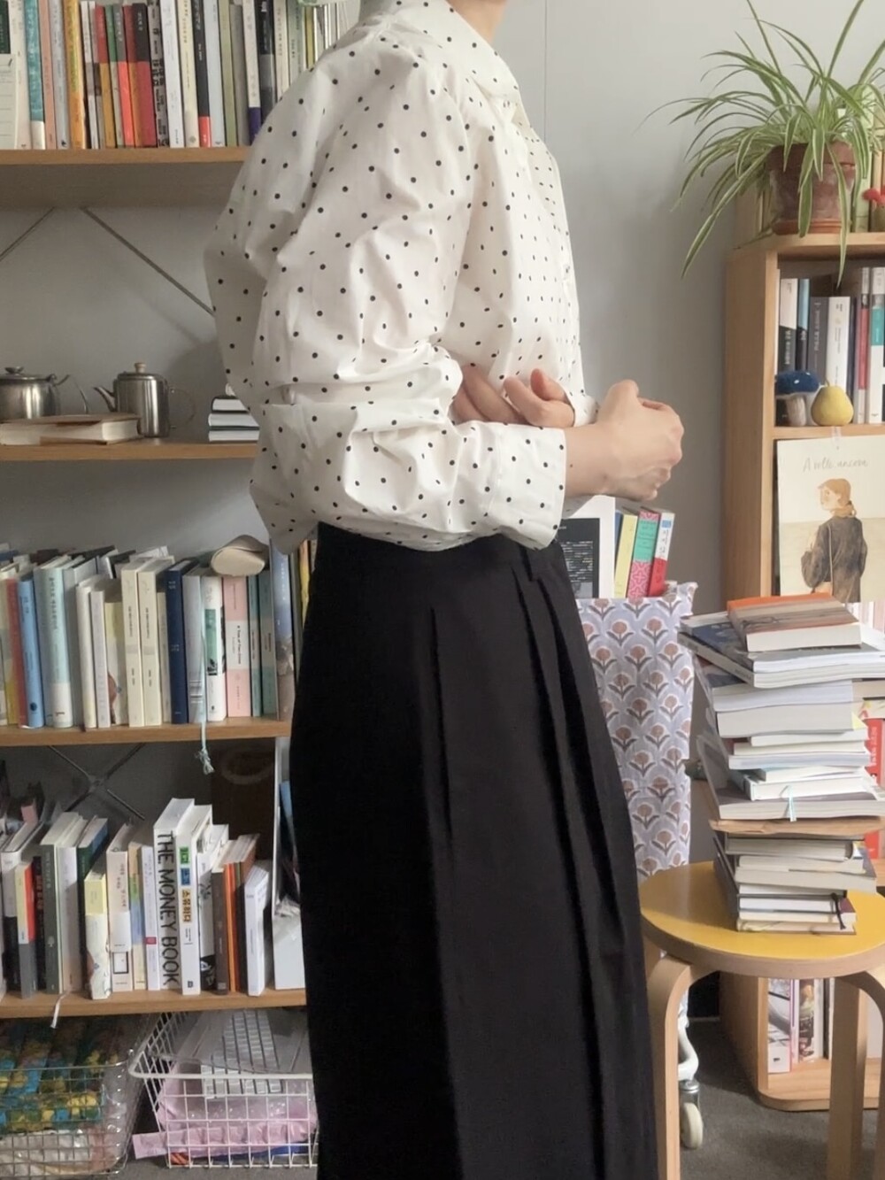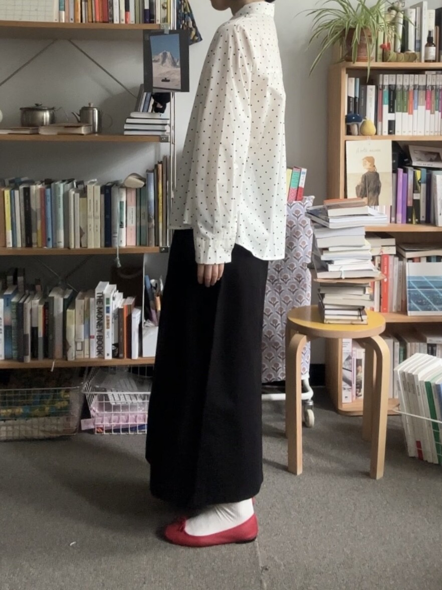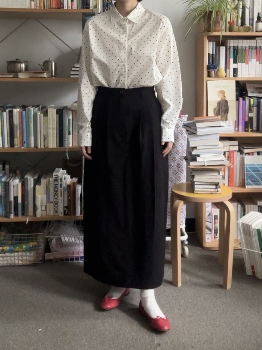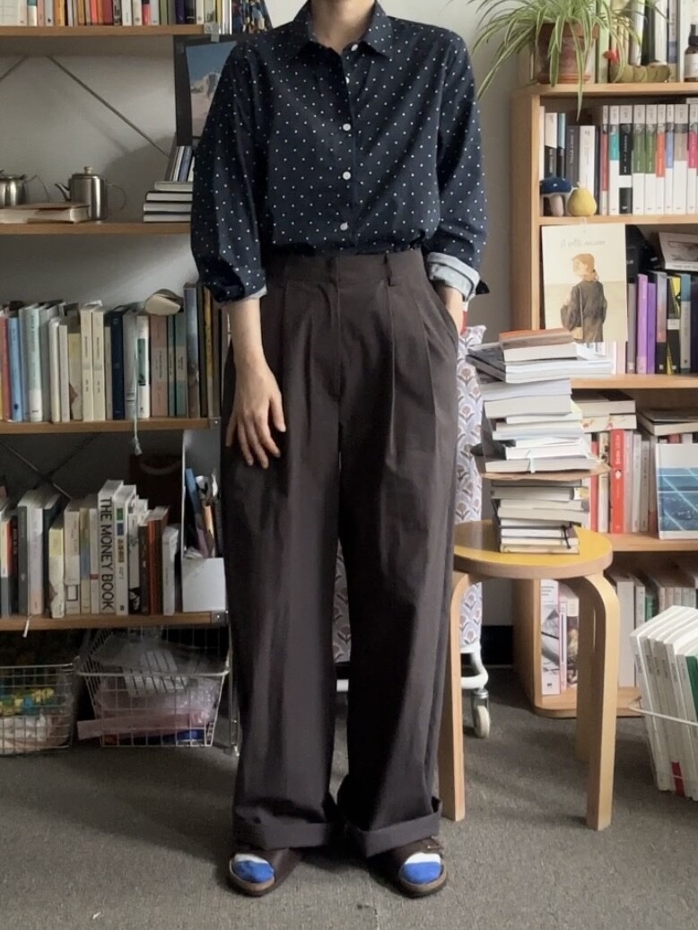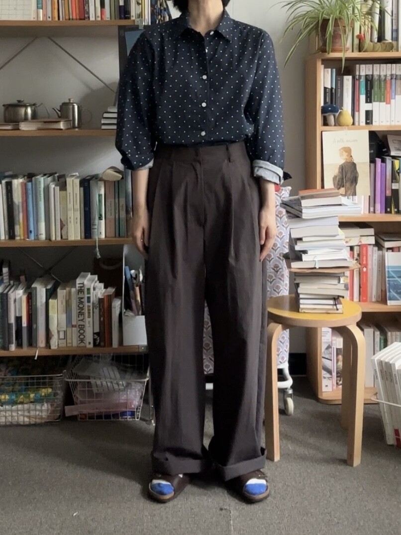 잔잔한 도트 패턴이 클래식하면서도 경쾌한 분위기를 더해주고, 탄탄한 코튼 100% 원단은 깔끔한 실루엣을 유지해 줍니다.