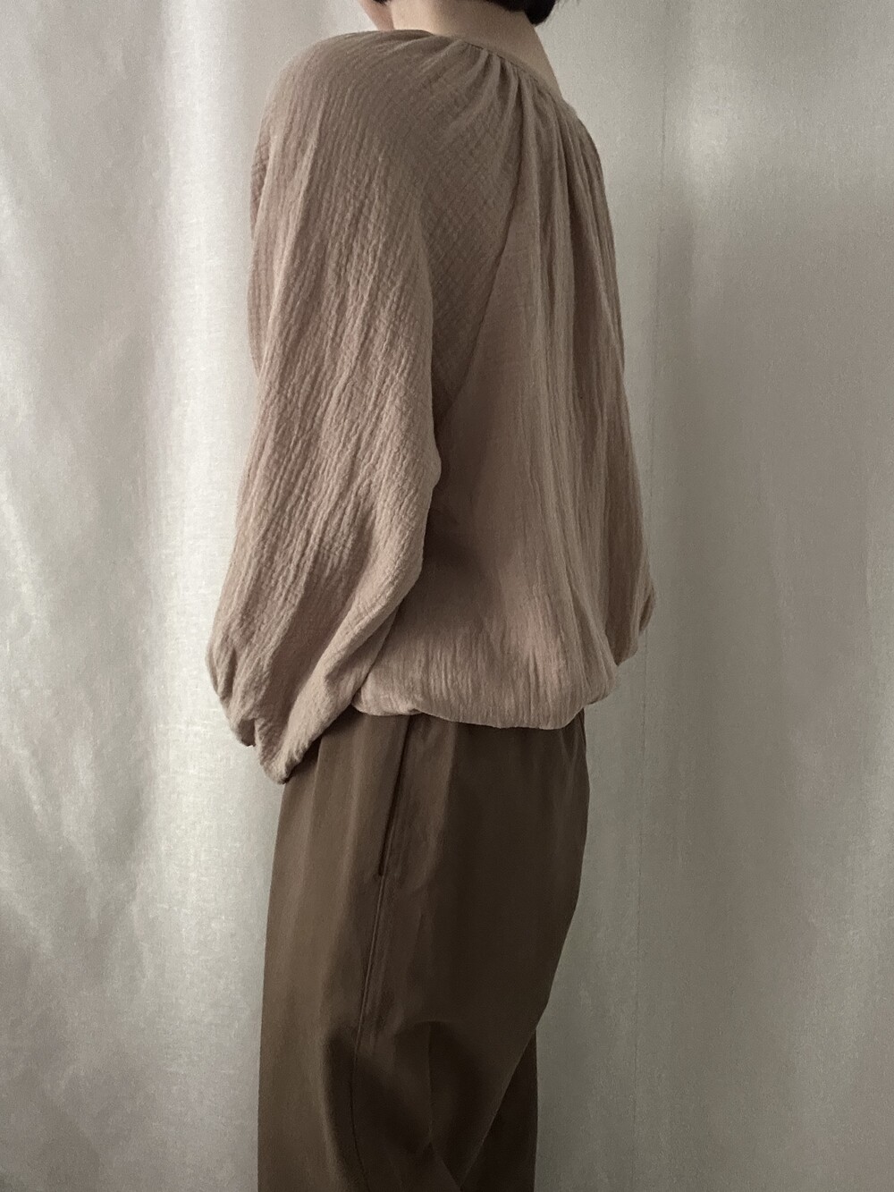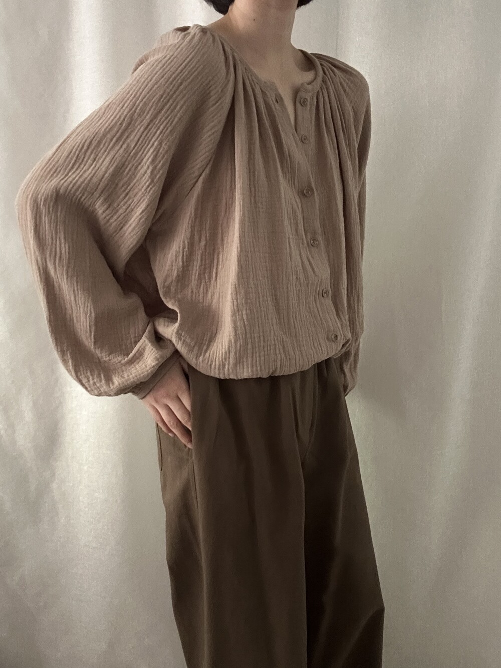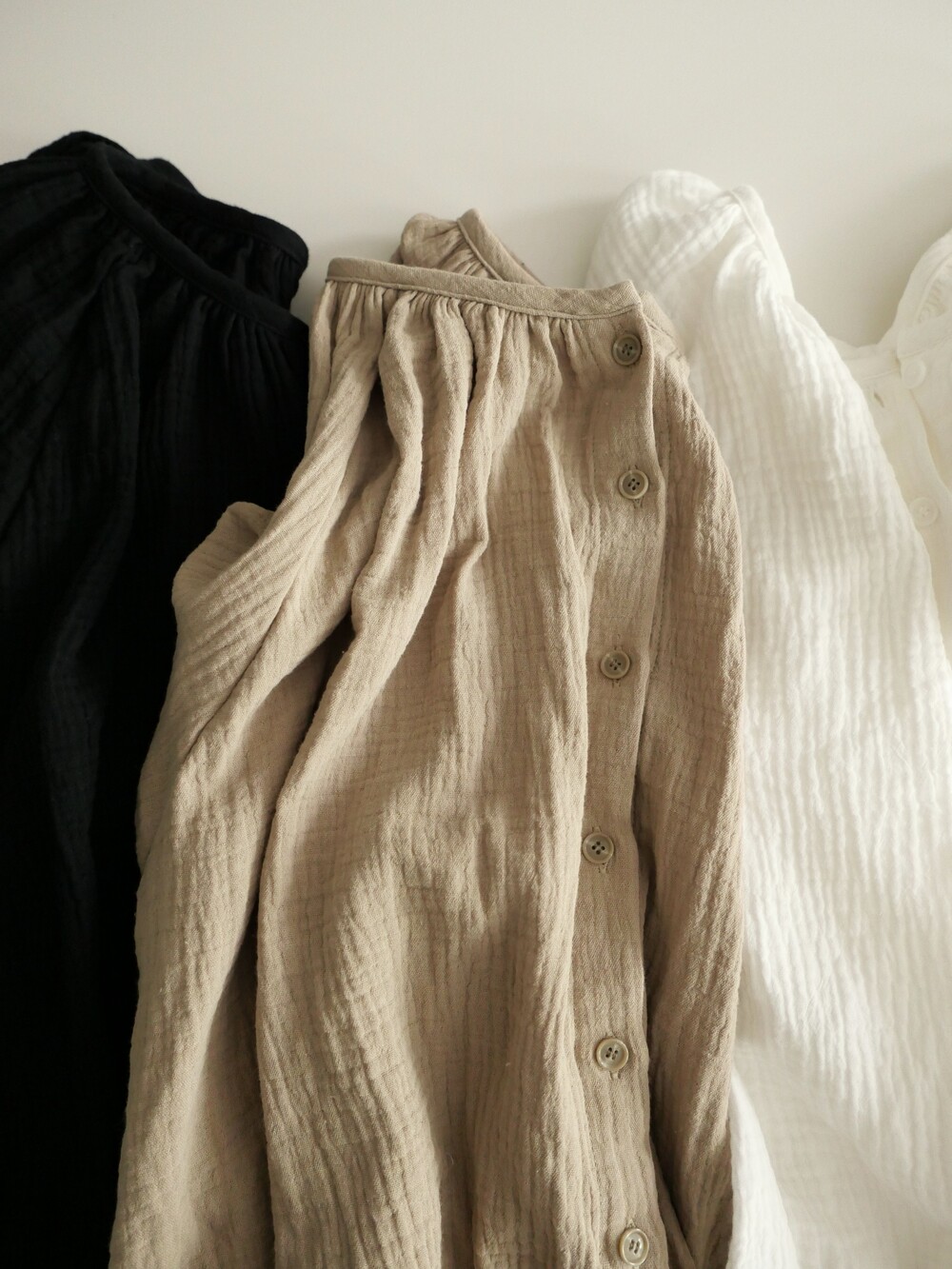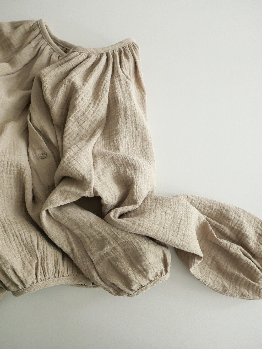 자연스러운 주름이 더해진 부드러운 거즈 원단은