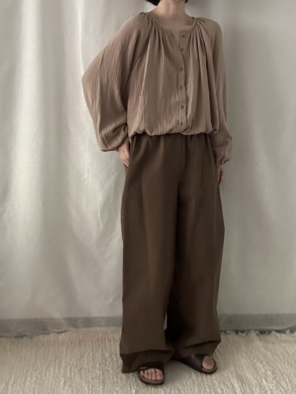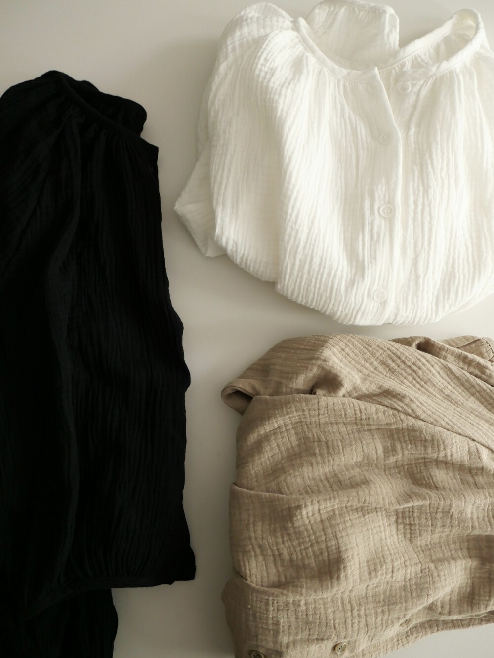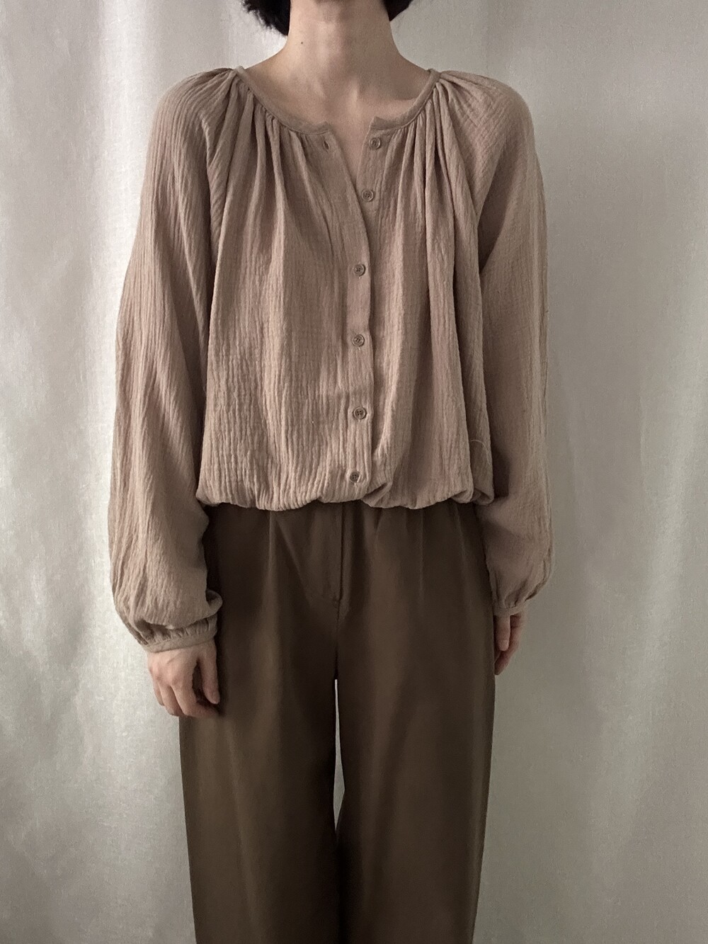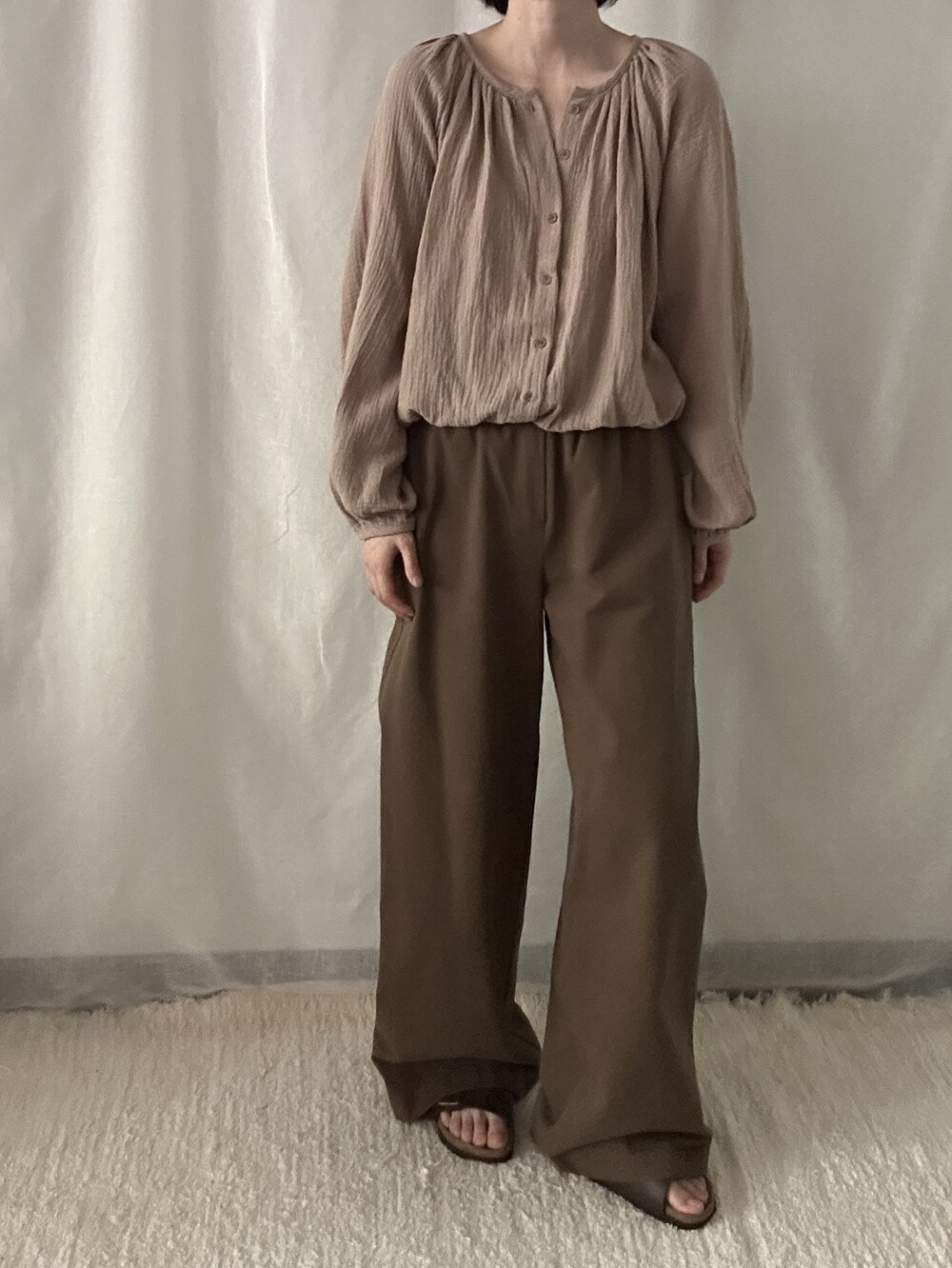 자연스러운 주름이 더해진 부드러운 거즈 원단은