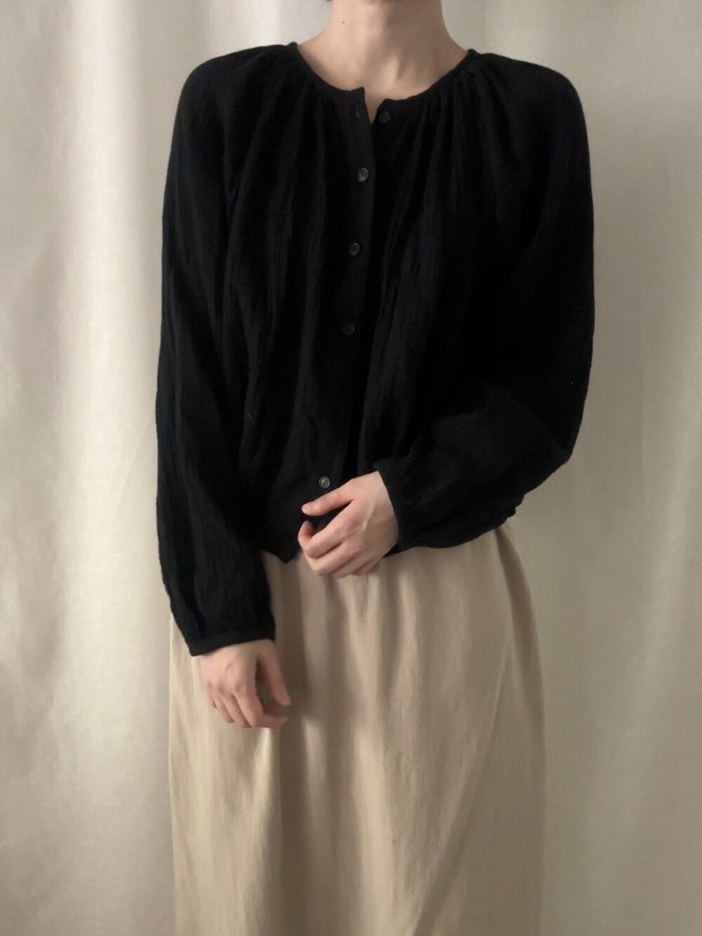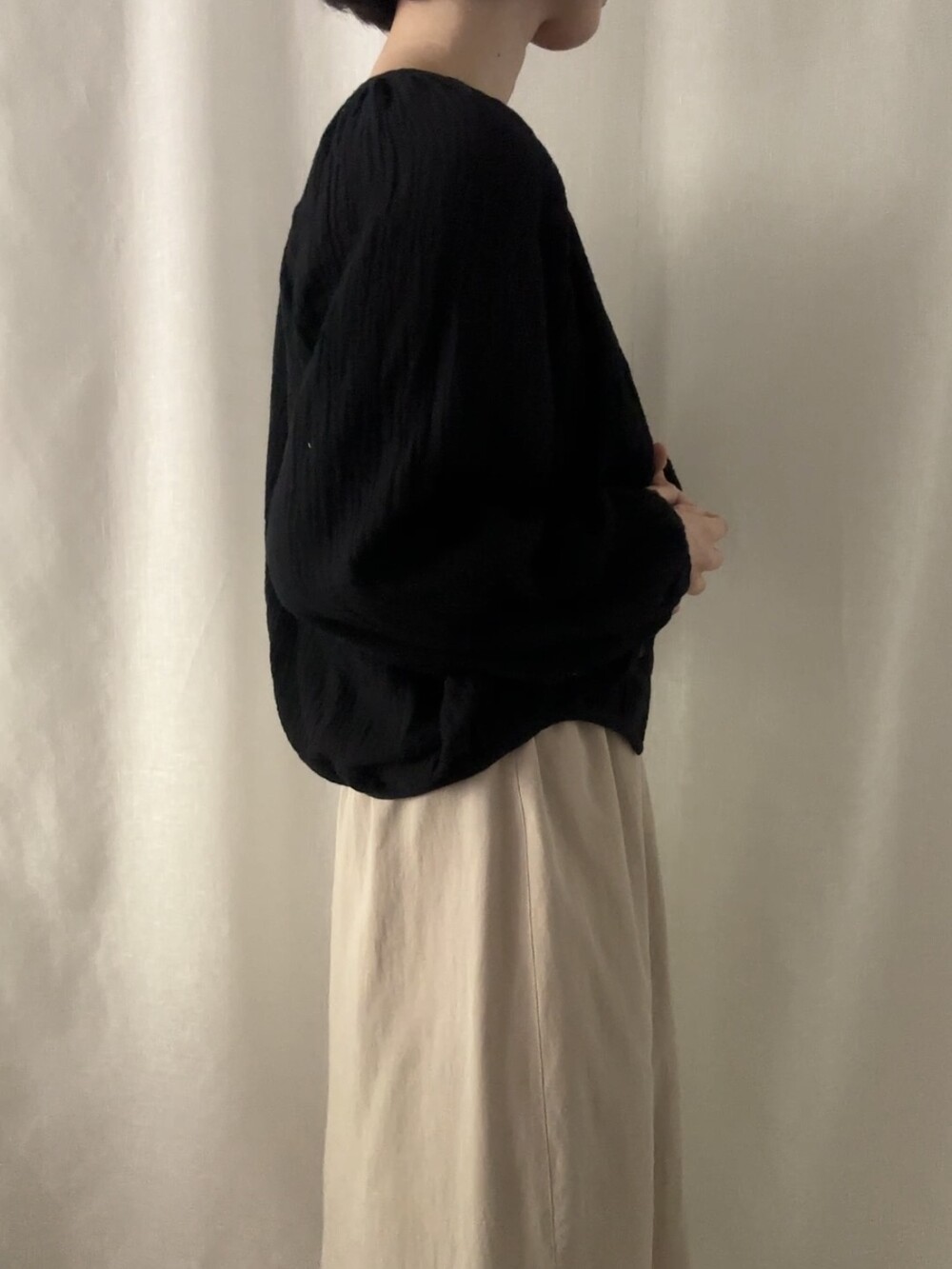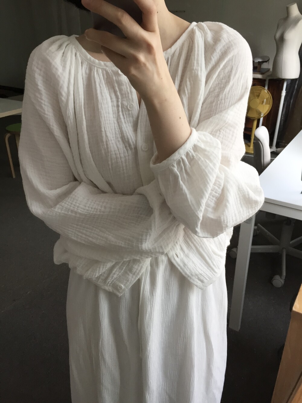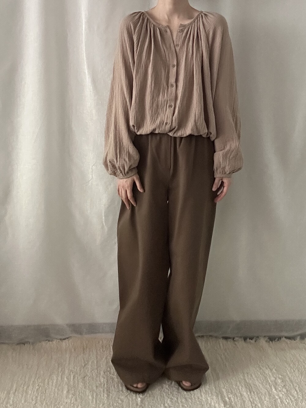 자연스러운 주름이 더해진 부드러운 거즈 원단은