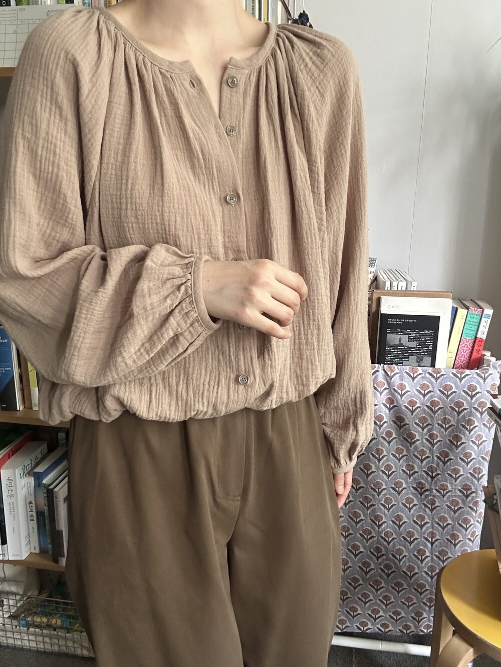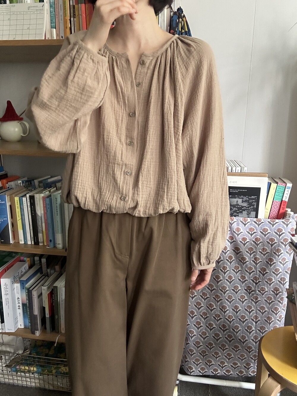 이중 요루 거즈 블라우스입니다.