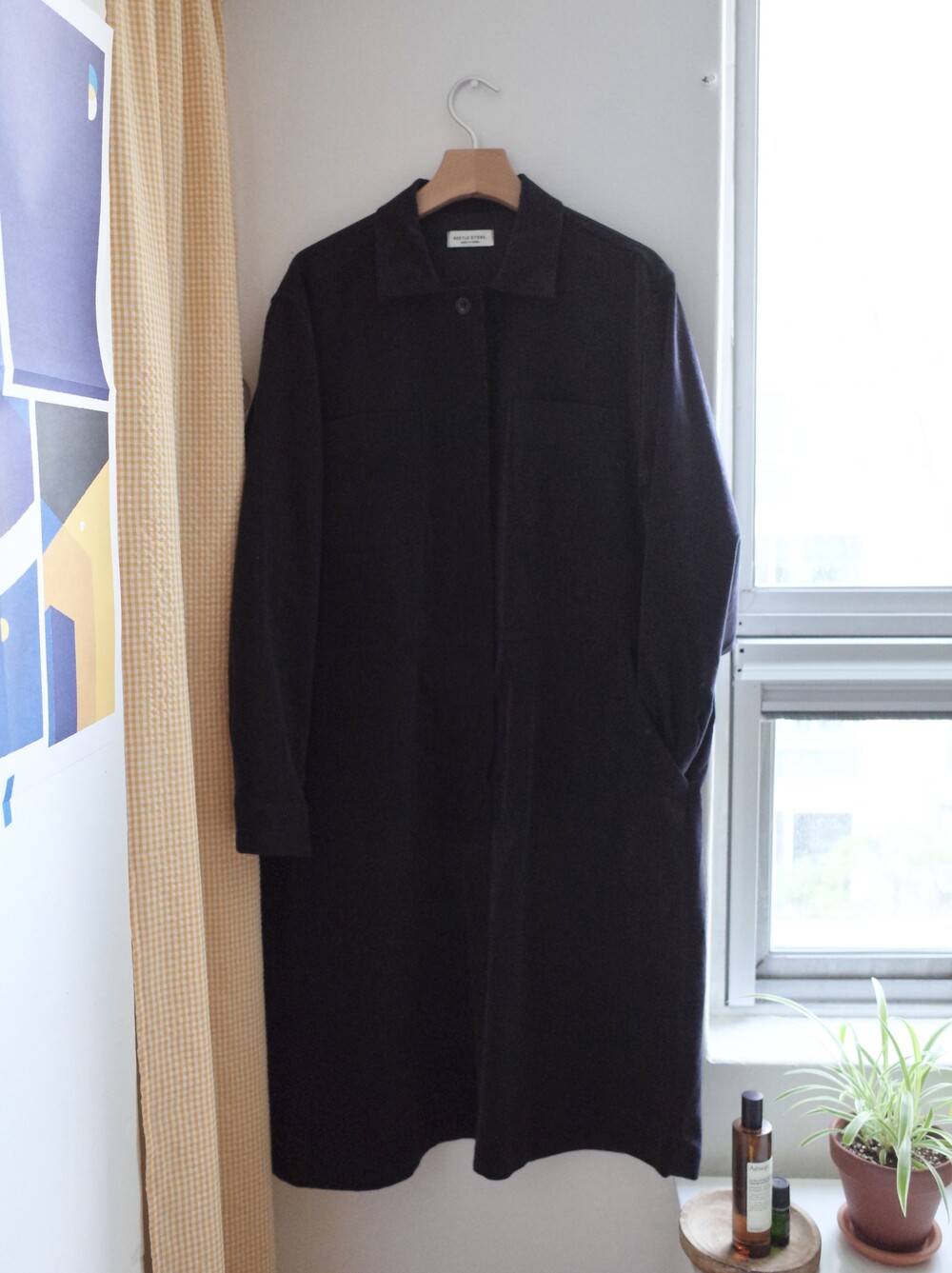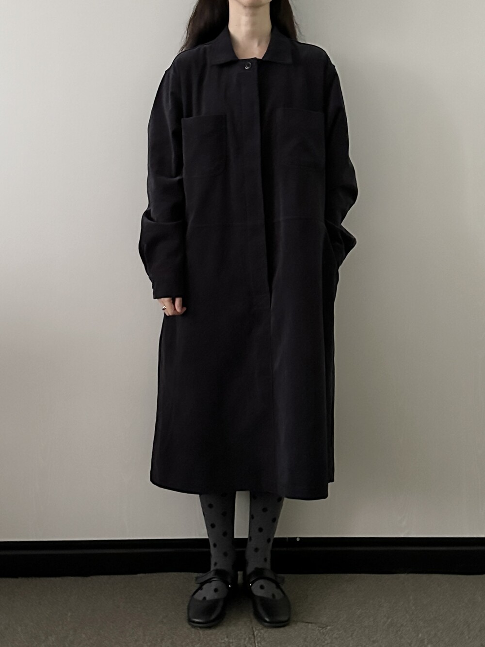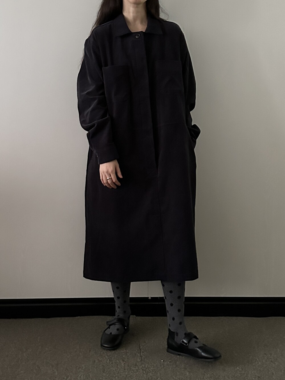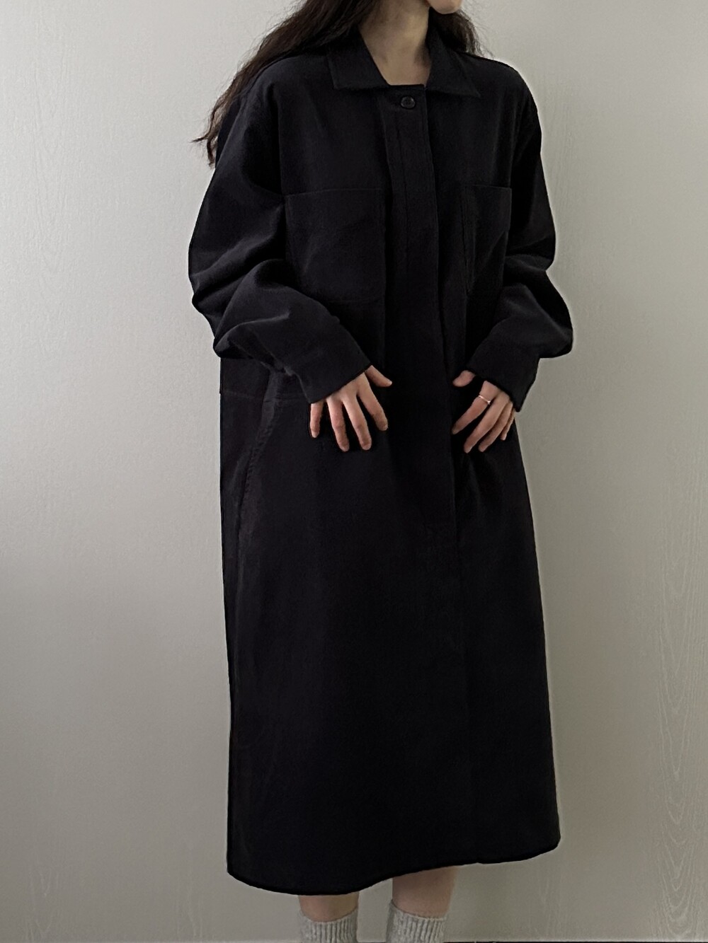 베이직하고 심플한 디자인에 절개 라인과 포켓으로 포인트를 주고 히든 버튼으로 깔끔하게 마무리한 제품입니다.