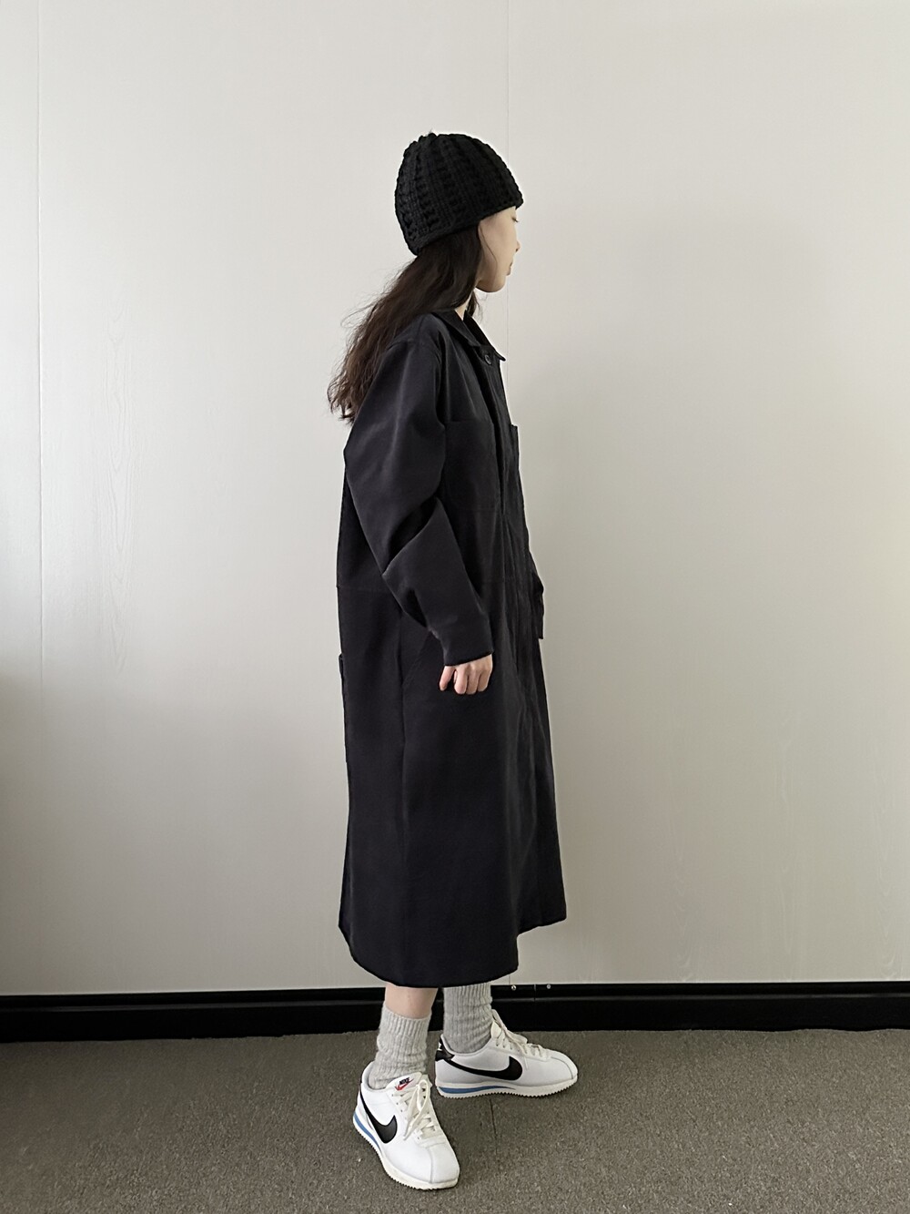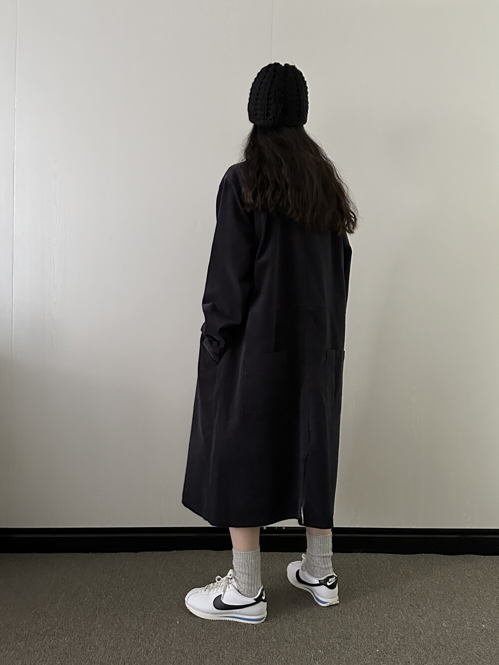 키 160 기준 종아리 중간쯤 오는 길이감으로 키가 아담한 분들이 착용해도 좋습니다.