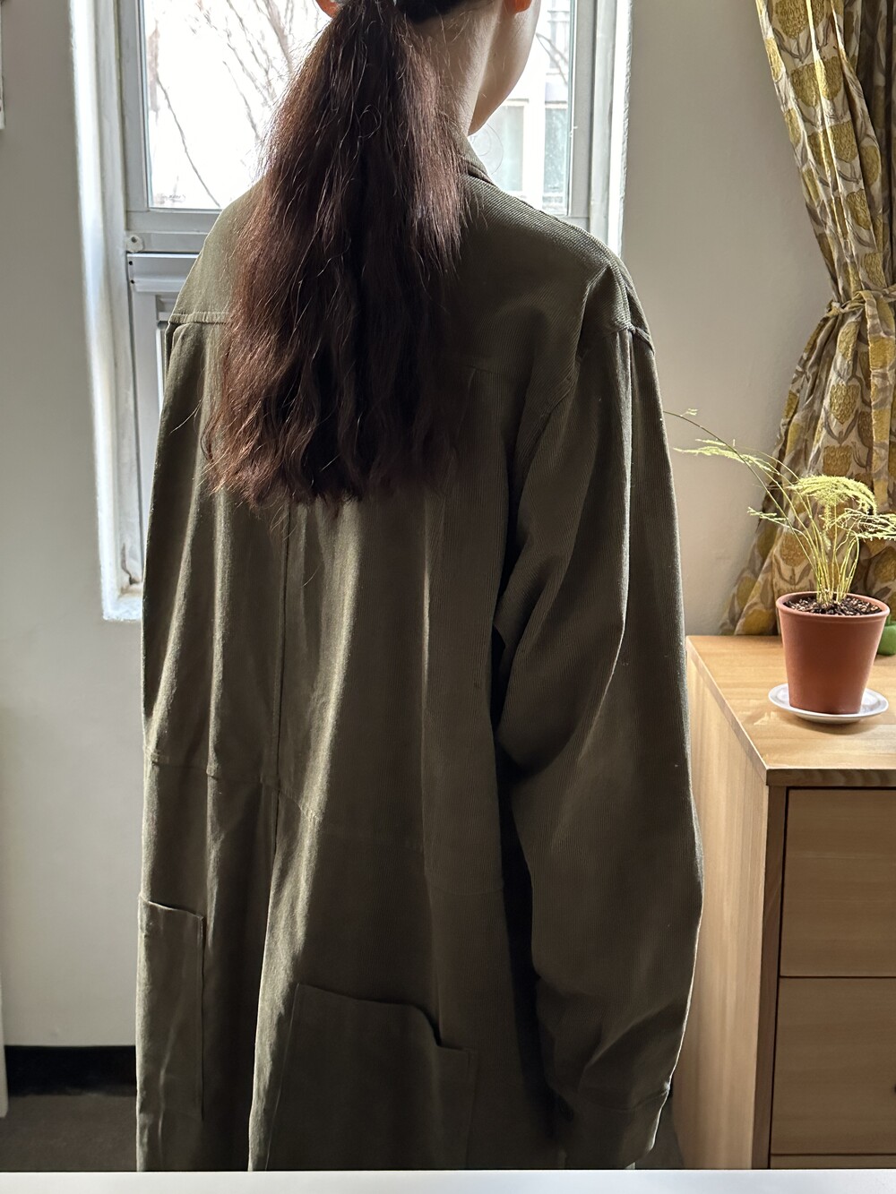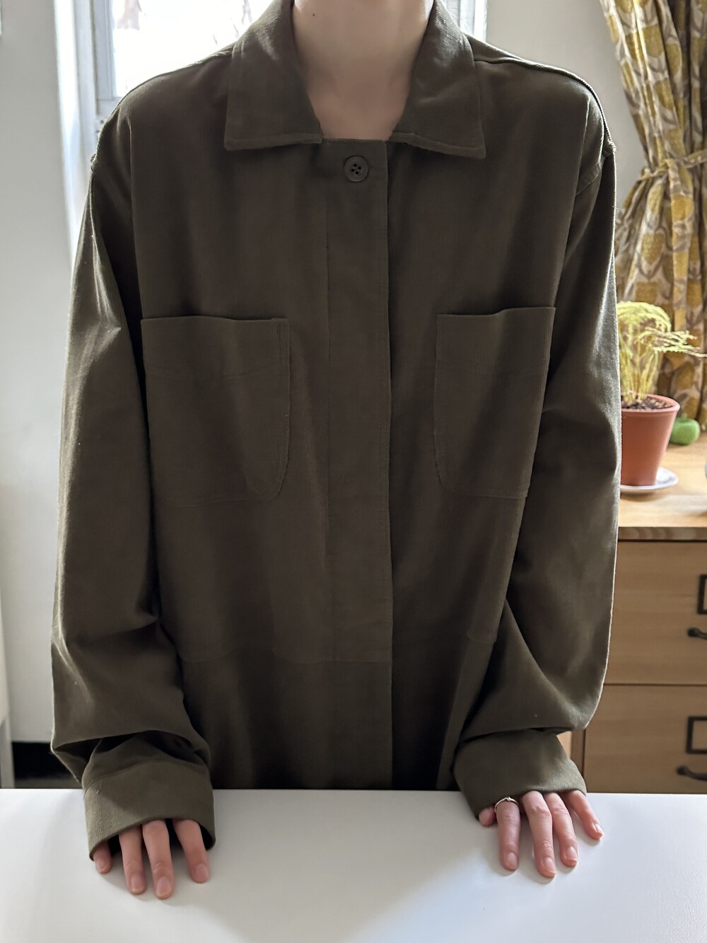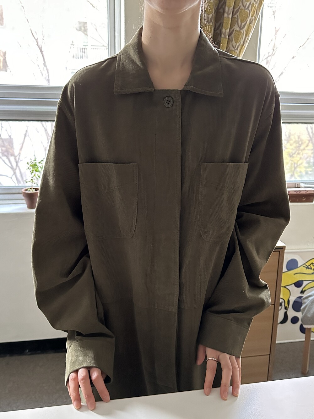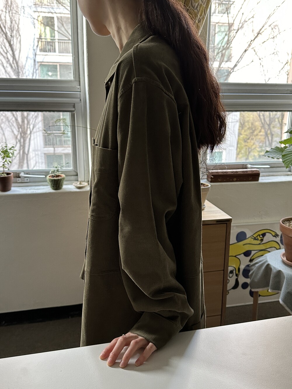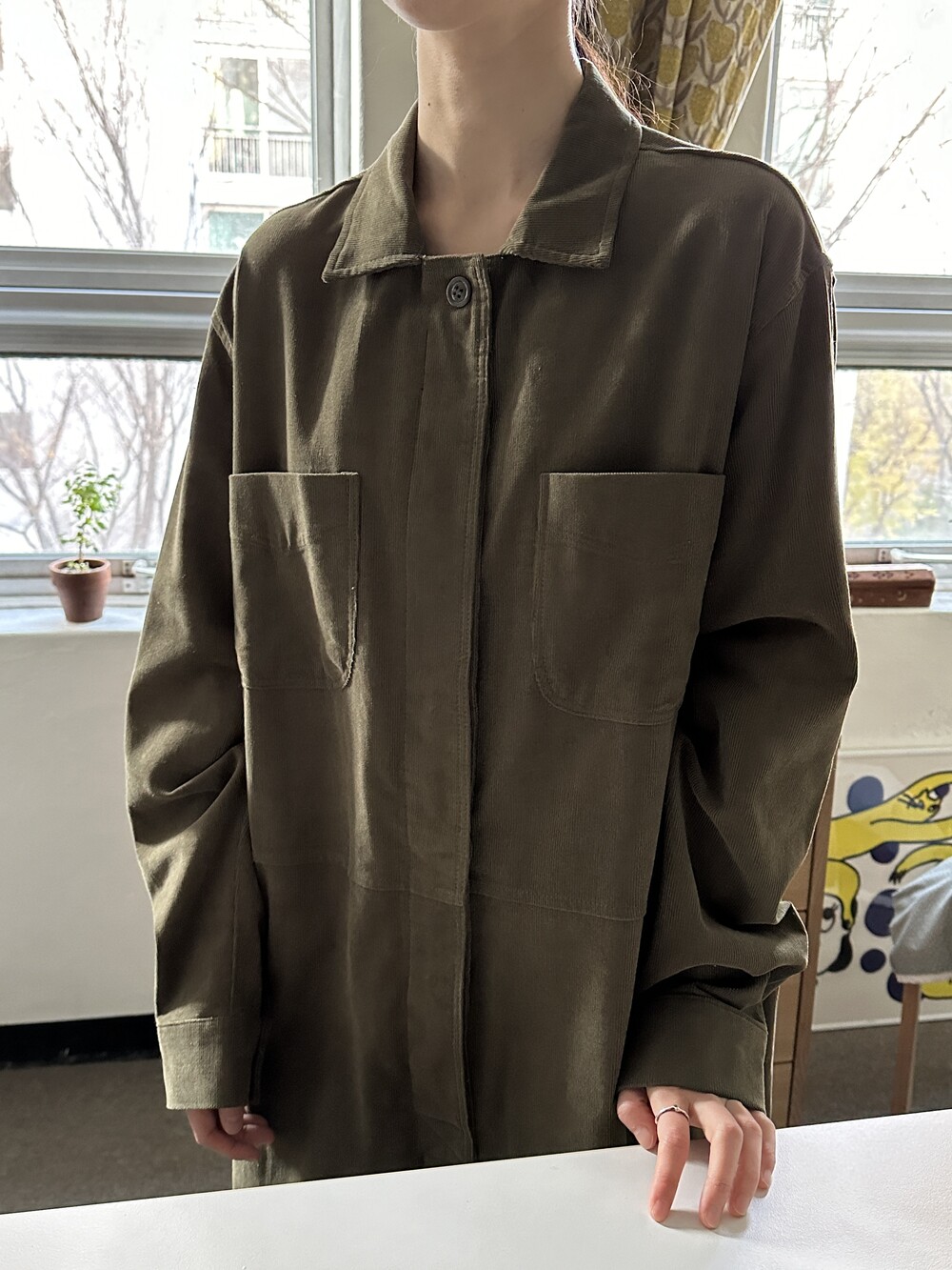 오버핏으로 사이즈가 여유 있어 티셔츠나 폴라티와 레이어드해도 좋습니다.