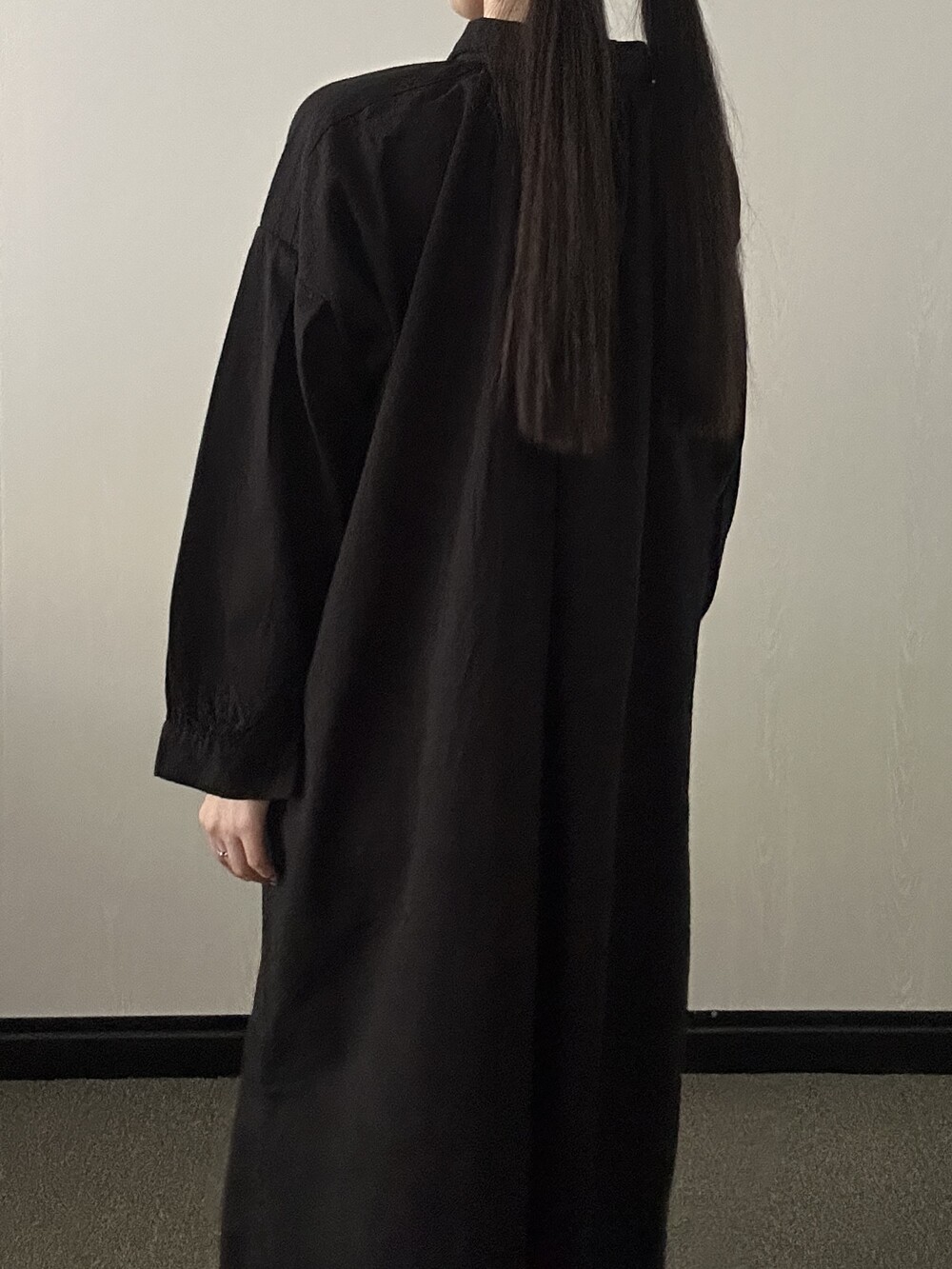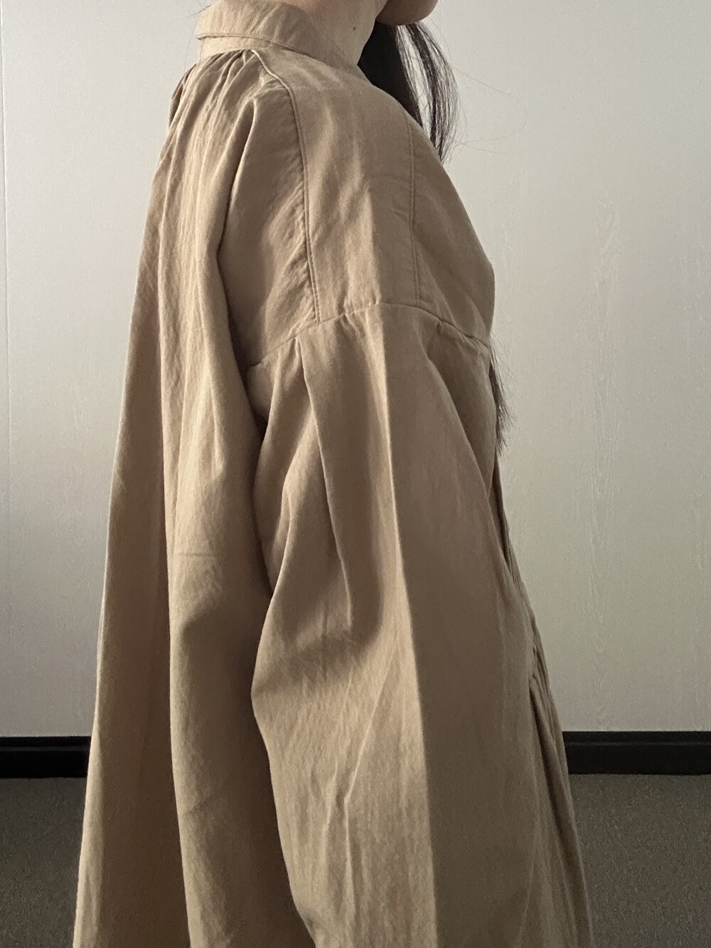 앞 , 뒤 기장이 다르며 셔츠형으로 트임이 있어 팬츠와 레이어드도 좋습니다.