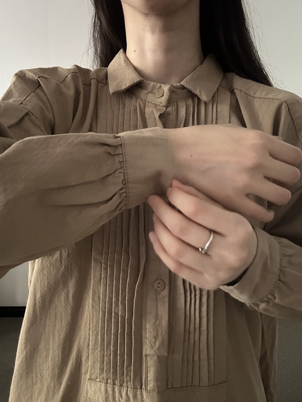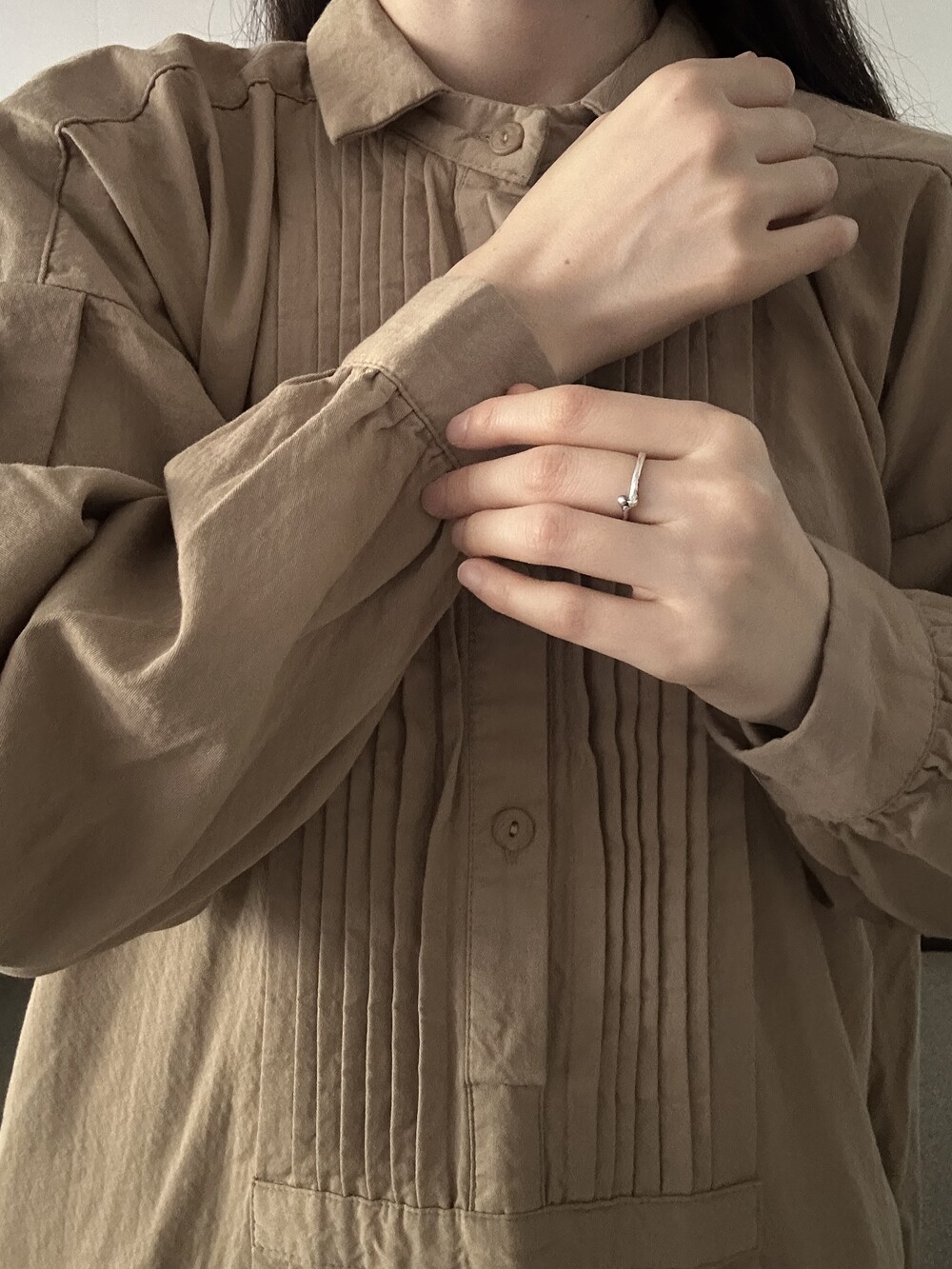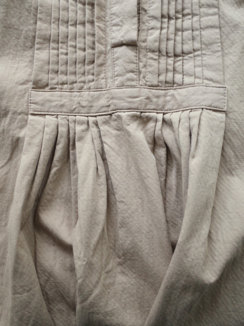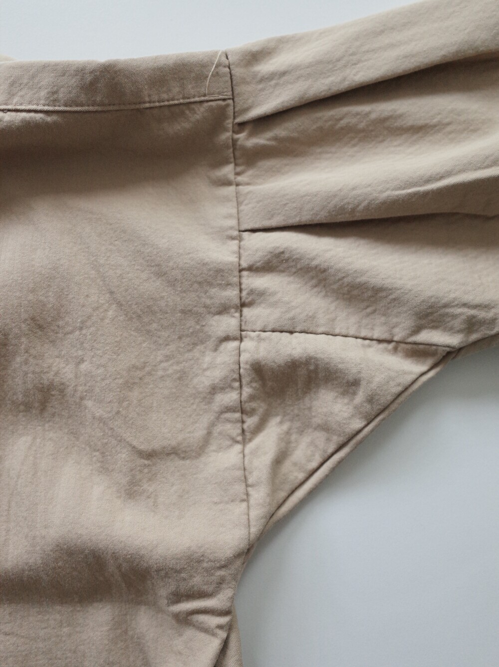 어깨와 소매 절개 라인과 ,핀턱 디테일 , 소매와 넥라인에 잡힌 셔링 등 옛날 유럽 슈미즈 드레스를 떠올리게 하는 패턴이에요.