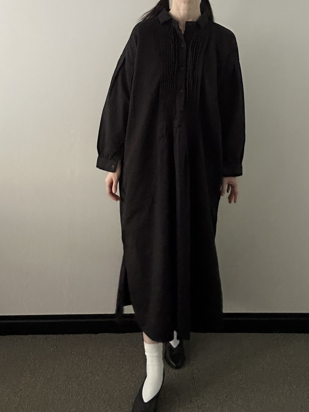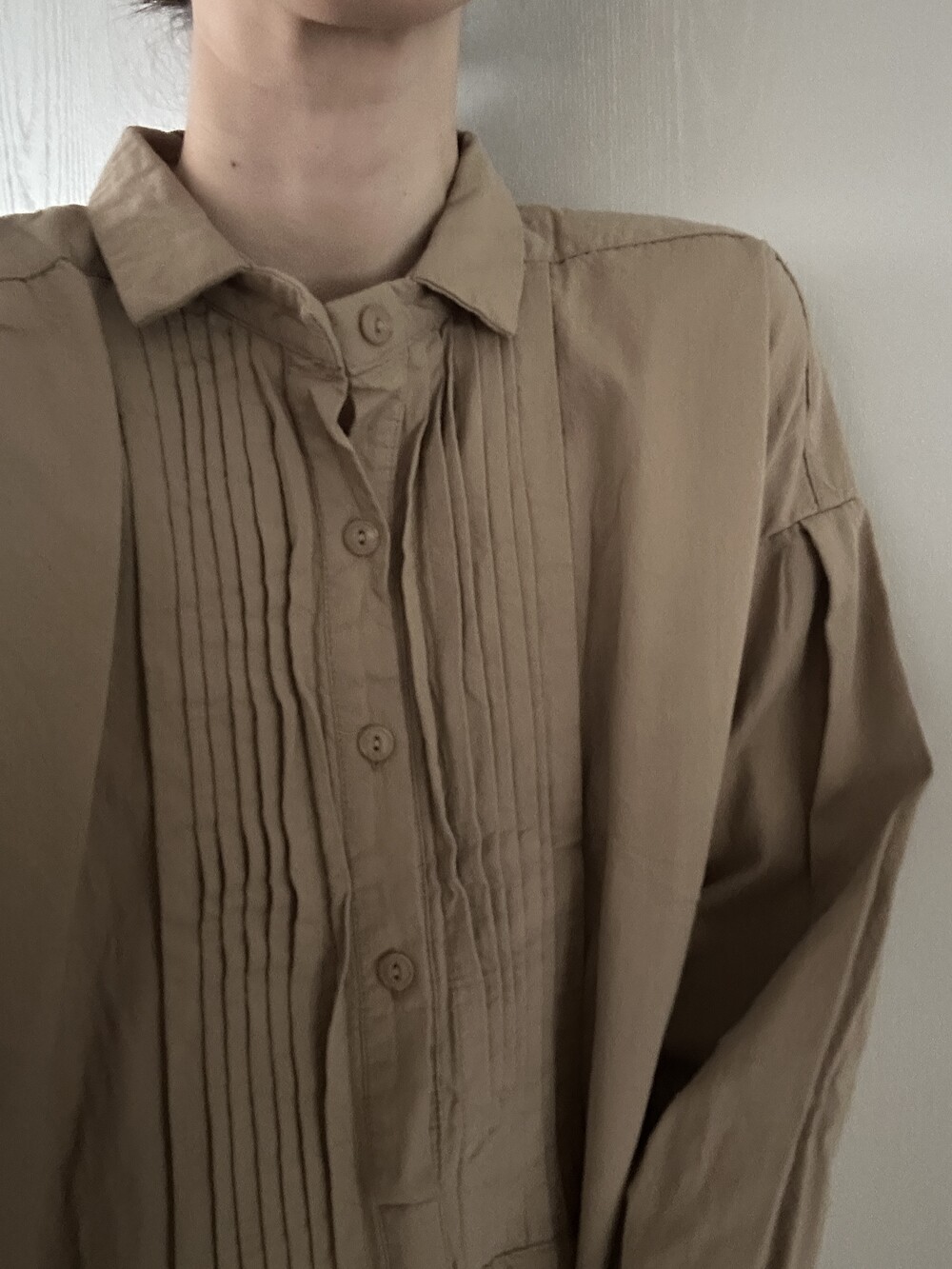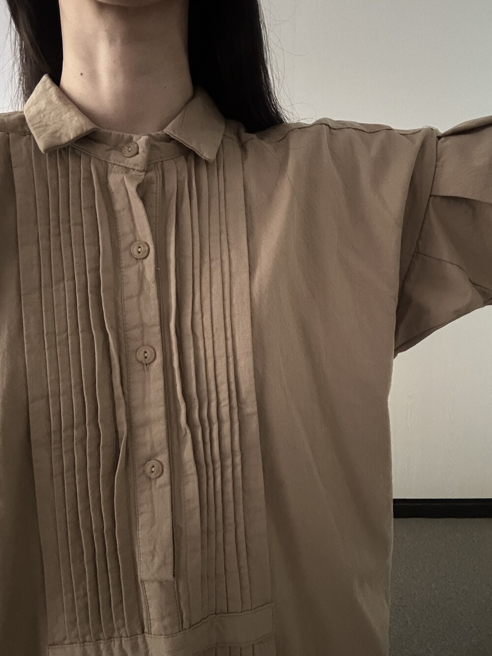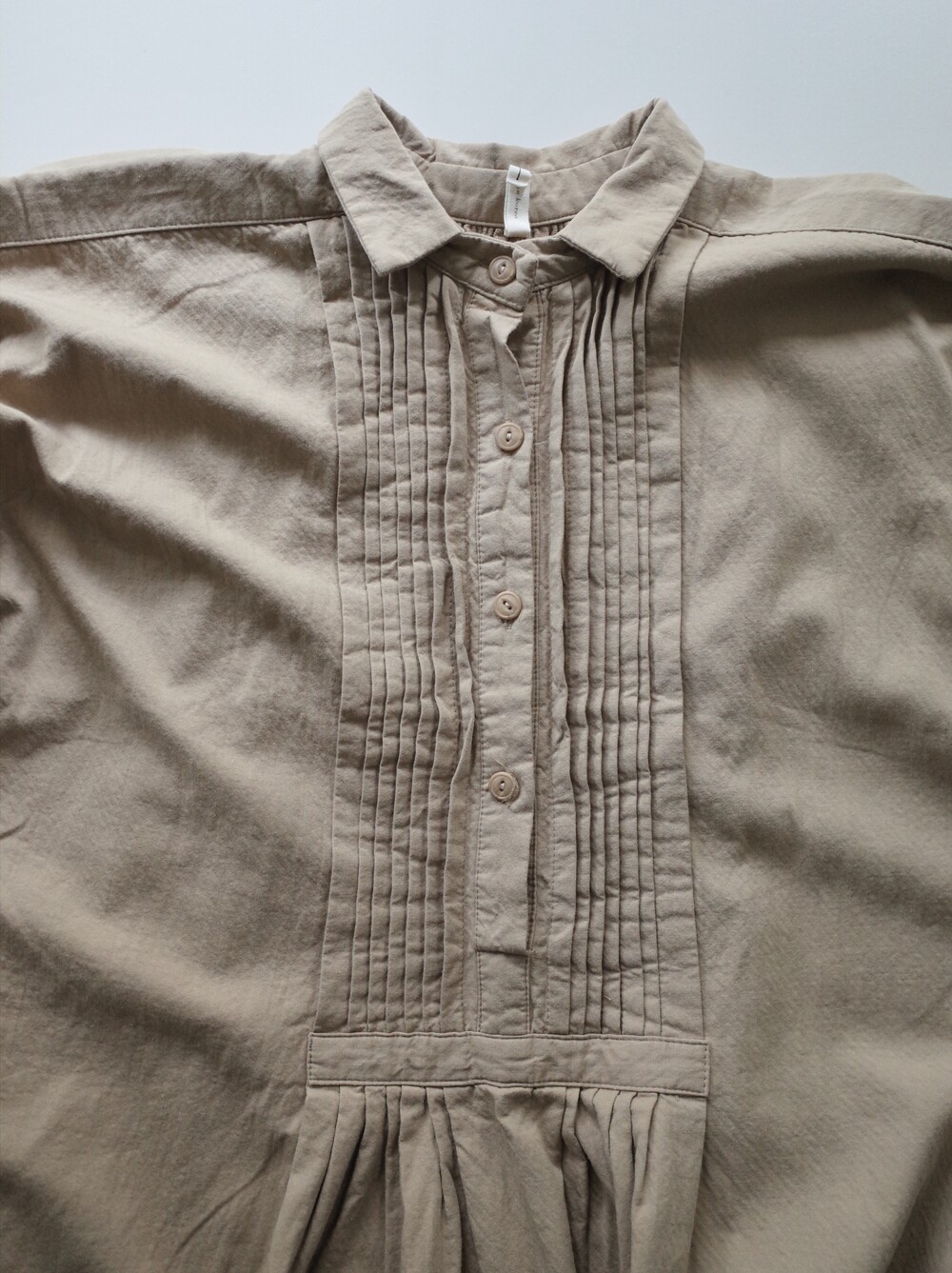 어깨와 소매 절개 라인과 ,핀턱 디테일 , 소매와 넥라인에 잡힌 셔링 등 옛날 유럽 슈미즈 드레스를 떠올리게 하는 패턴이에요.