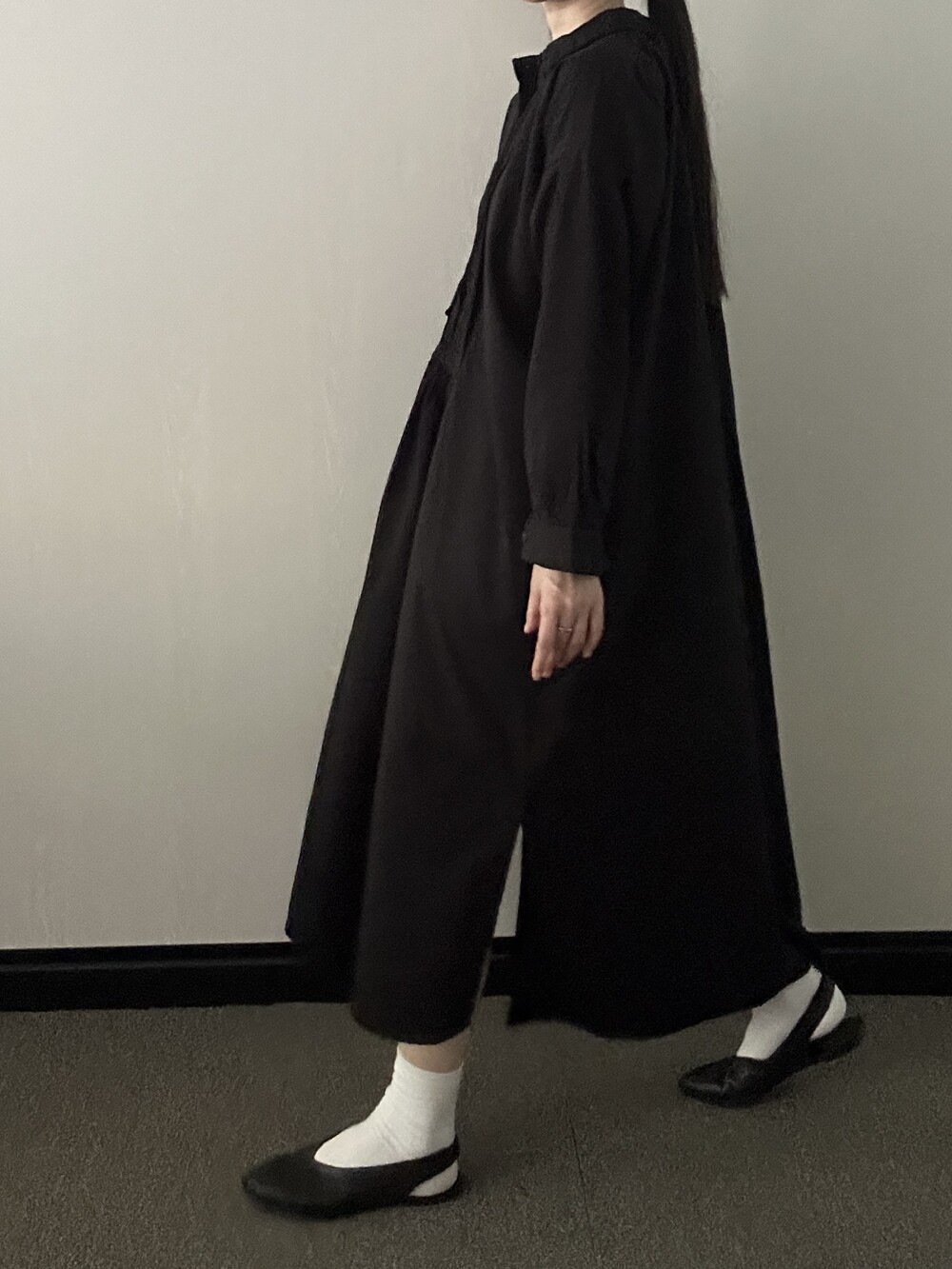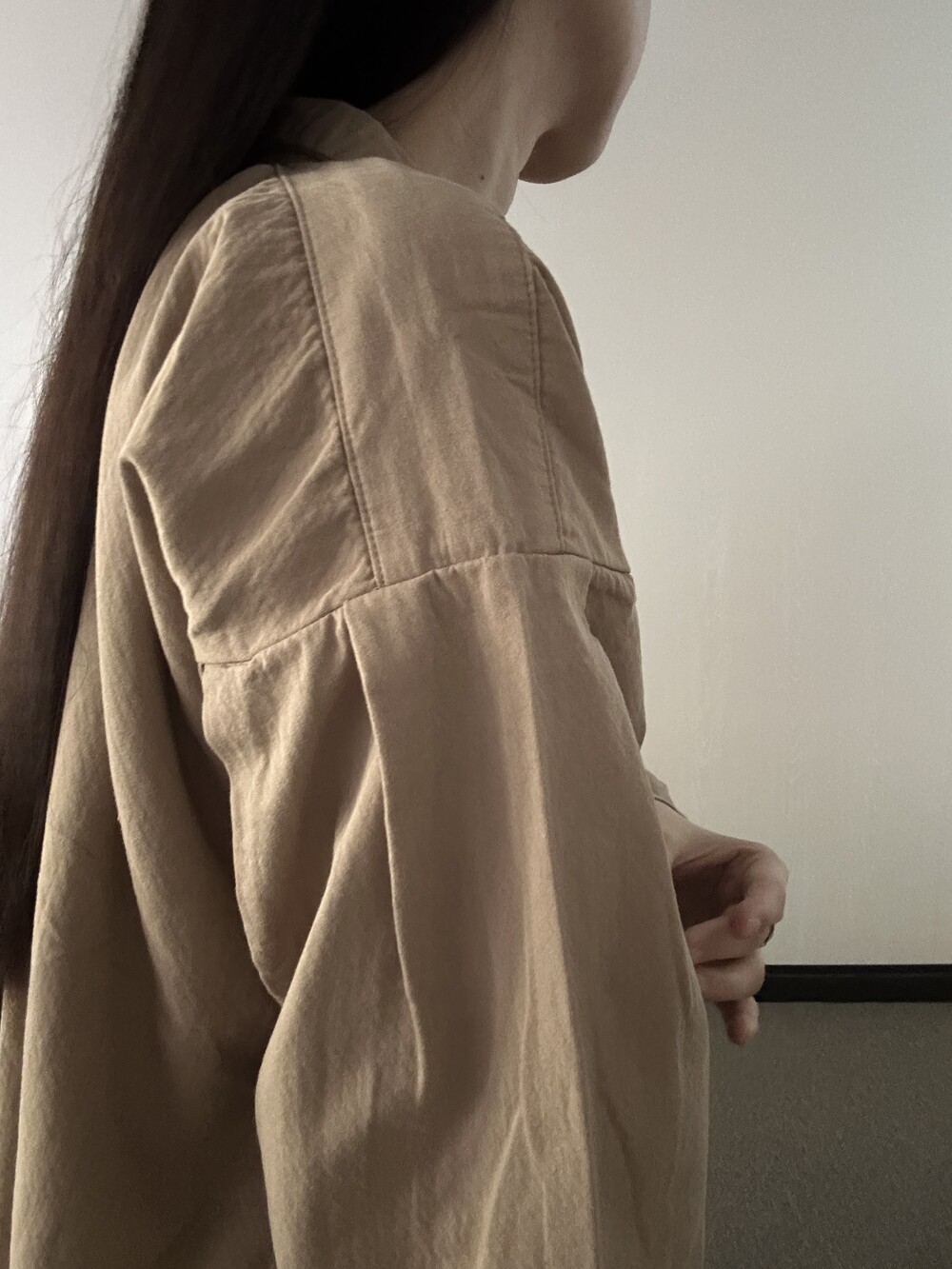 넥 셔링으로 전체적으로 에이라인으로 떨어지는 핏이 정말 예쁘고 전 특히 어깨에 절개를 준 패턴 디자인이 정말 멋스러웠어요.