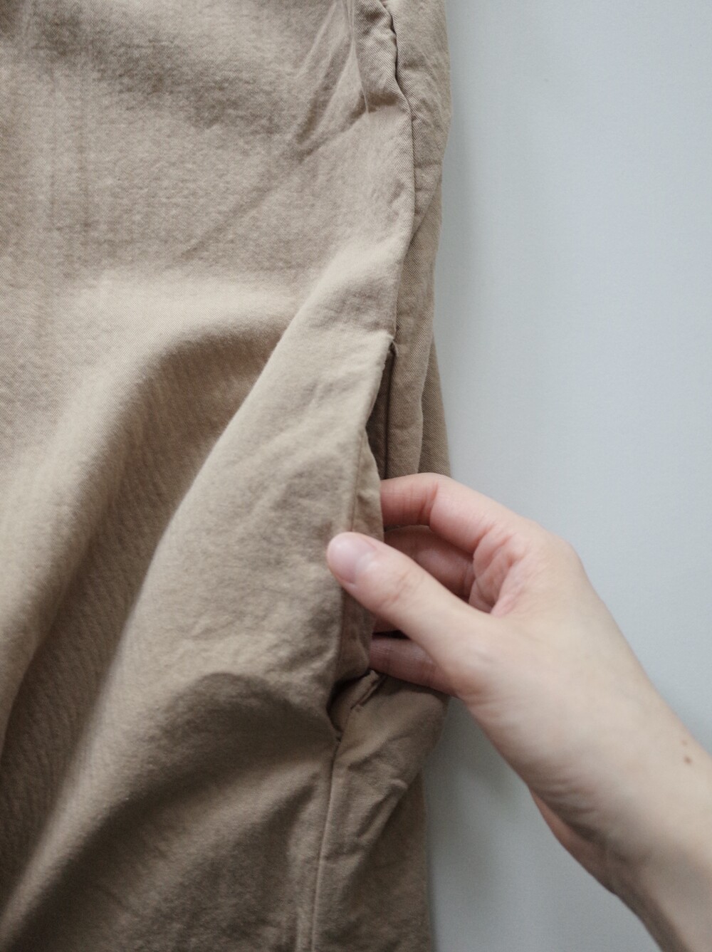 자연스럽게 구김, 주름이 느껴지는 소재입니다.