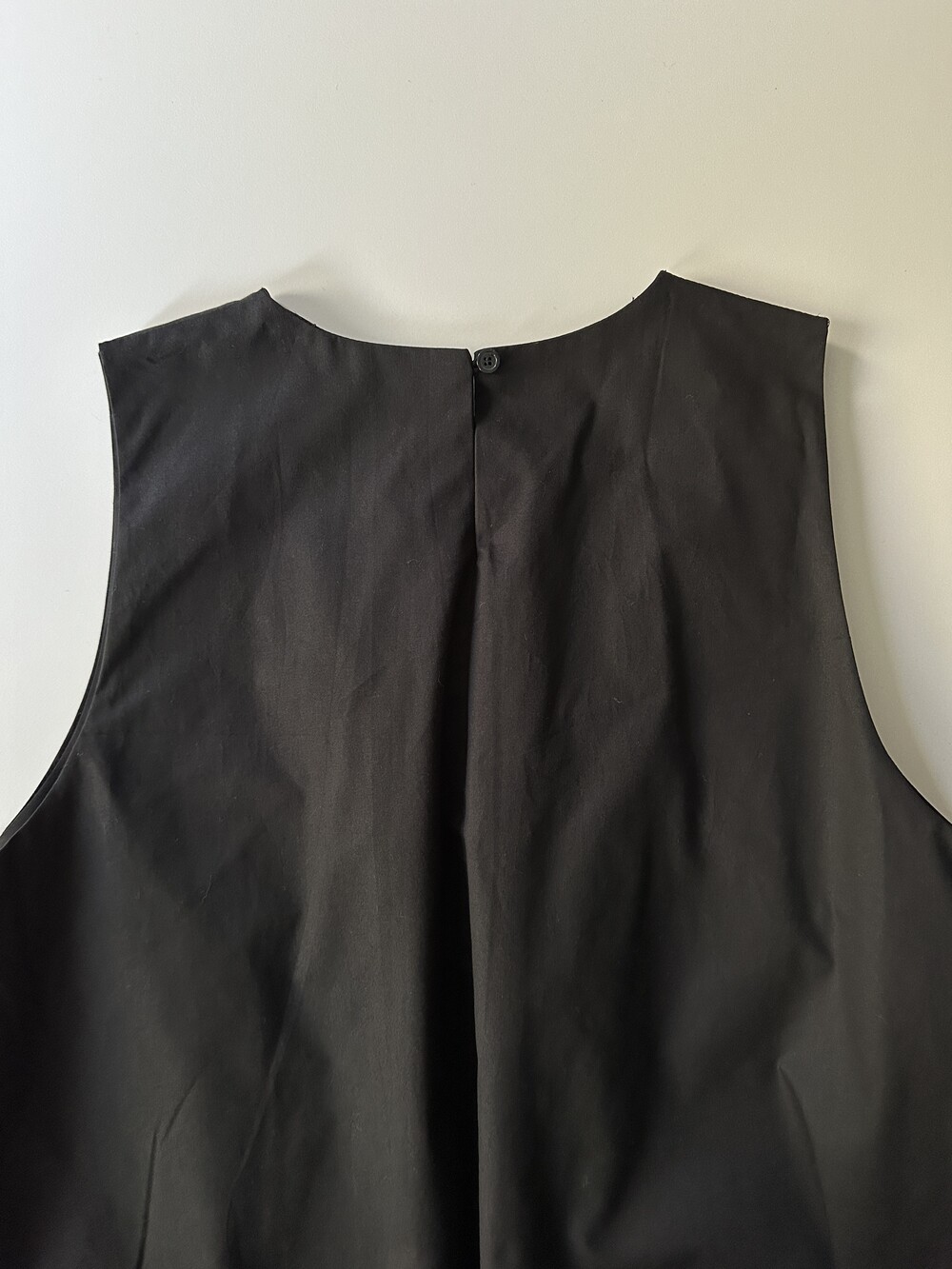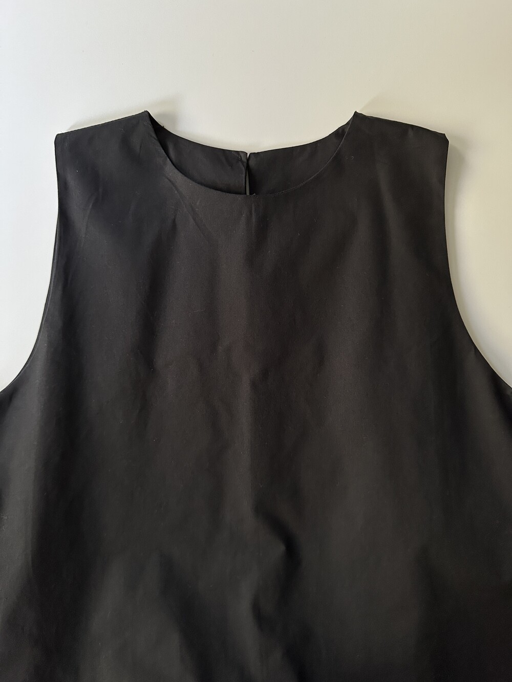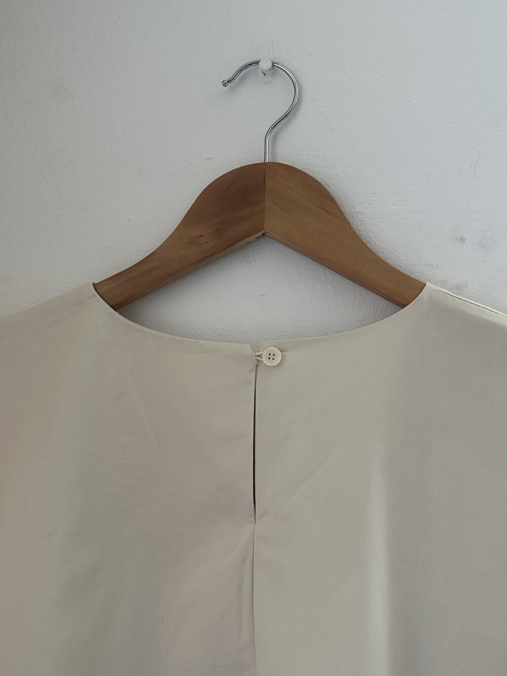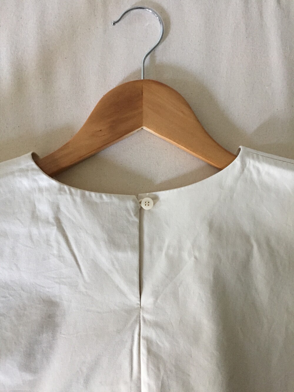 심플한 라운드 넥에 넥 뒷부분에 버튼으로 오픈 , 클로징이 가능합니다.