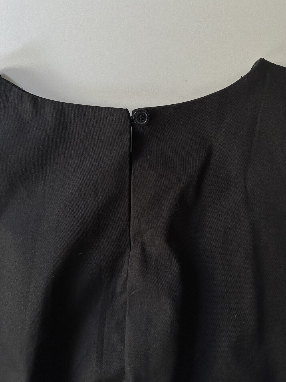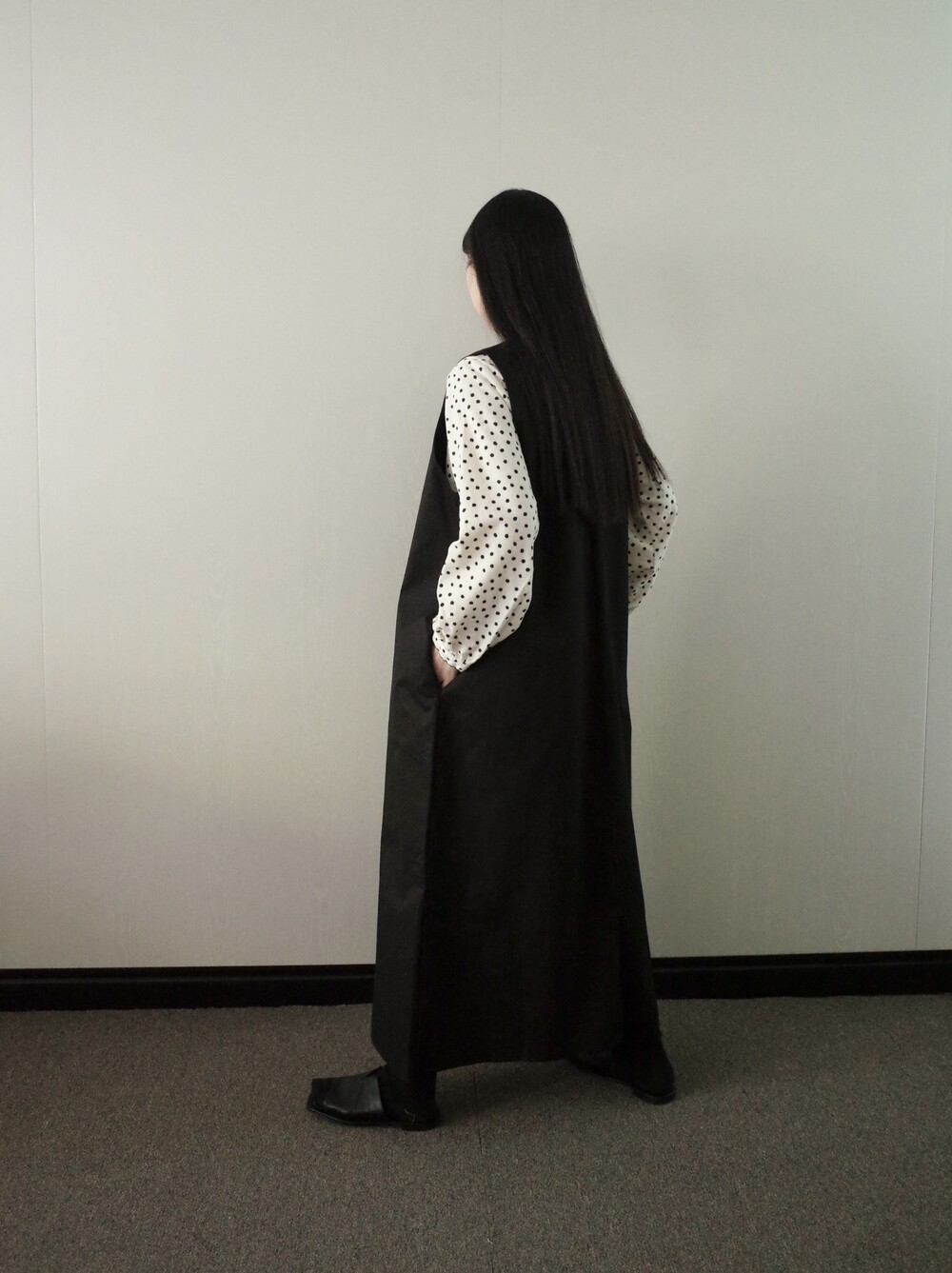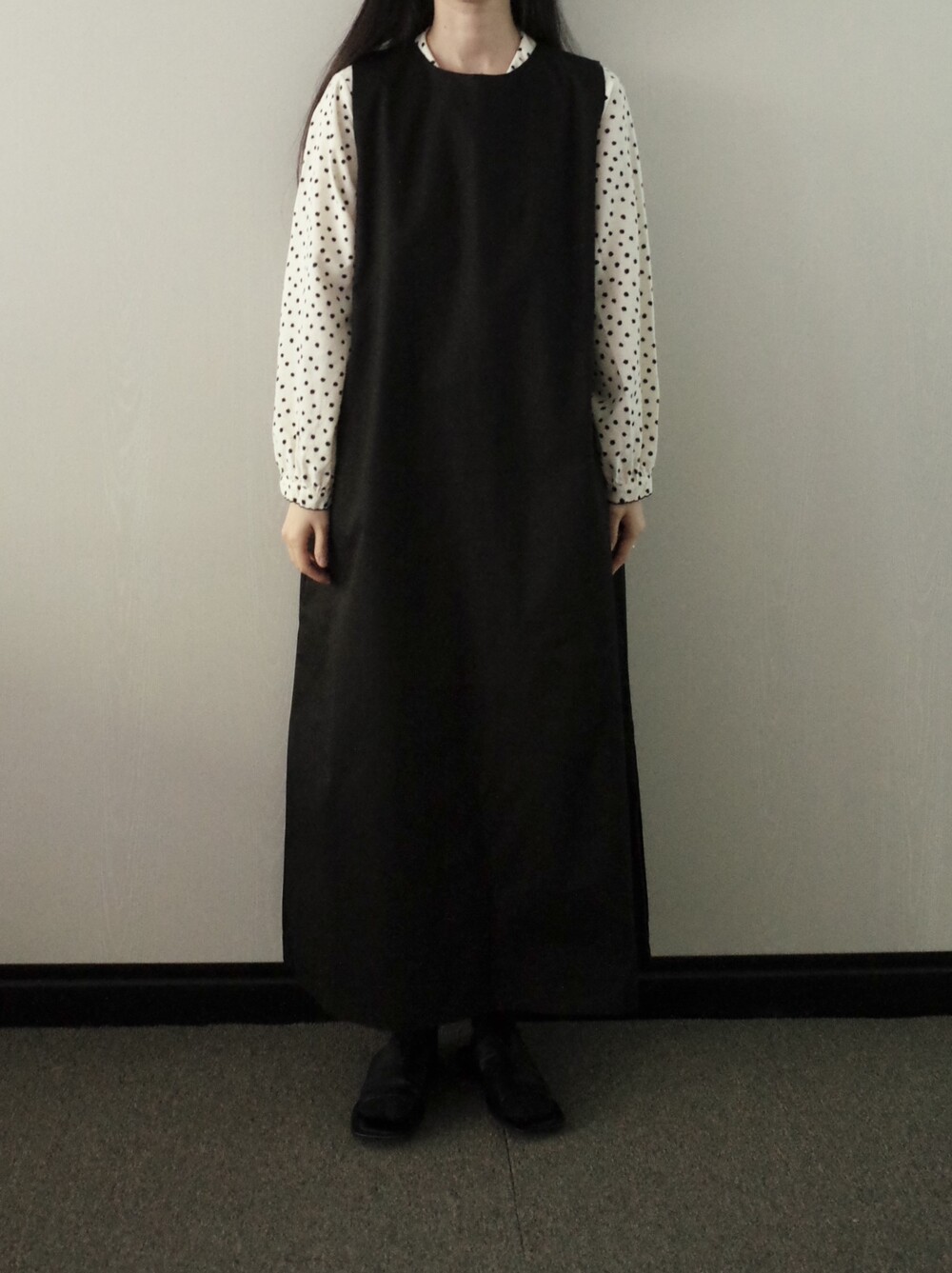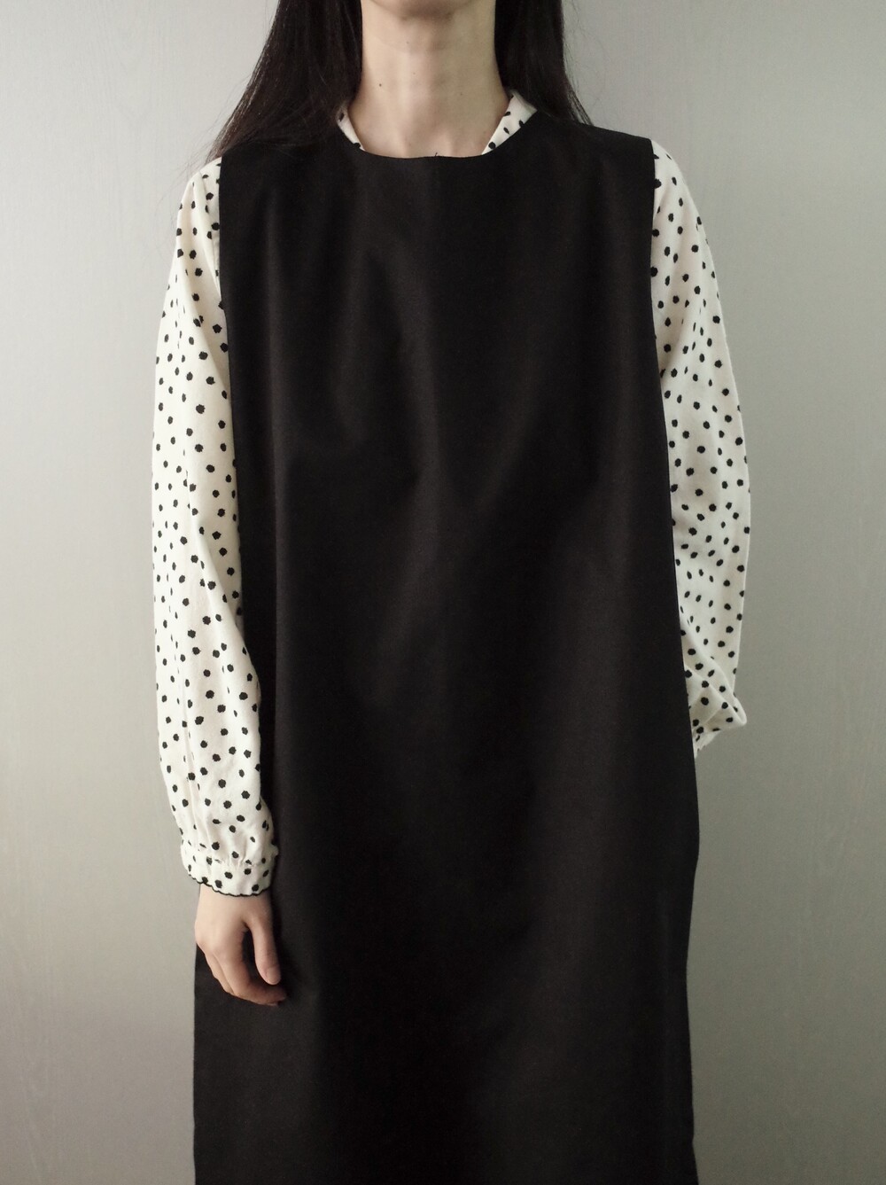 심플한 라운드 넥에 넥 뒷부분에 버튼으로 오픈 , 클로징이 가능합니다.