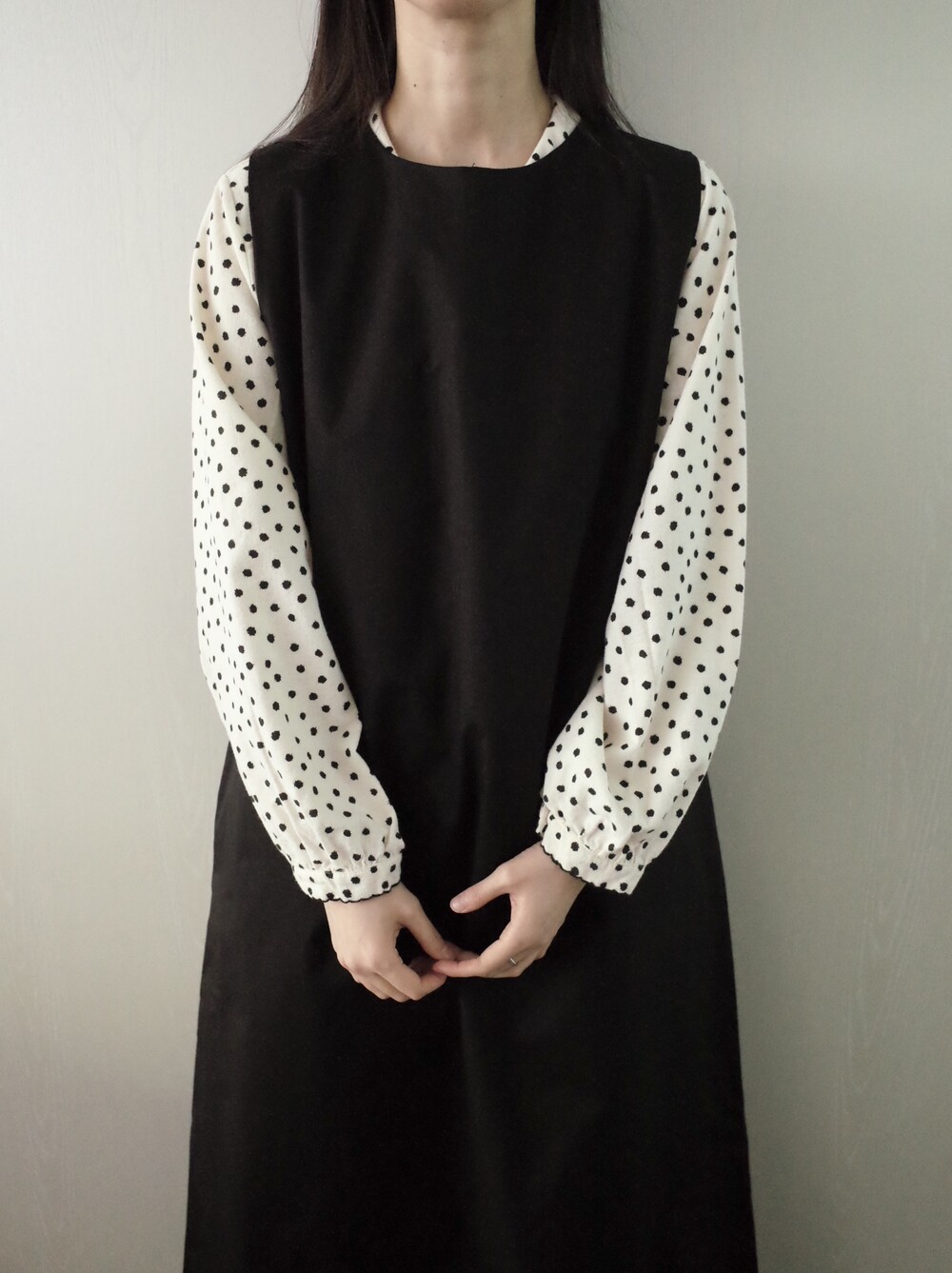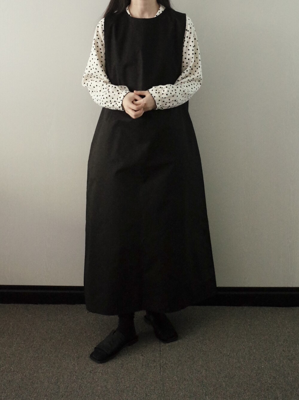 다양한 아이템과 레이어드해서 입기도 하고 위에 가디건을 걸쳐 입기도 좋습니다.