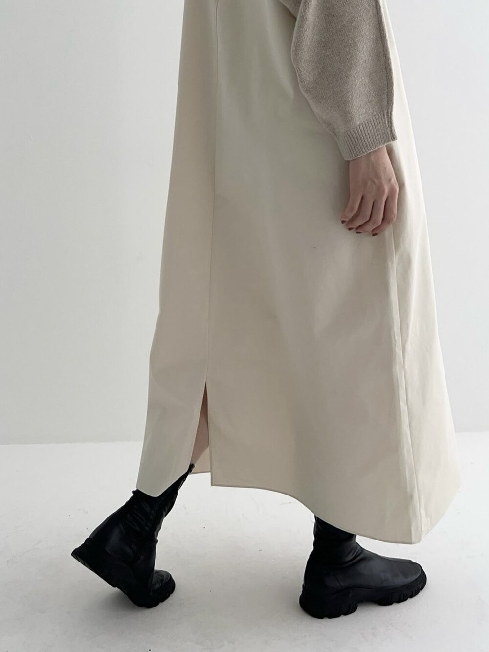 스커트는 과하지 않은 에이라인에 롱 기장으로 뒤트임이 있습니다.