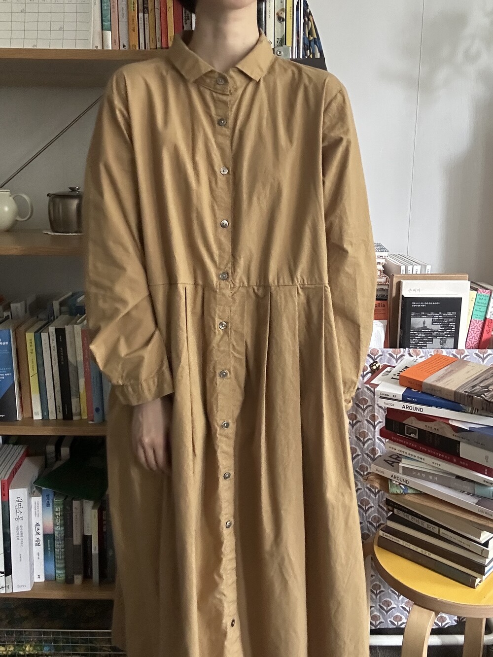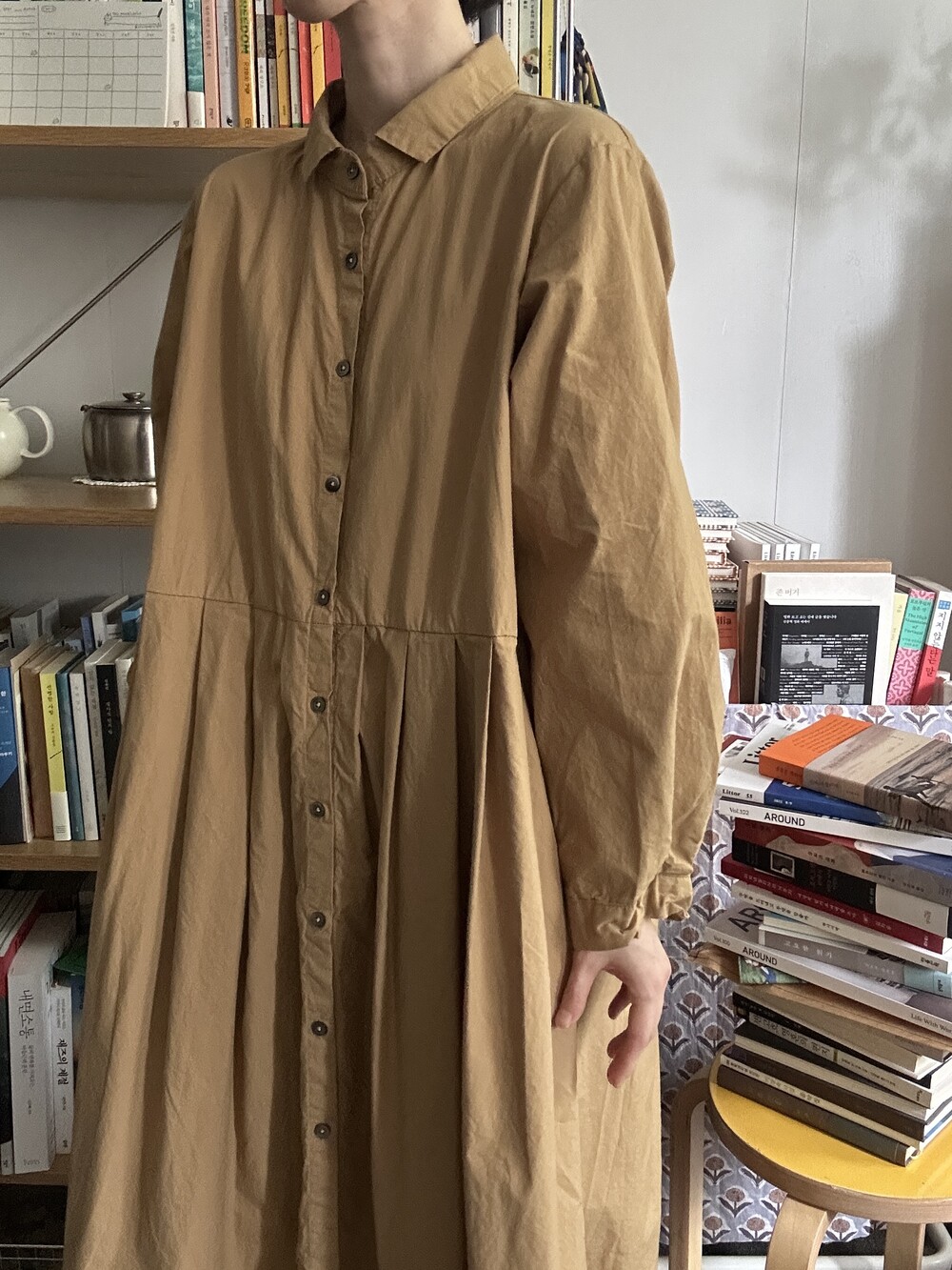 내추럴한 무드가 매력적인 고밀도 워싱 코튼 원피스예요.