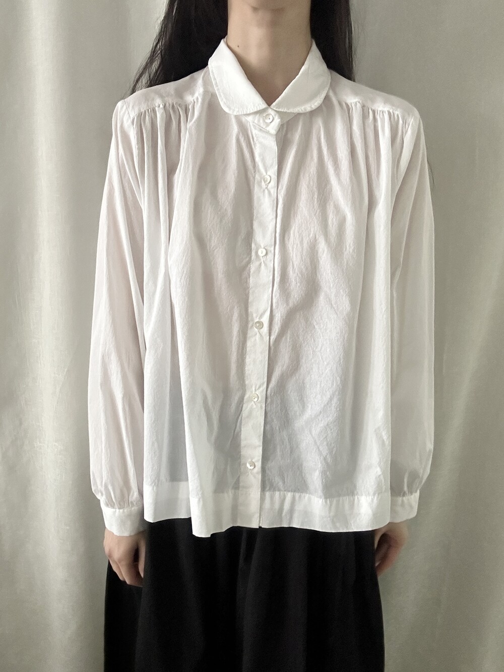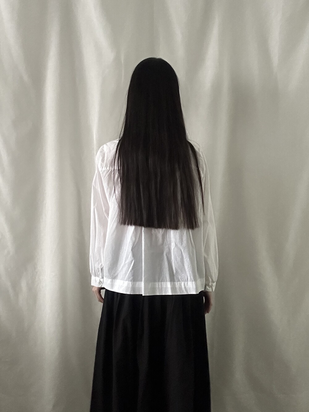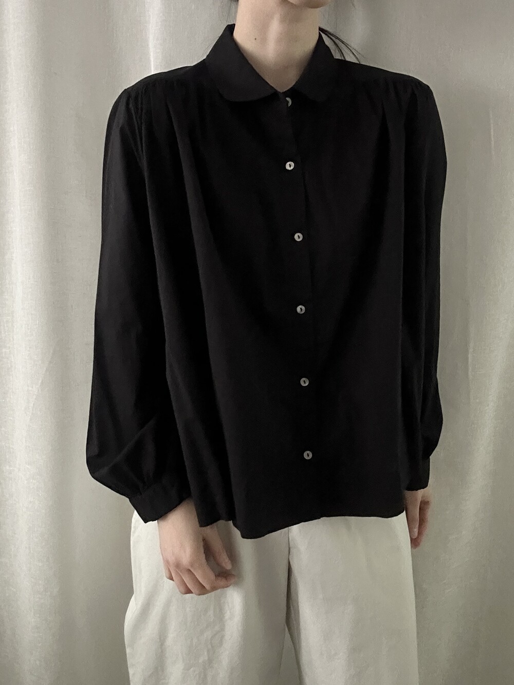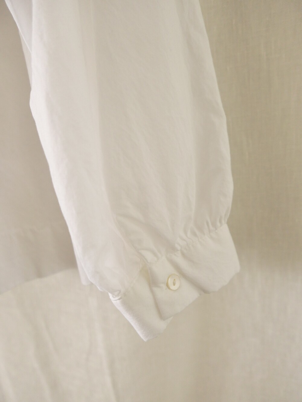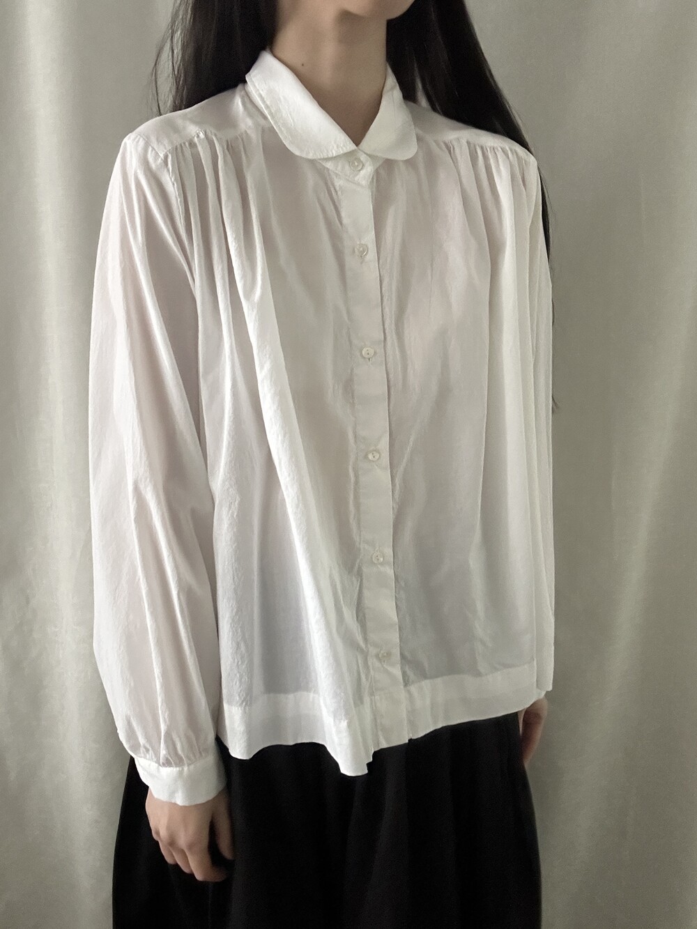 밑단을 넓게 봉제하여 캐주얼한 셔츠 느낌보다 고급스러운 블라우스 느낌을 주며 자개단추, 소매단 셔링까지 디테일과 전체적인 밸런스가 좋은 제품입니다.