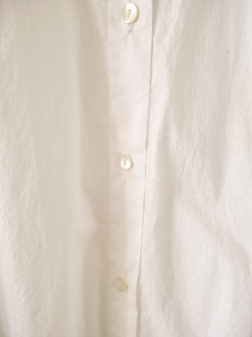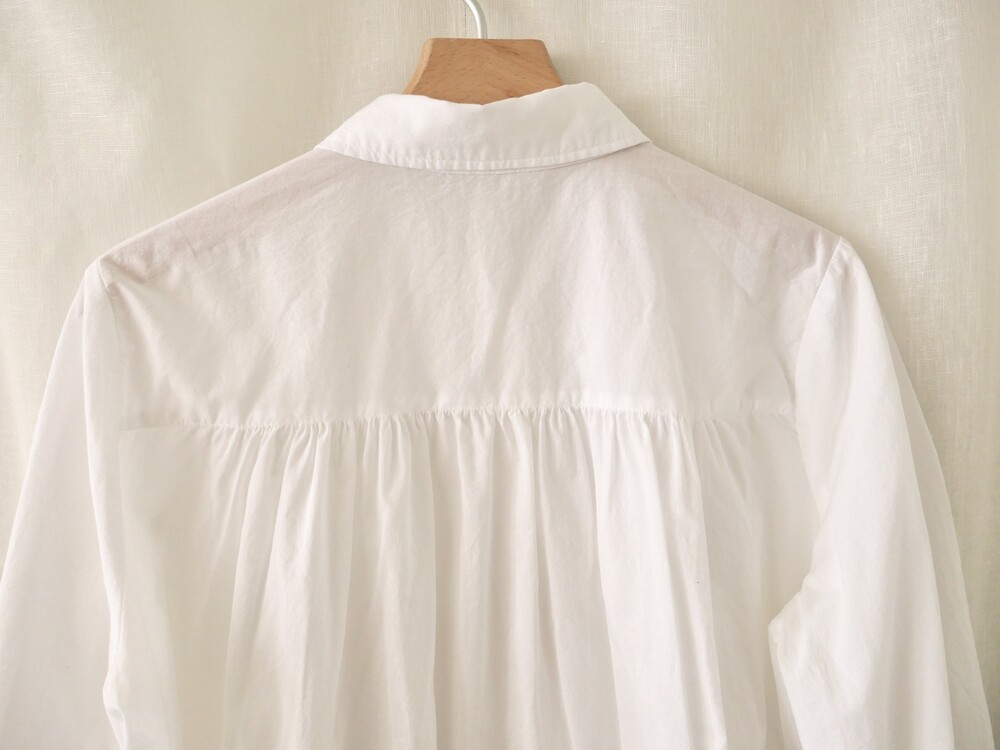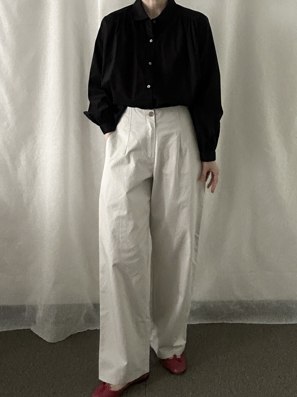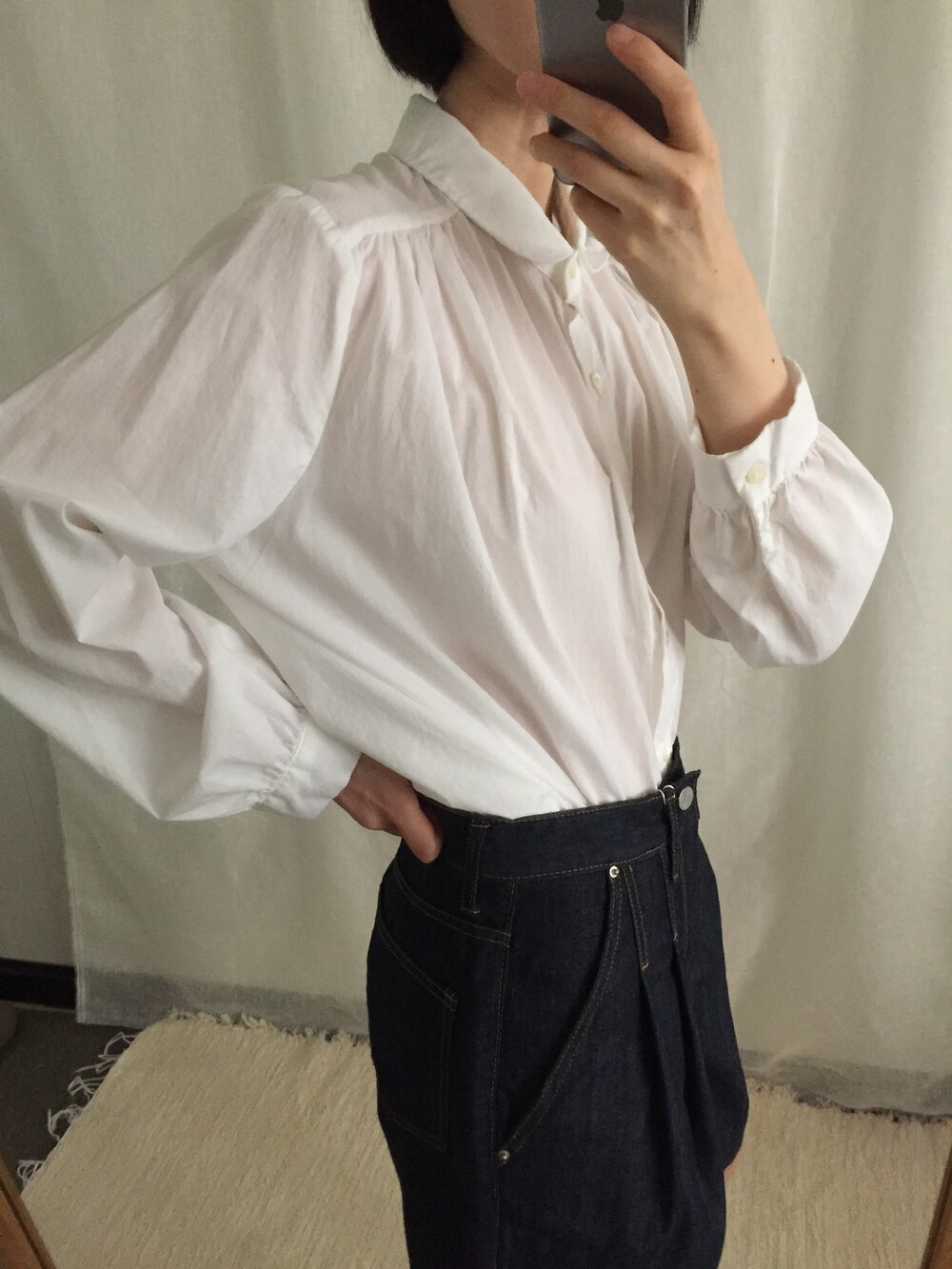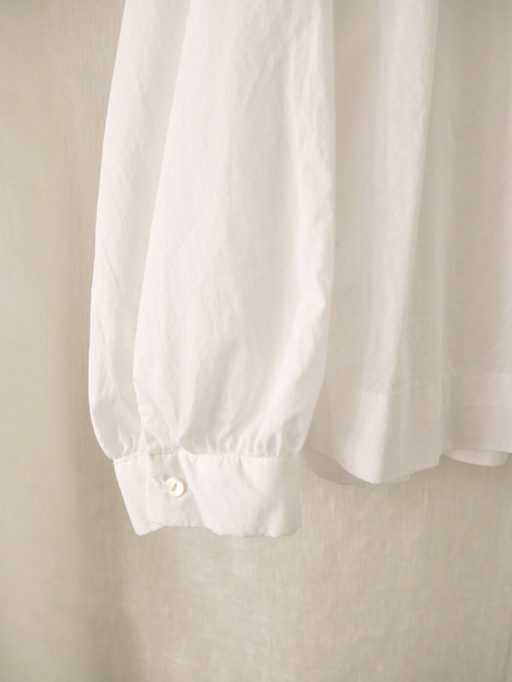밑단을 넓게 봉제하여 캐주얼한 셔츠 느낌보다 고급스러운 블라우스 느낌을 주며 자개단추, 소매단 셔링까지 디테일과 전체적인 밸런스가 좋은 제품입니다.