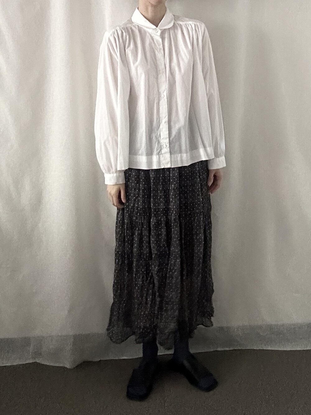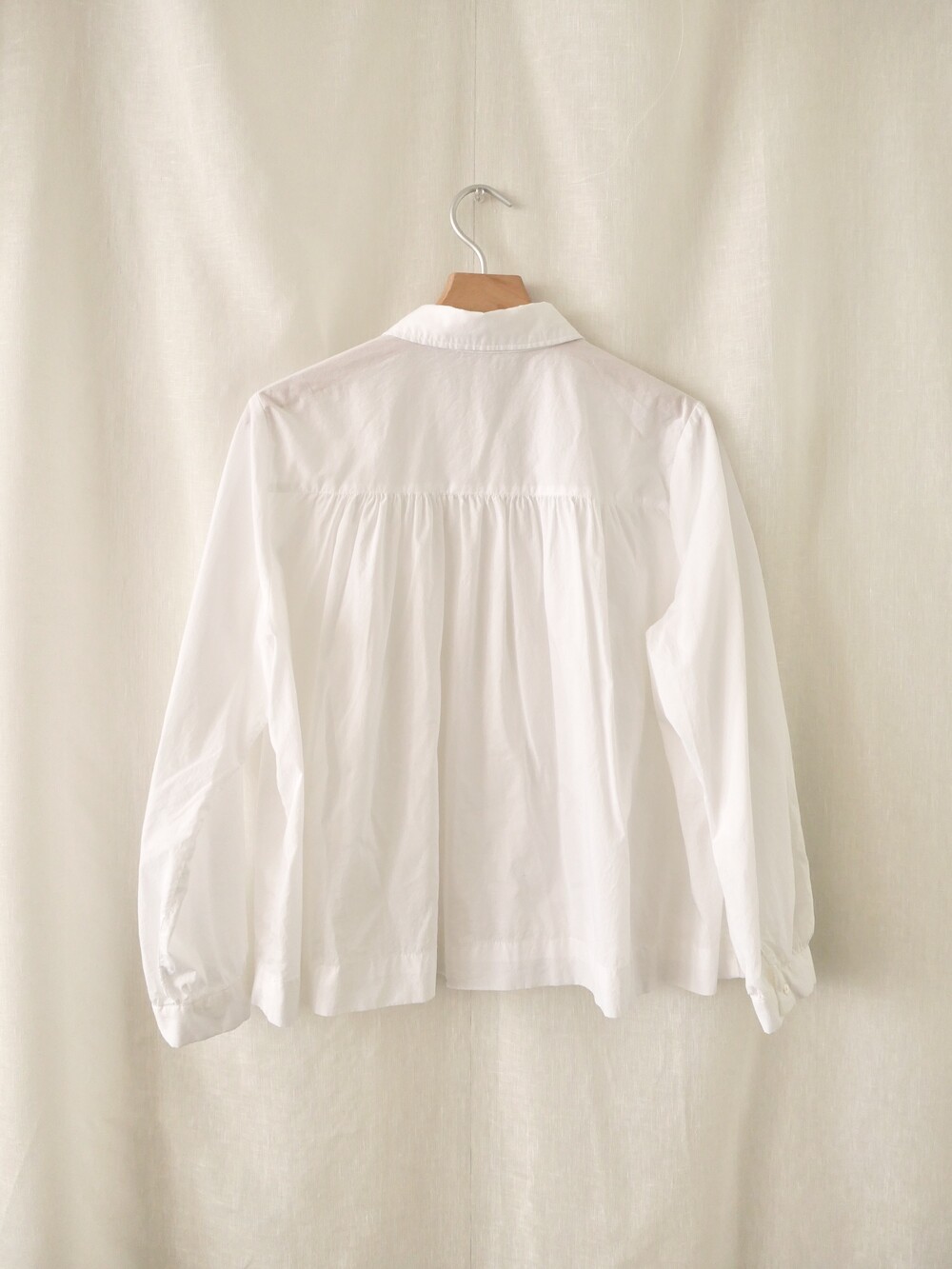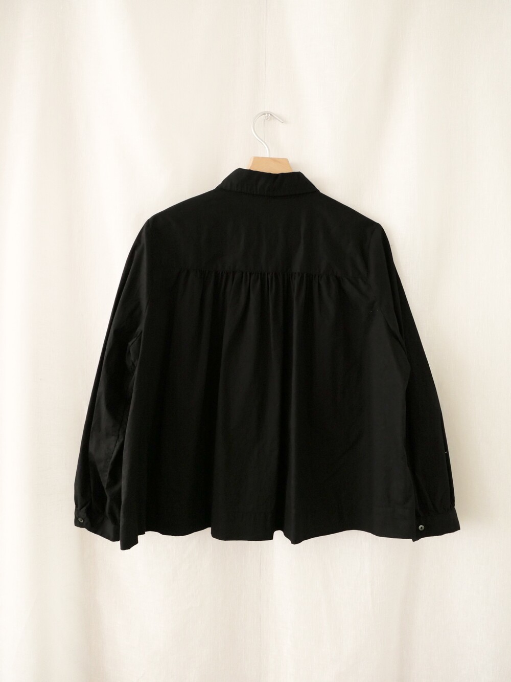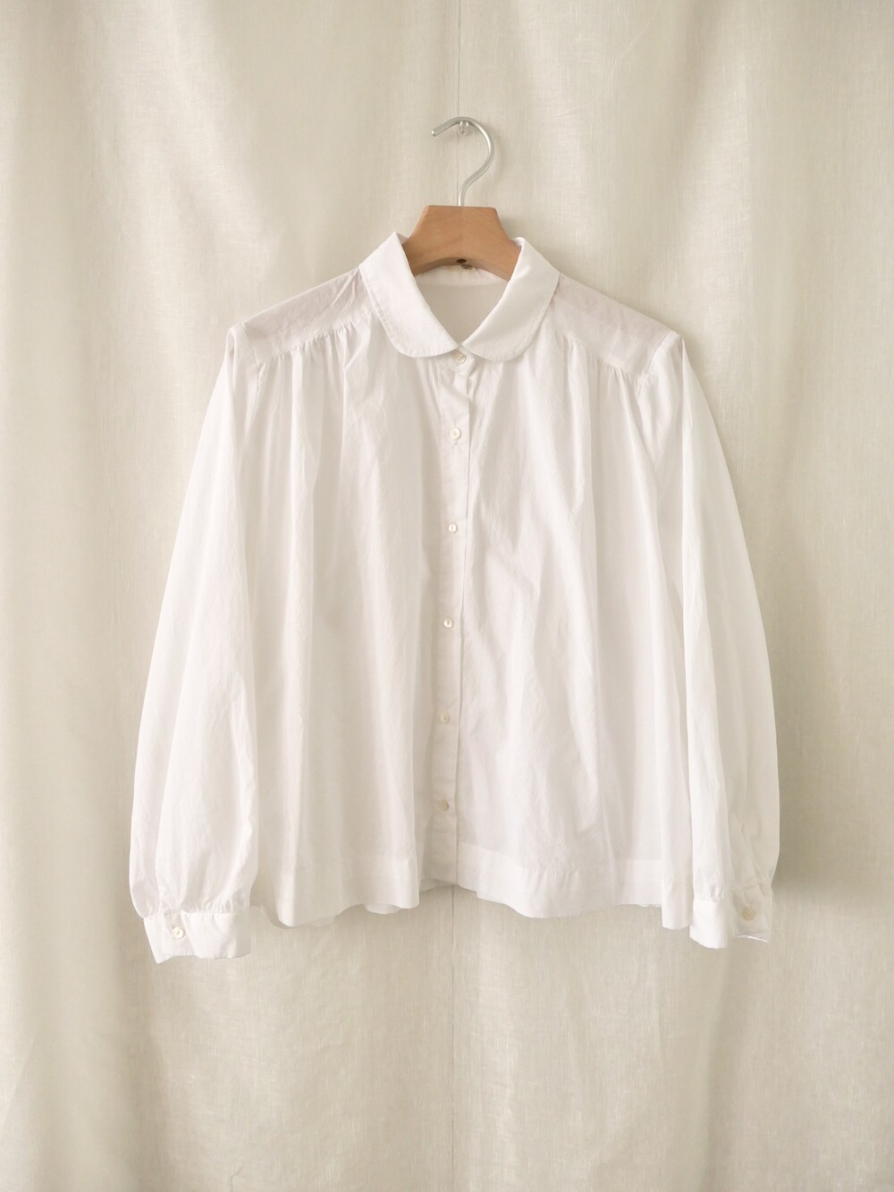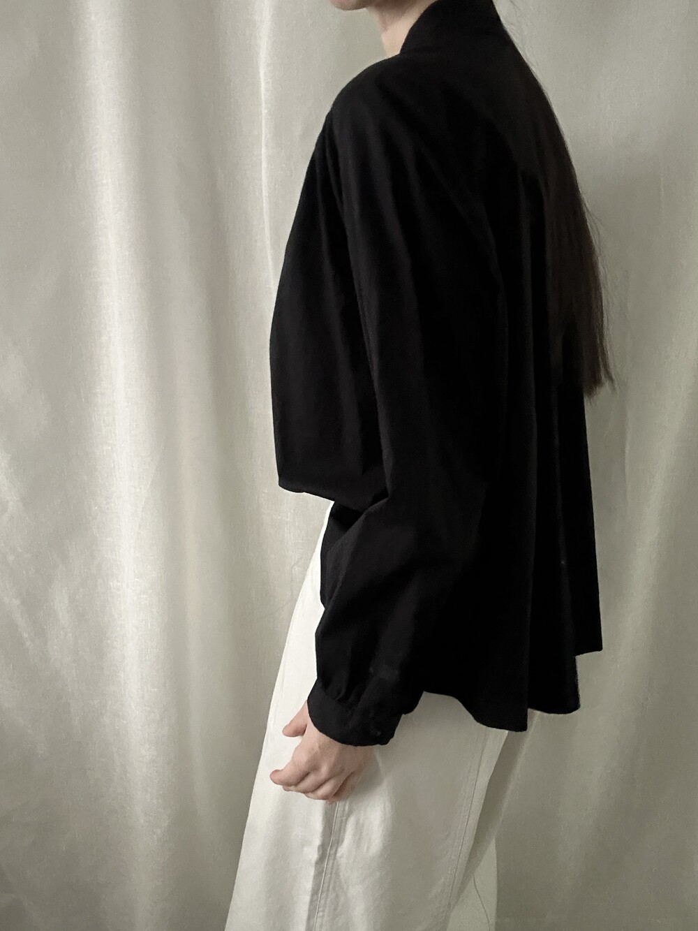 밑단을 넓게 봉제하여 캐주얼한 셔츠 느낌보다 고급스러운 블라우스 느낌을 주며 자개단추, 소매단 셔링까지 디테일과 전체적인 밸런스가 좋은 제품입니다.