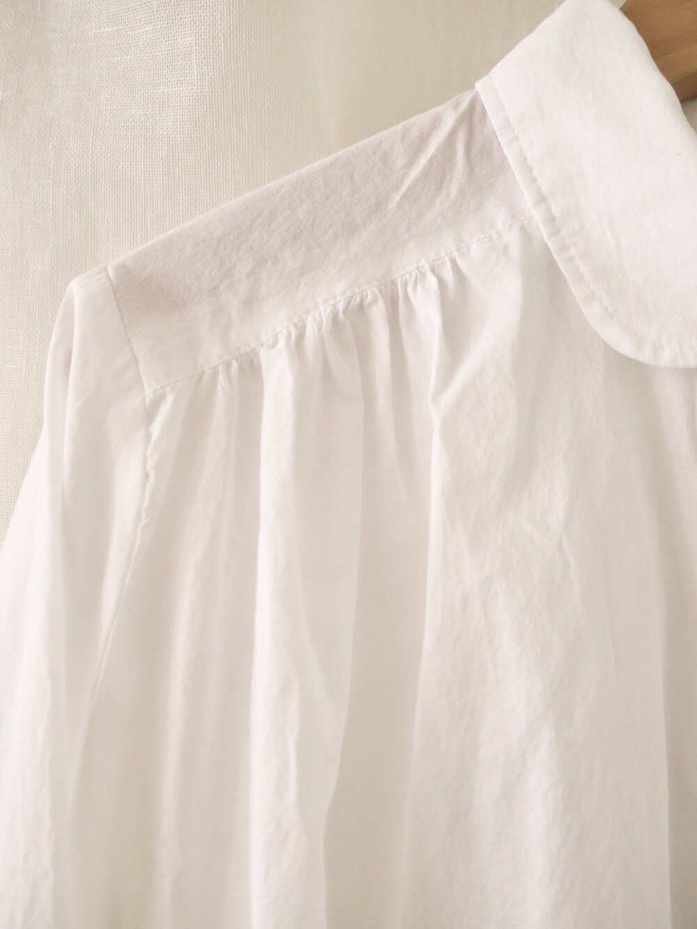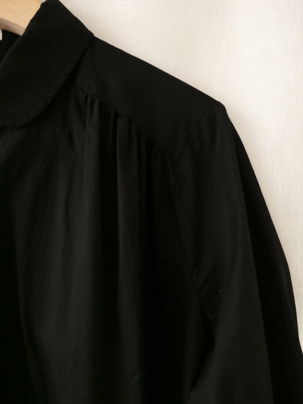 어깨 라인에 들어간 셔링 디테일이 우아하며 둥근 카라 디자인은 단정하고 클래식한 무드를 더해줍니다.