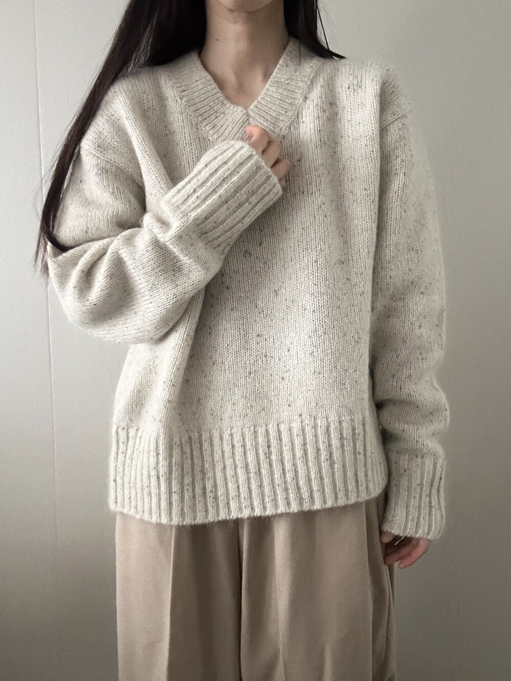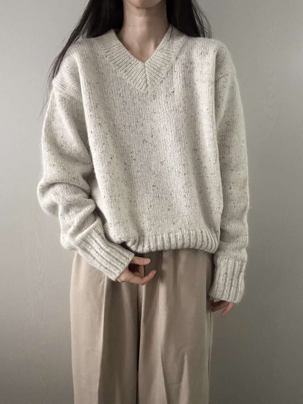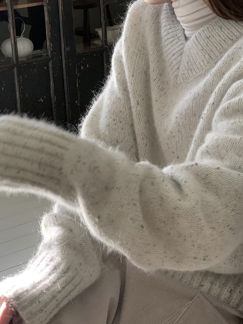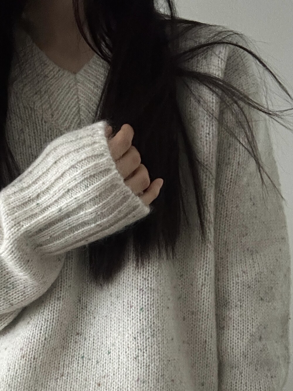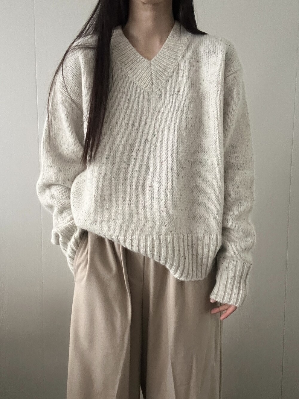 세련된 인상을 주는 브이넥 디자인과 감성적이고 사랑스러운 네프사 원사가 정말 조화로워요.
