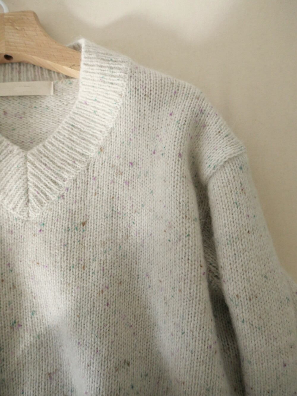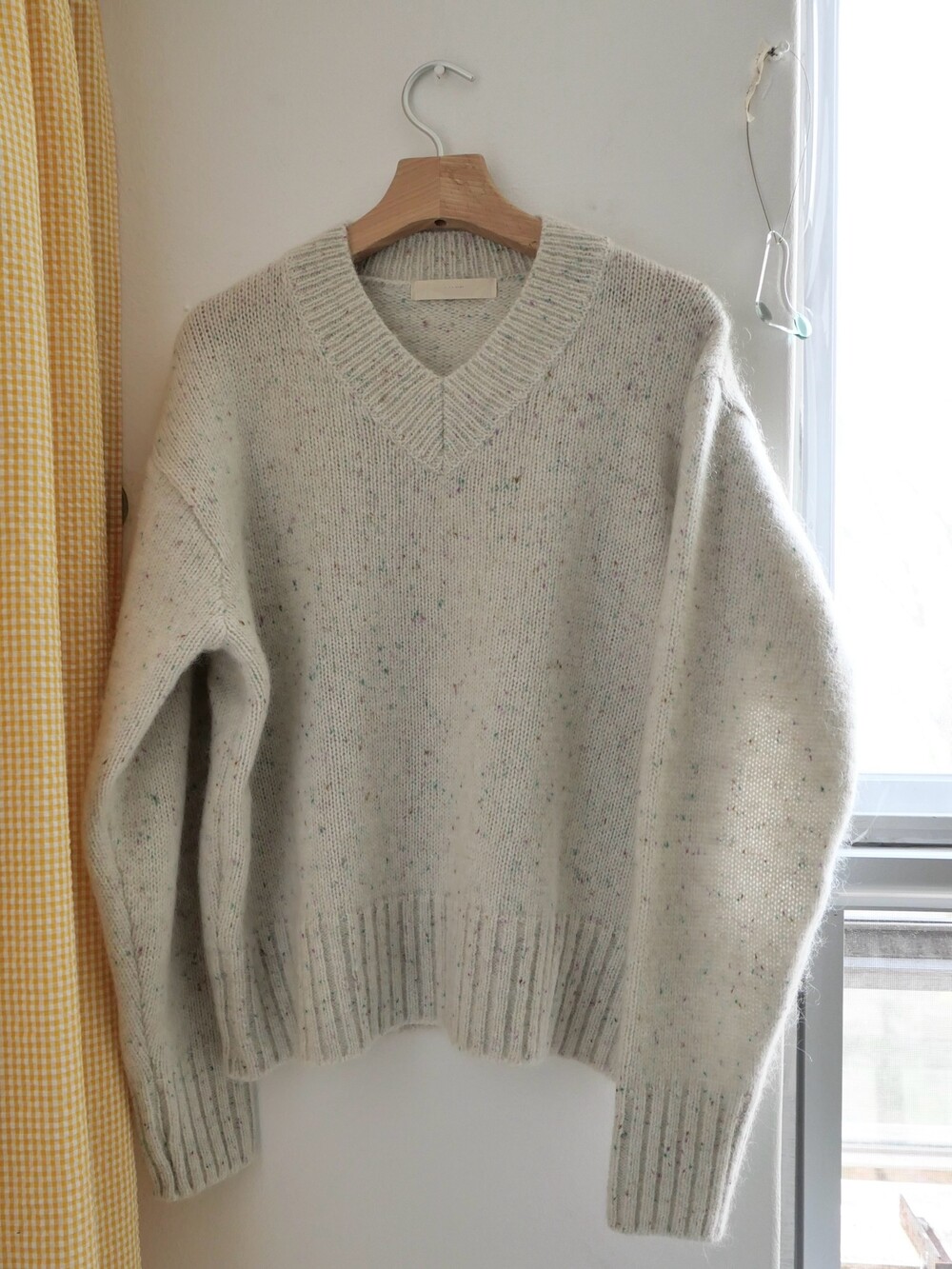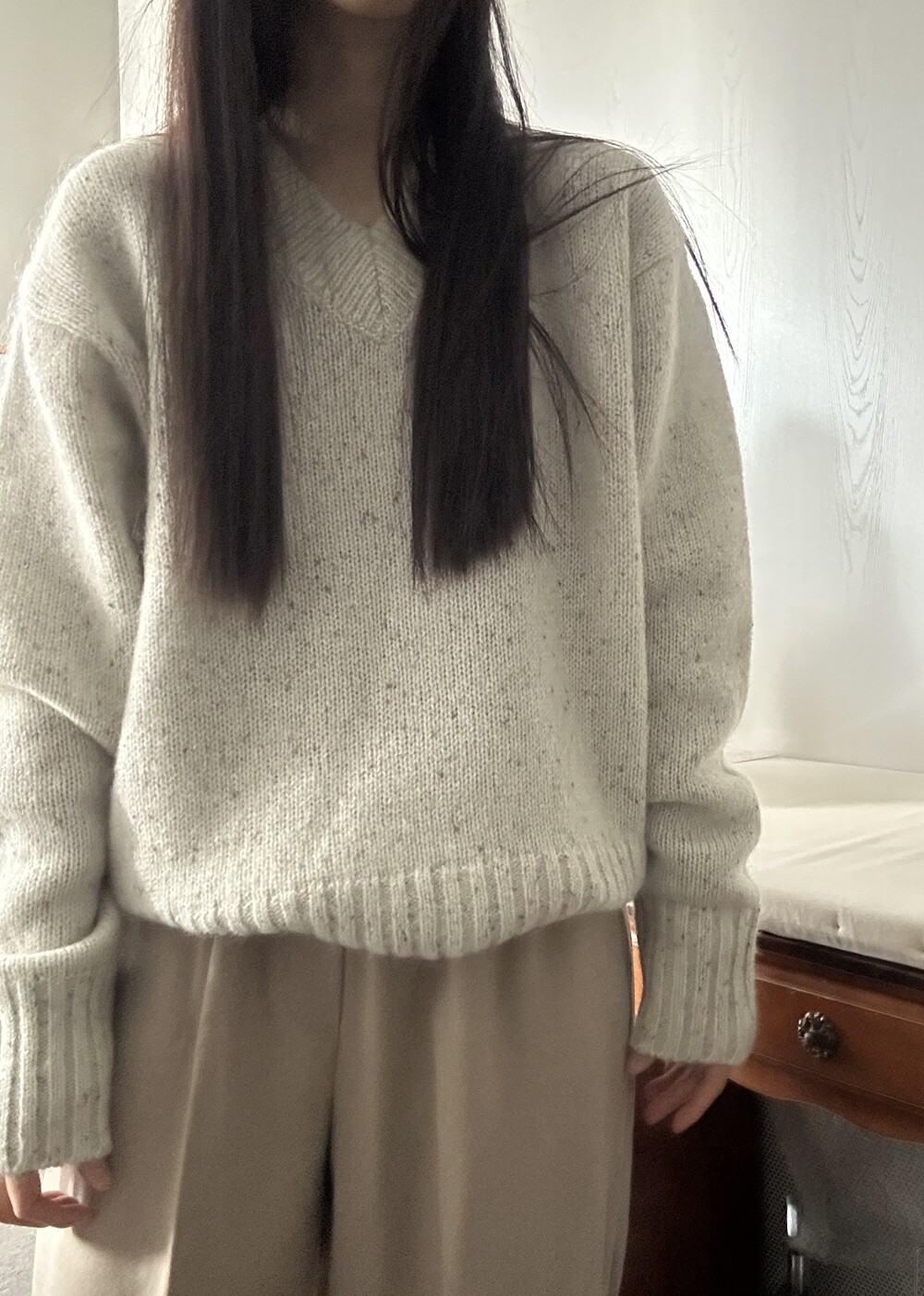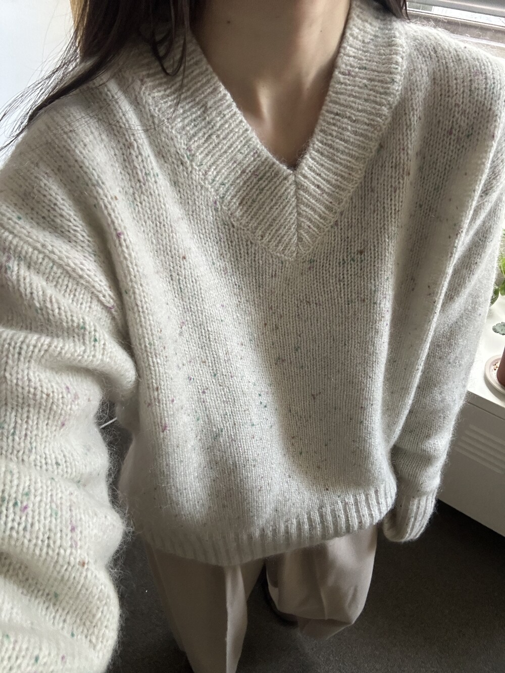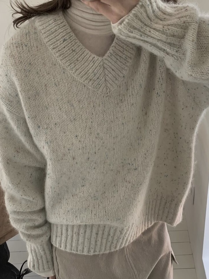 세련된 인상을 주는 브이넥 디자인과 감성적이고 사랑스러운 네프사 원사가 정말 조화로워요.