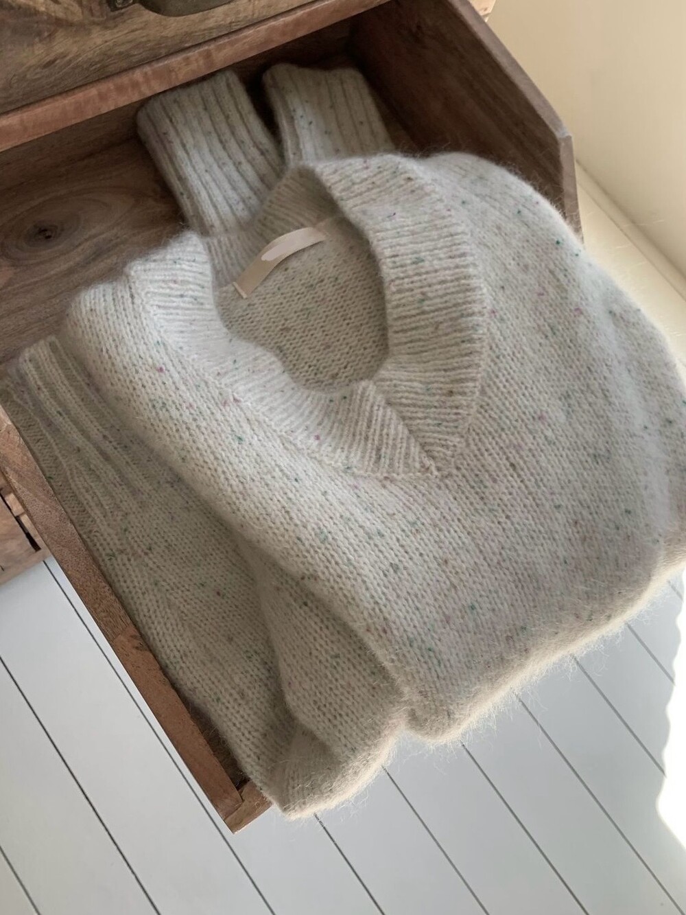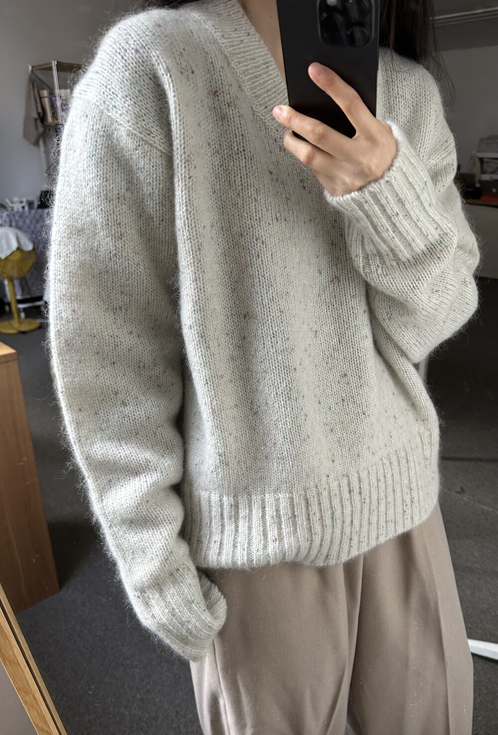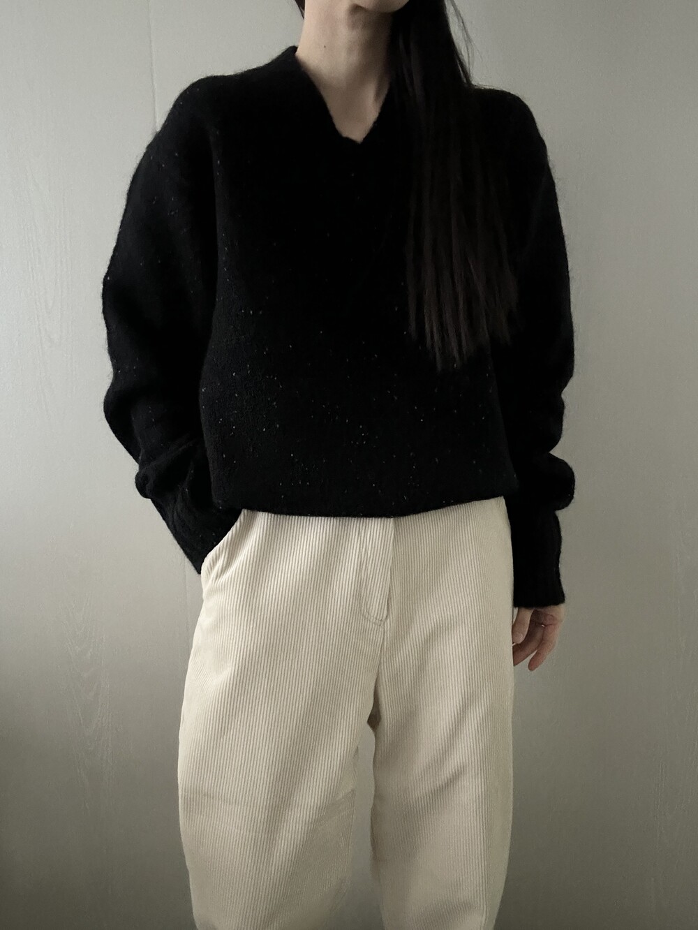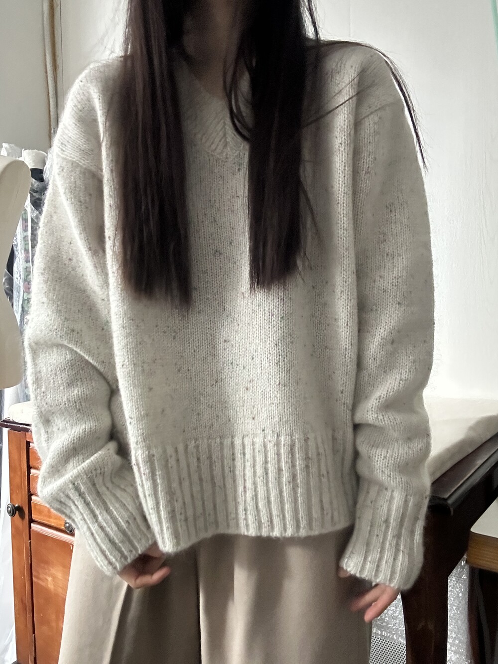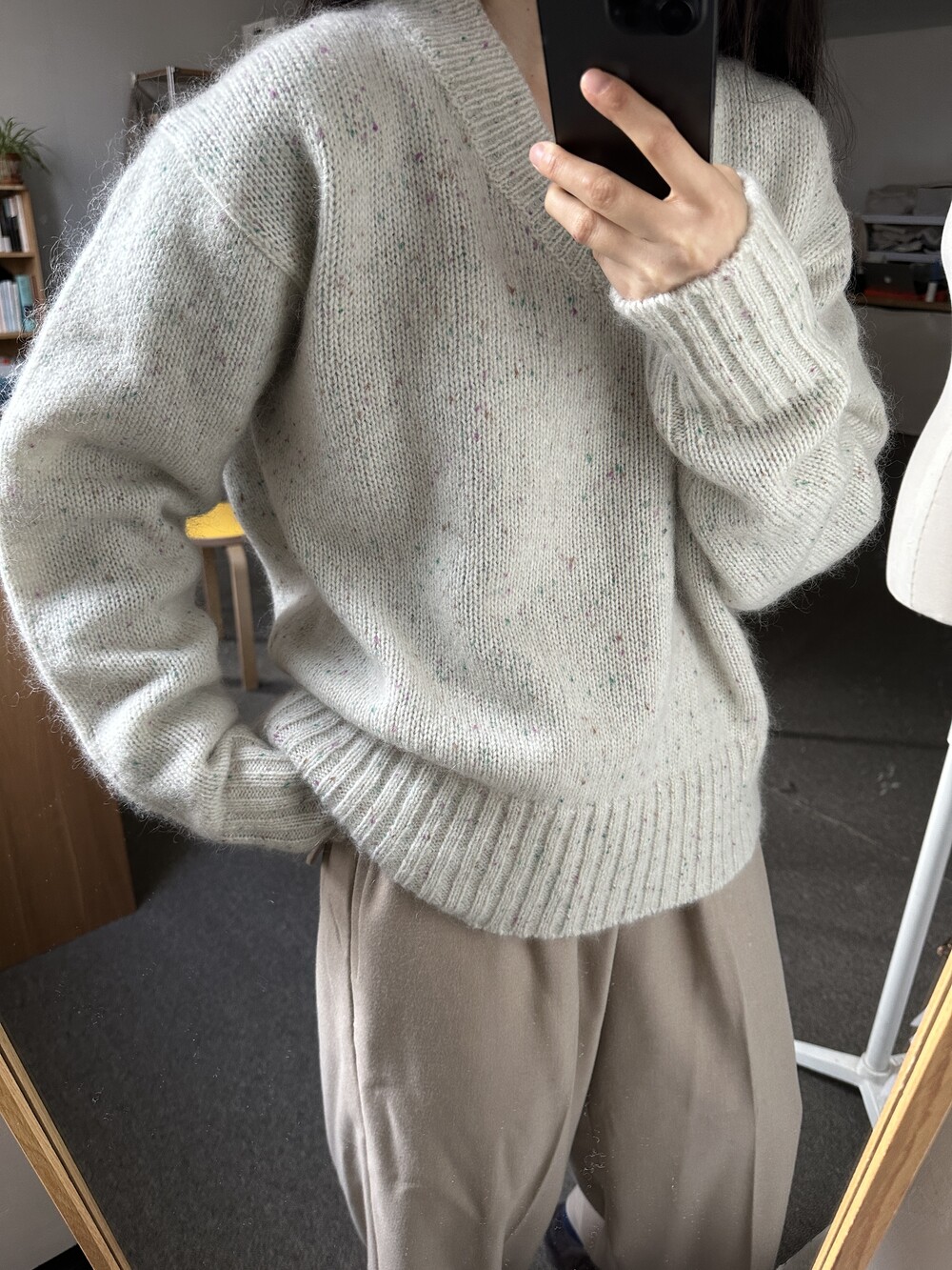 세련된 인상을 주는 브이넥 디자인과 감성적이고 사랑스러운 네프사 원사가 정말 조화로워요.