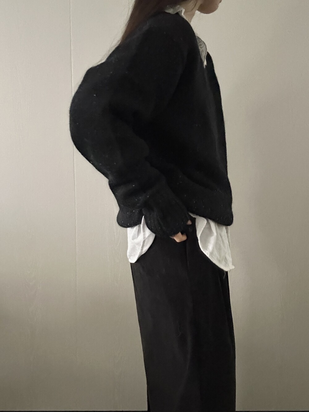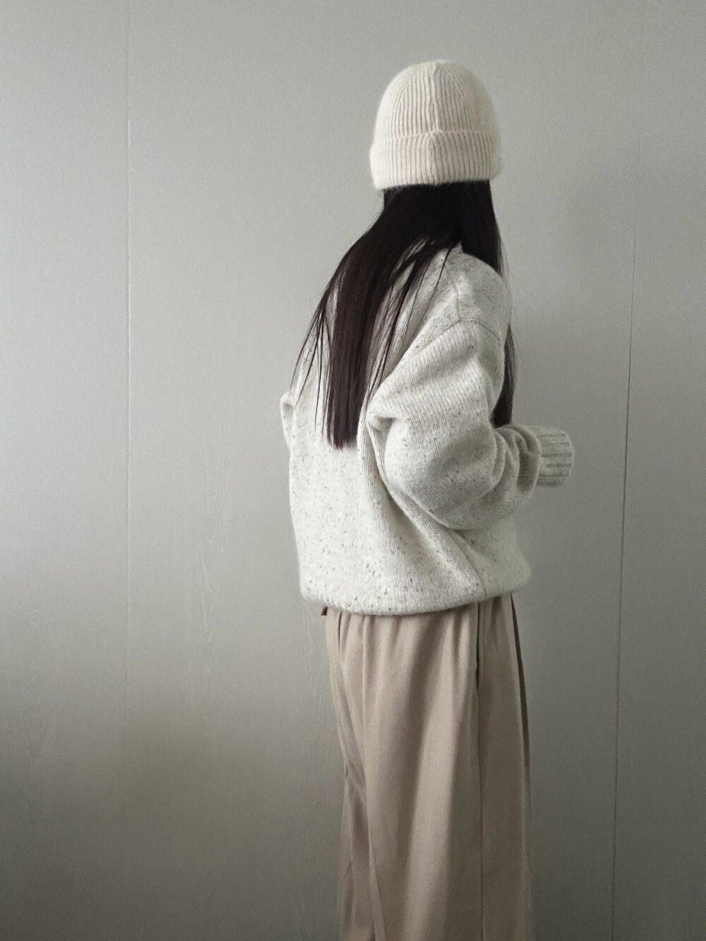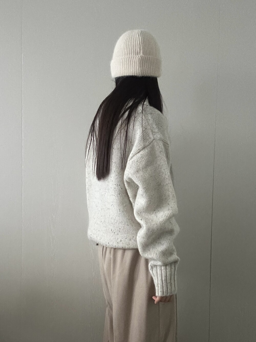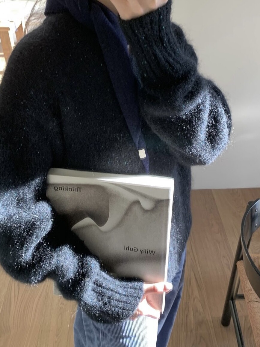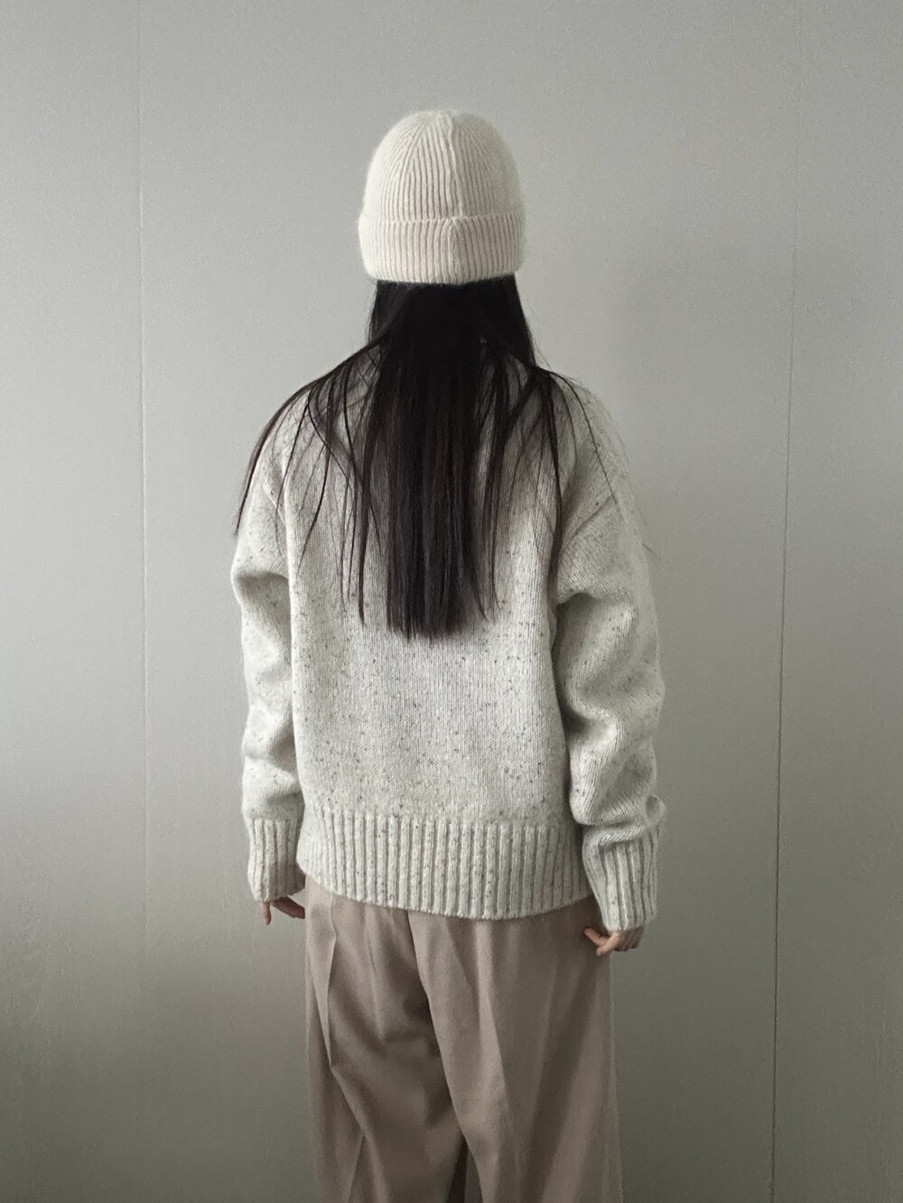 헤어감이 느껴지는 키드모헤어도 가벼우면서 보온성이 뛰어나며 도톰한 두께감으로 한겨울까지 착용하기 좋습니다.