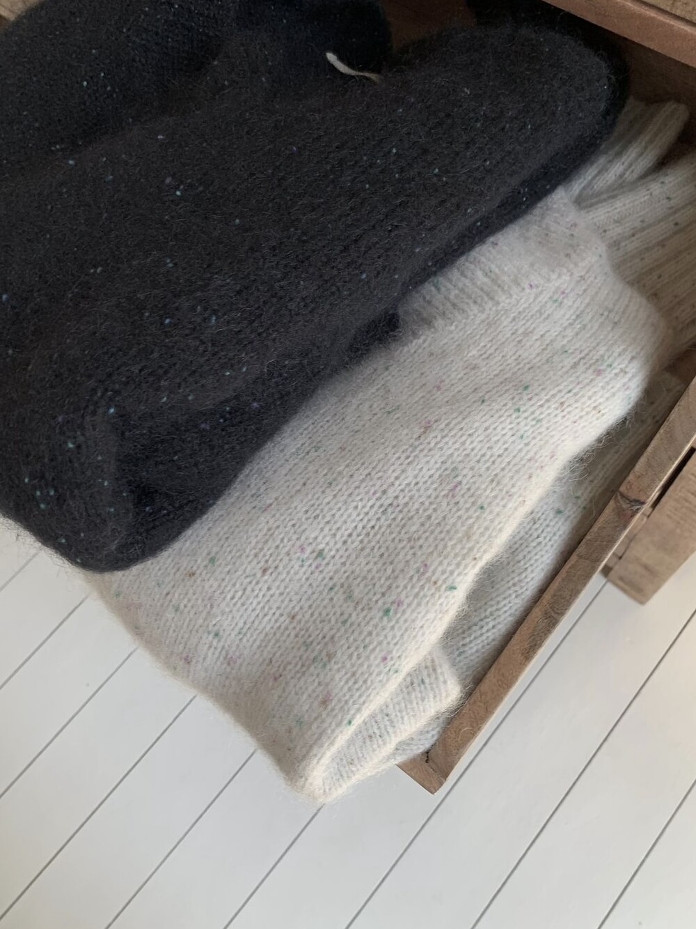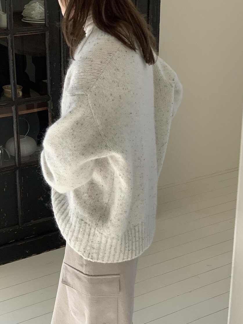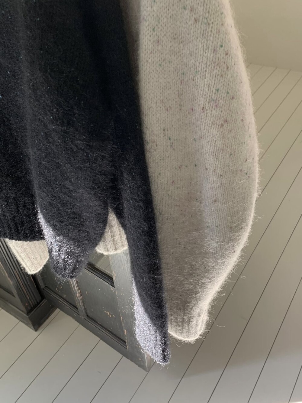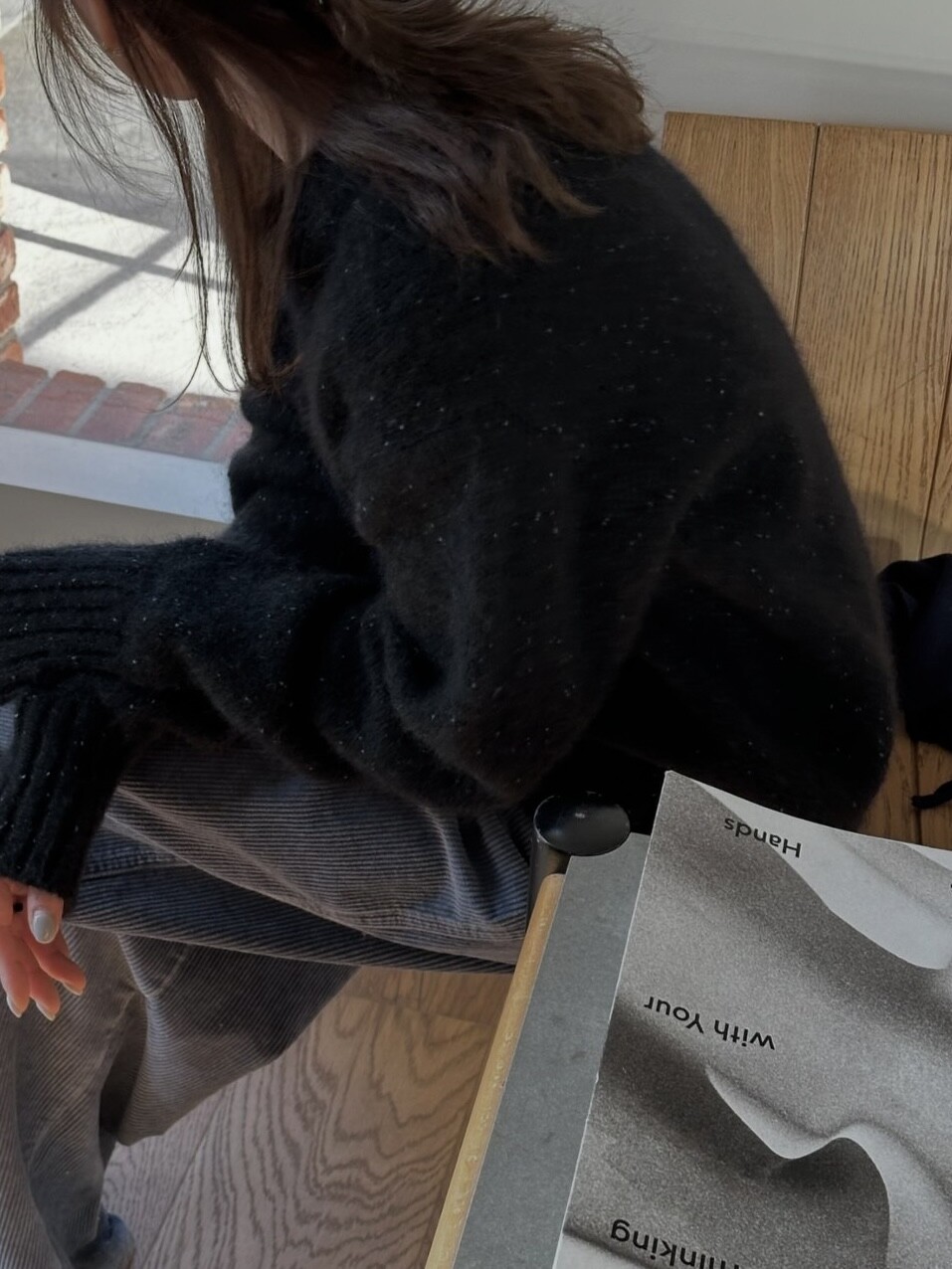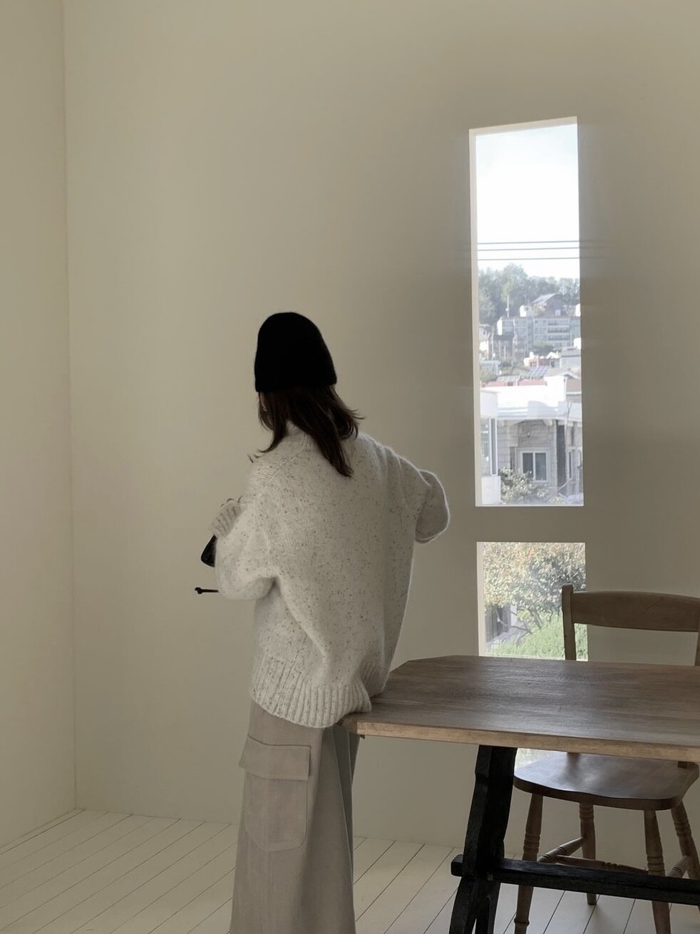 헤어감이 느껴지는 키드모헤어도 가벼우면서 보온성이 뛰어나며 도톰한 두께감으로 한겨울까지 착용하기 좋습니다.