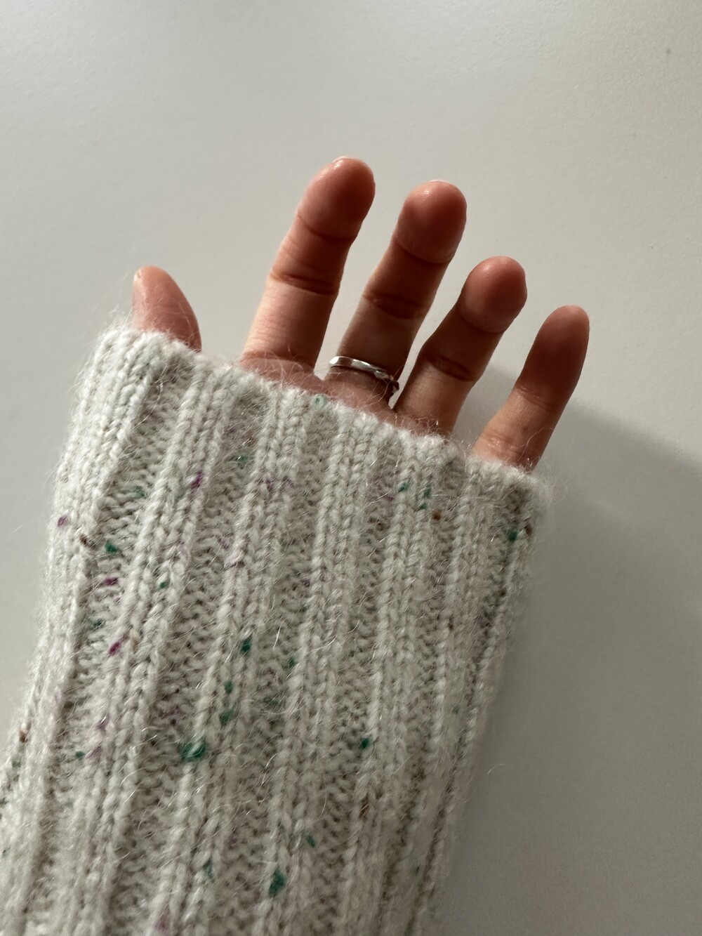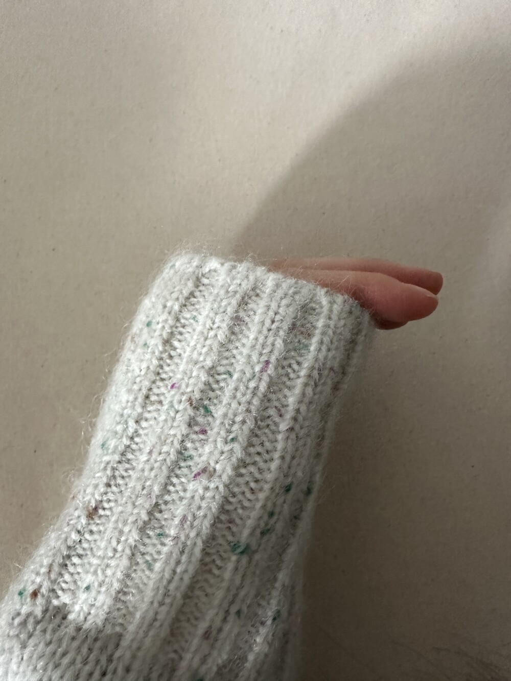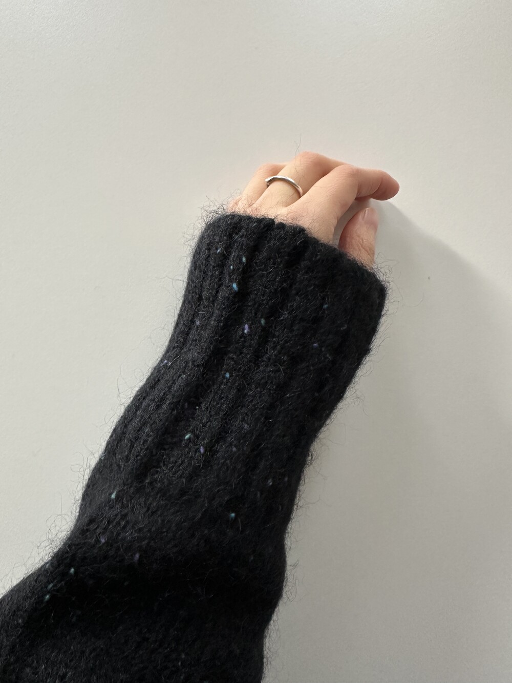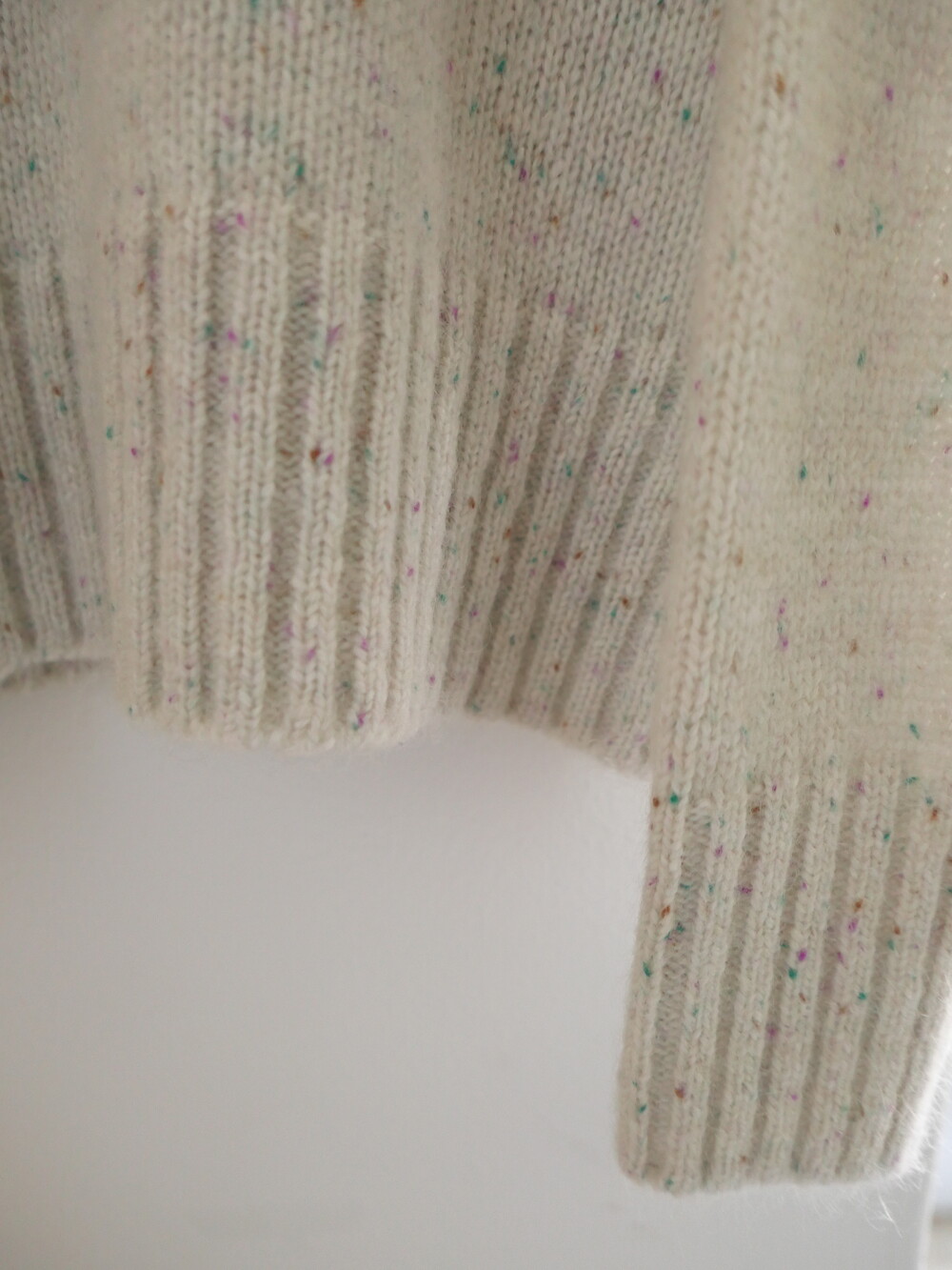 소매와 넥라인에 짜임 조직을 넣어 포인트를 주고 포근해 보입니다.