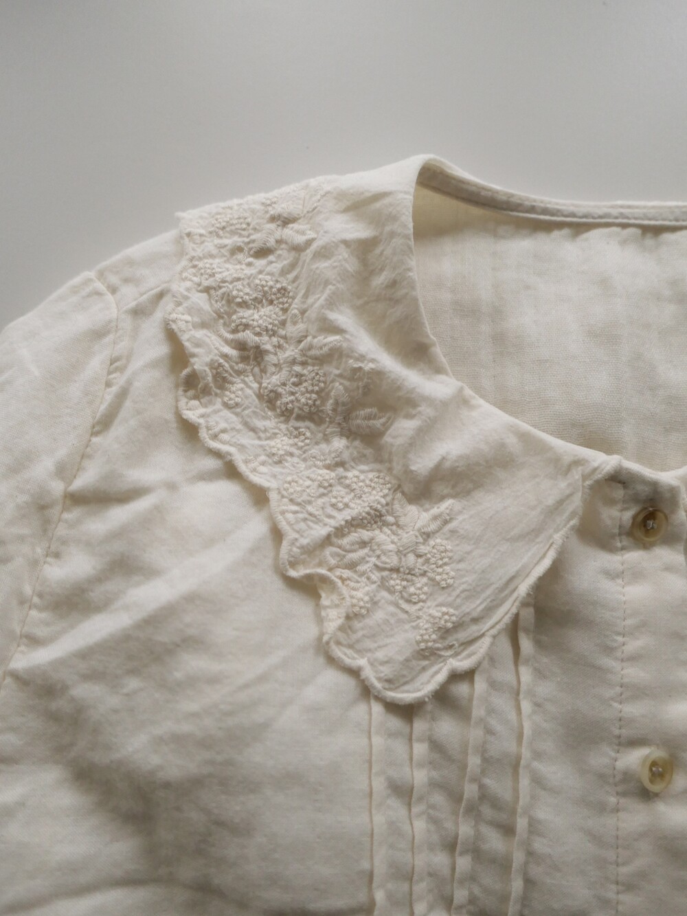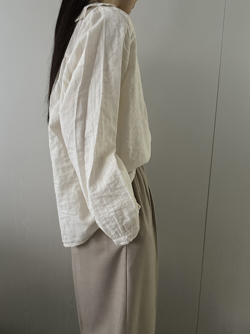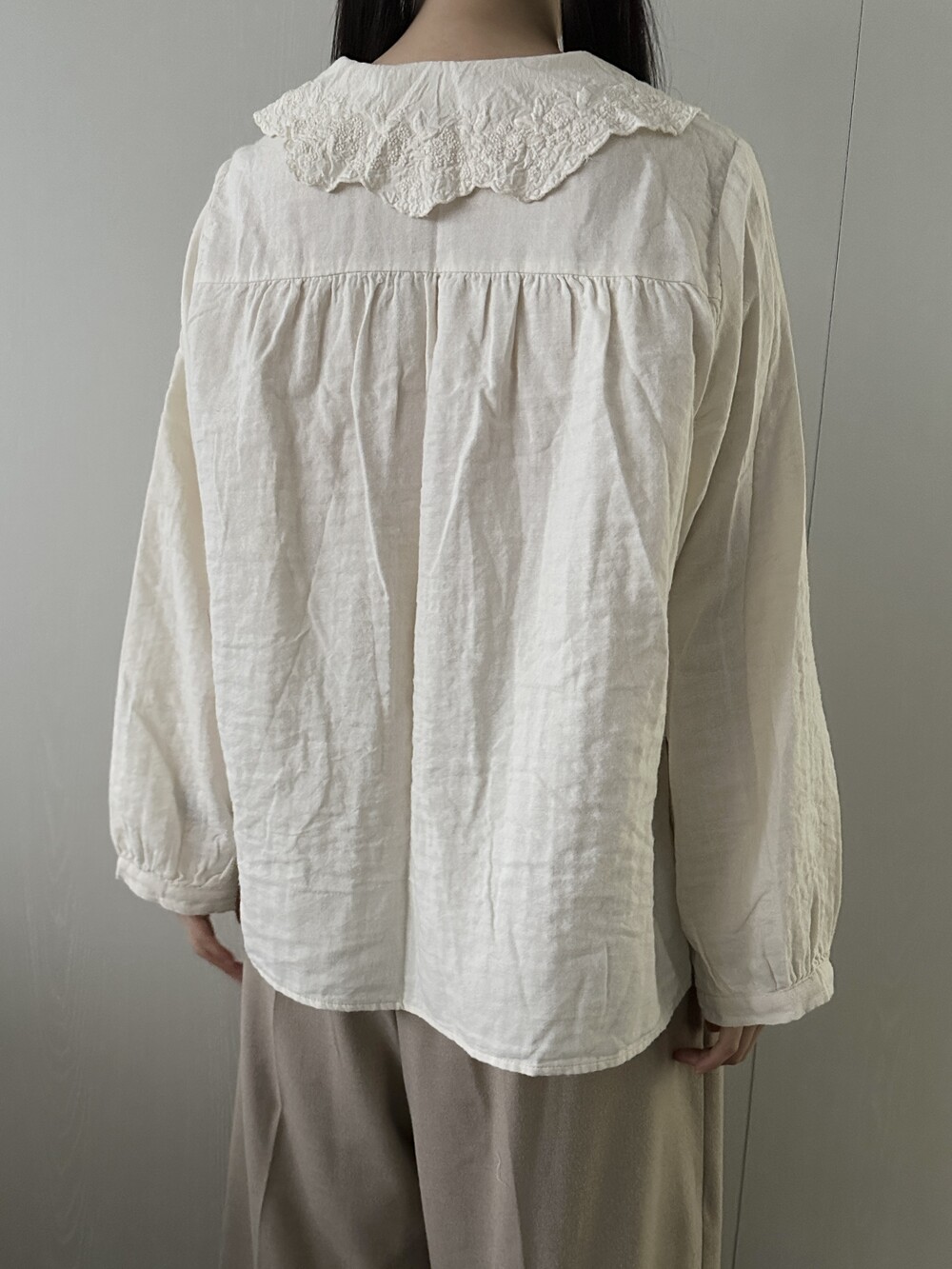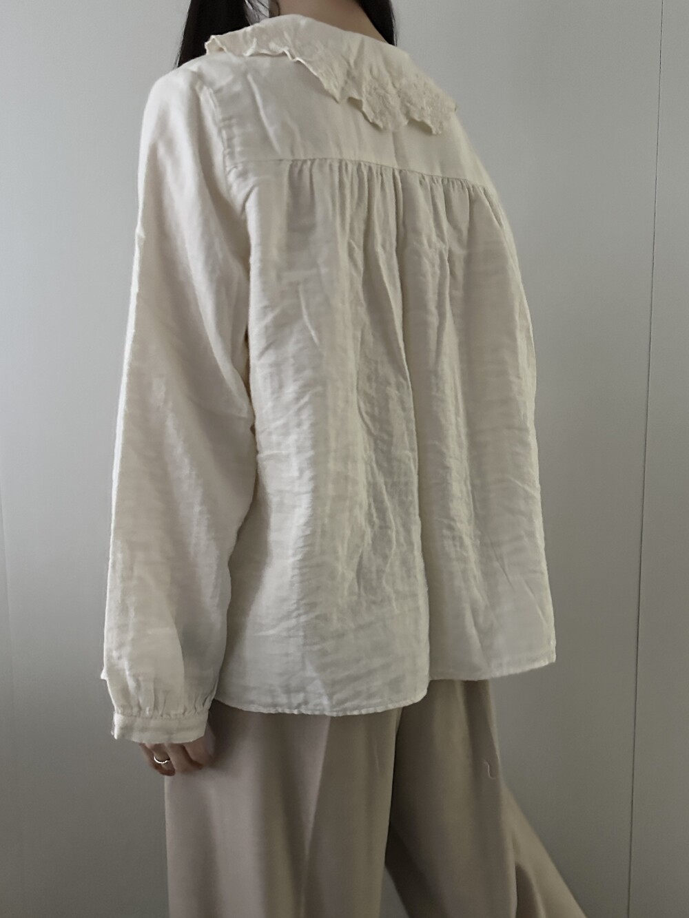 빈티지한 레이스 카라 디테일와 내추럴한 거즈 소재가 만나 더욱 매력적입니다.