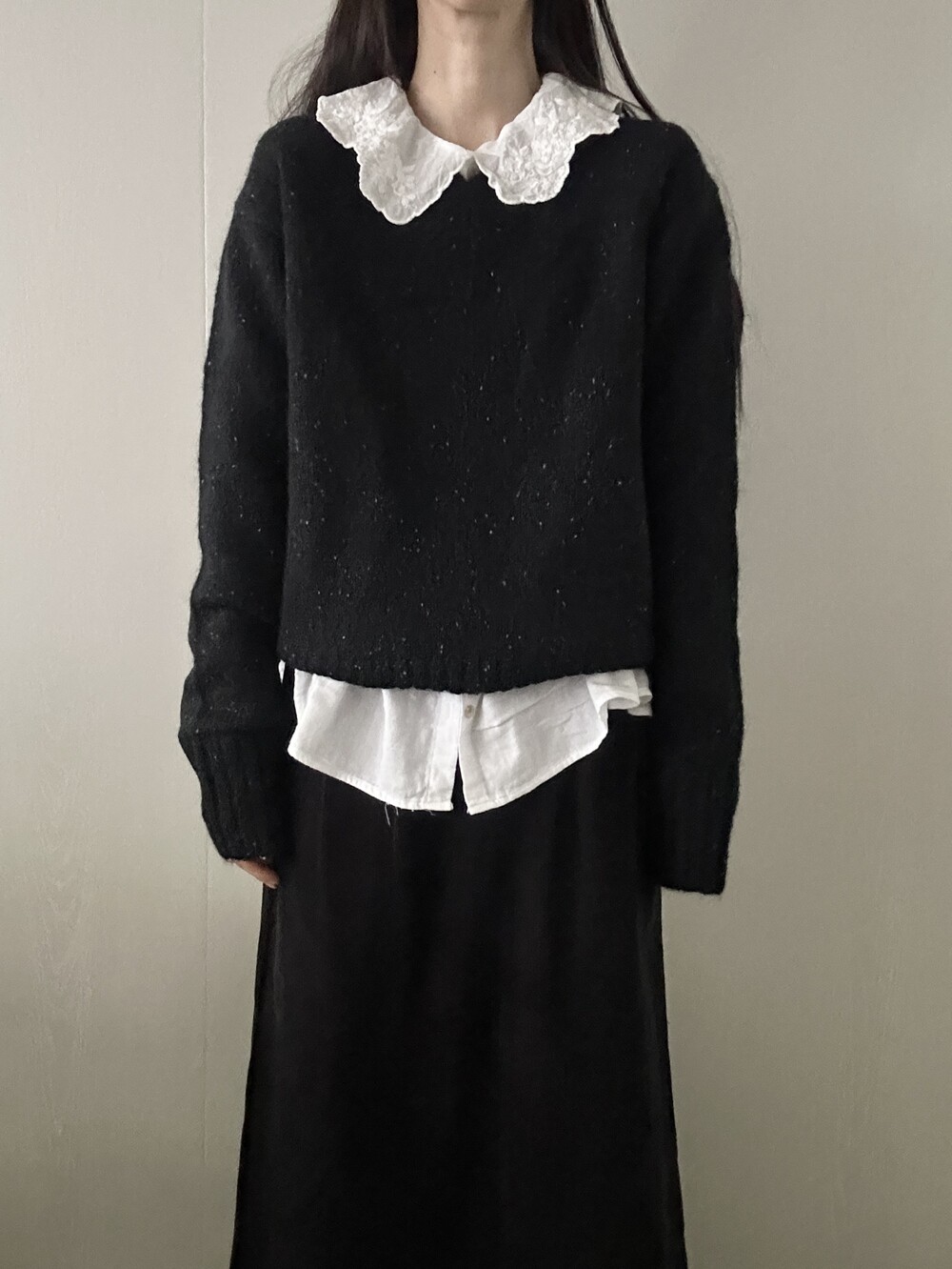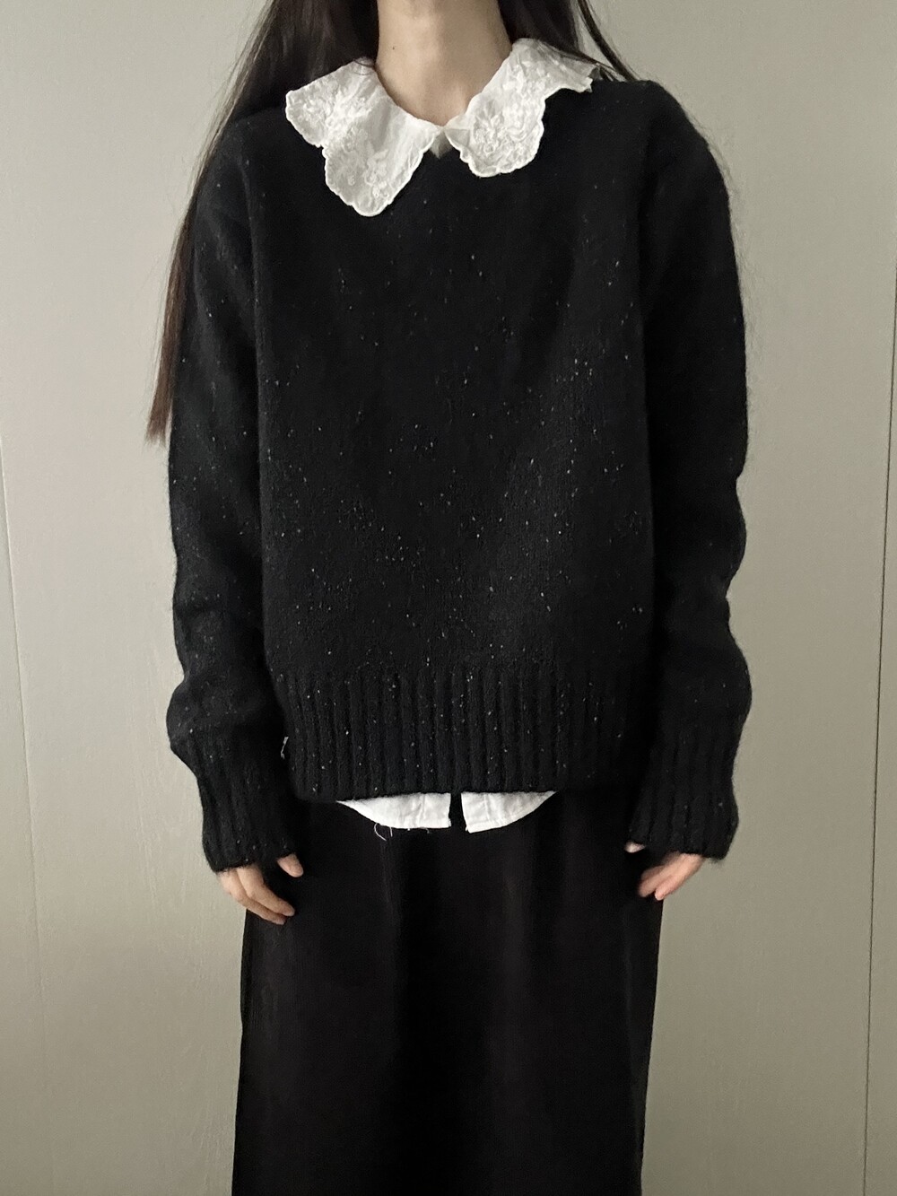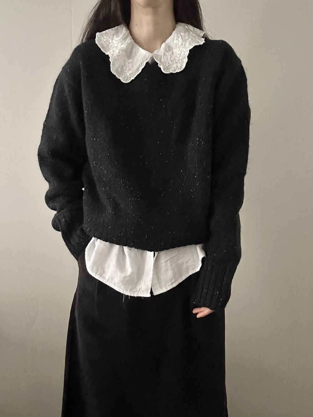 카라를 내어 입으면 빈티지하면서도 클래식한 연출이 가능합니다.