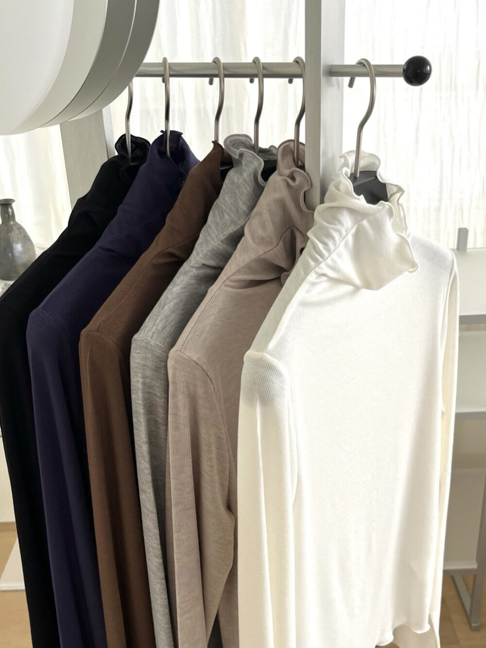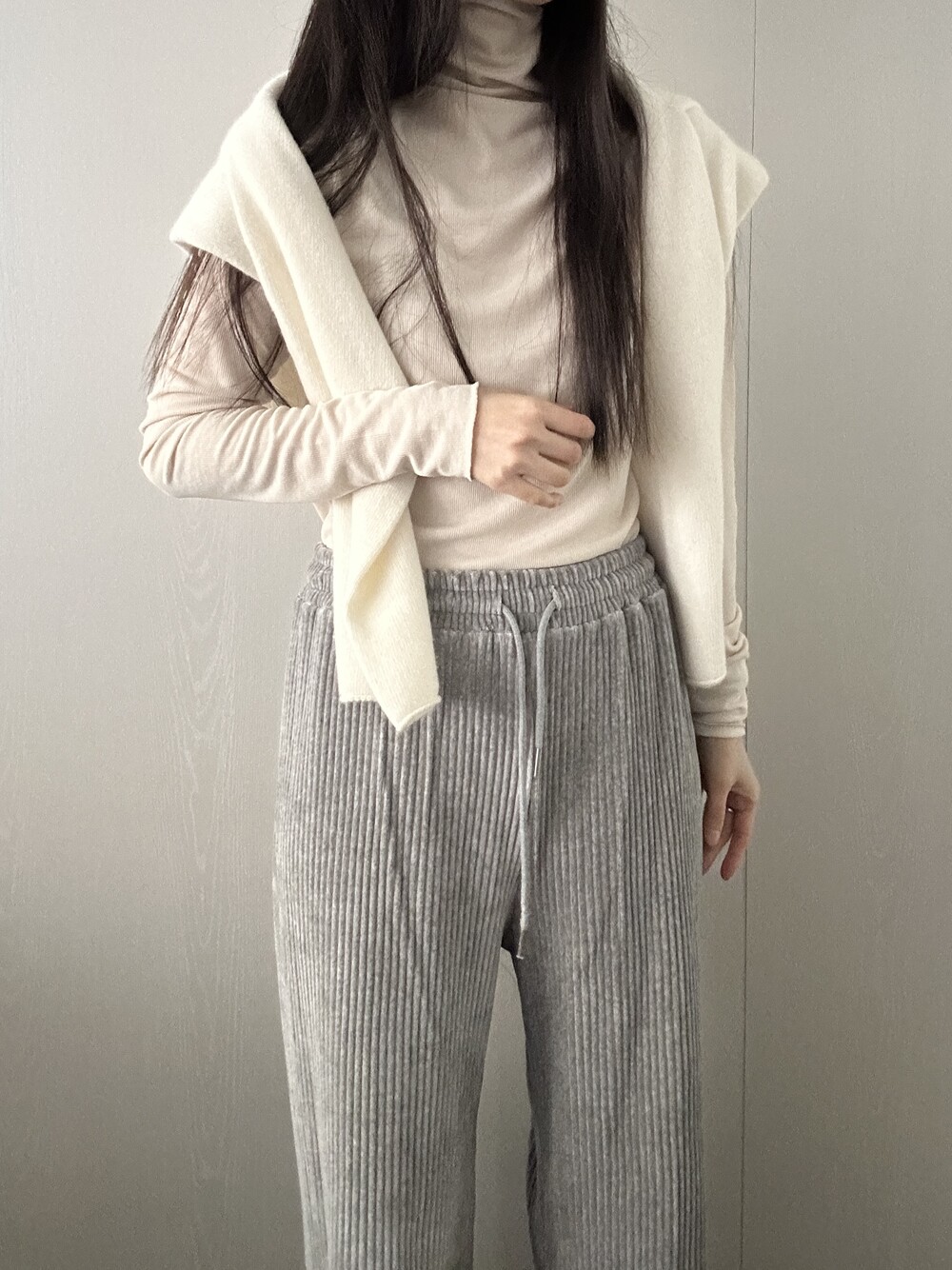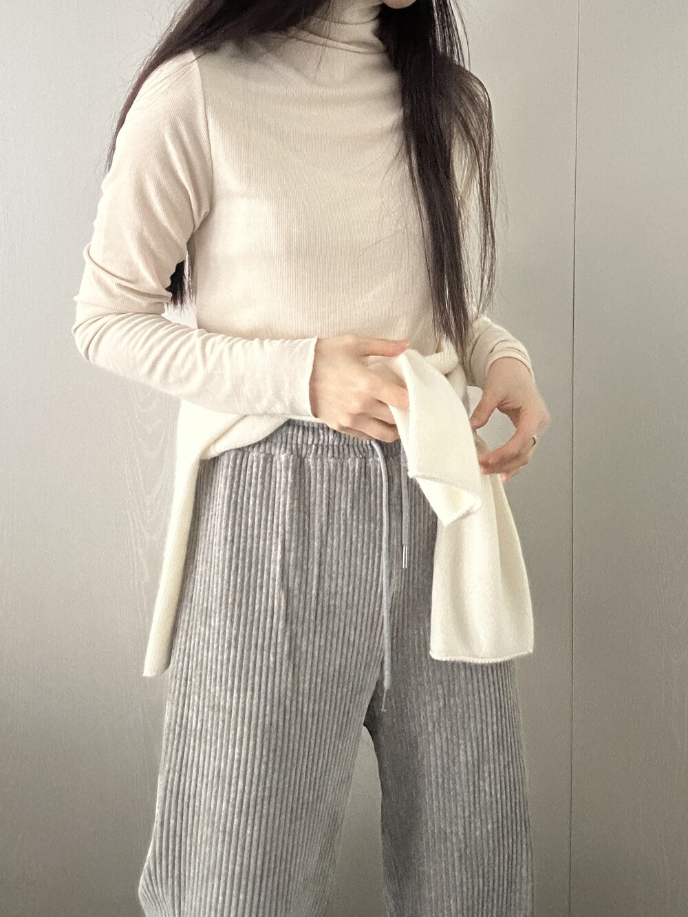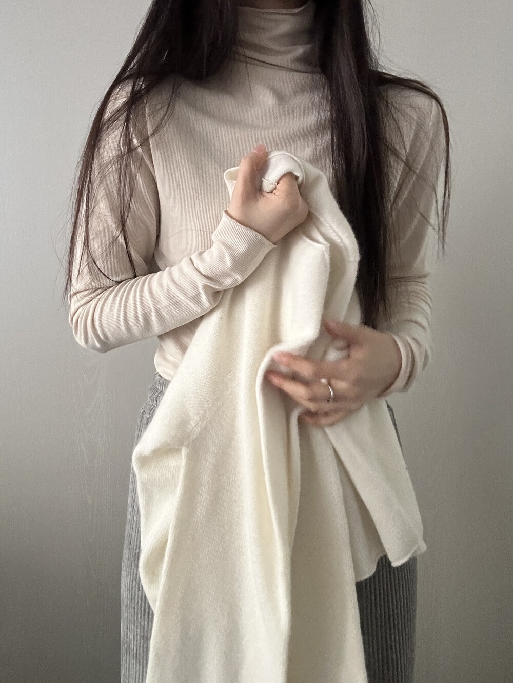 따가운 느낌이 있는 울 소재의 니트웨어 같은 경우 이너로 입어주면 자극 없이 입기 좋으며